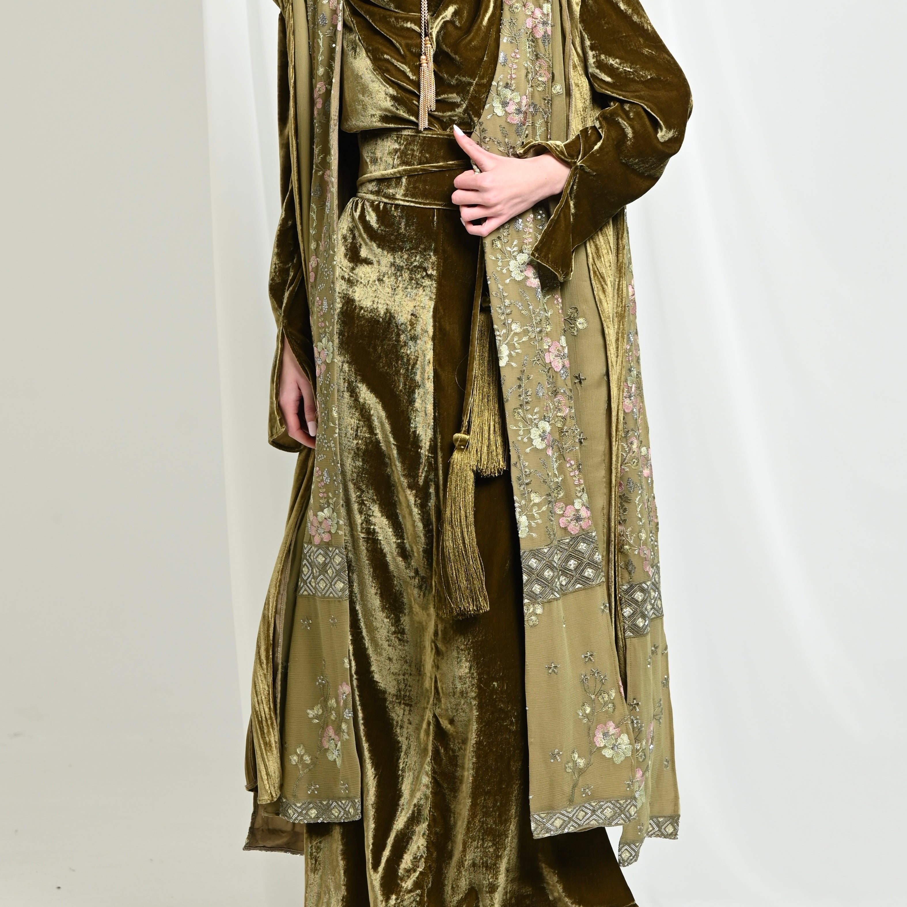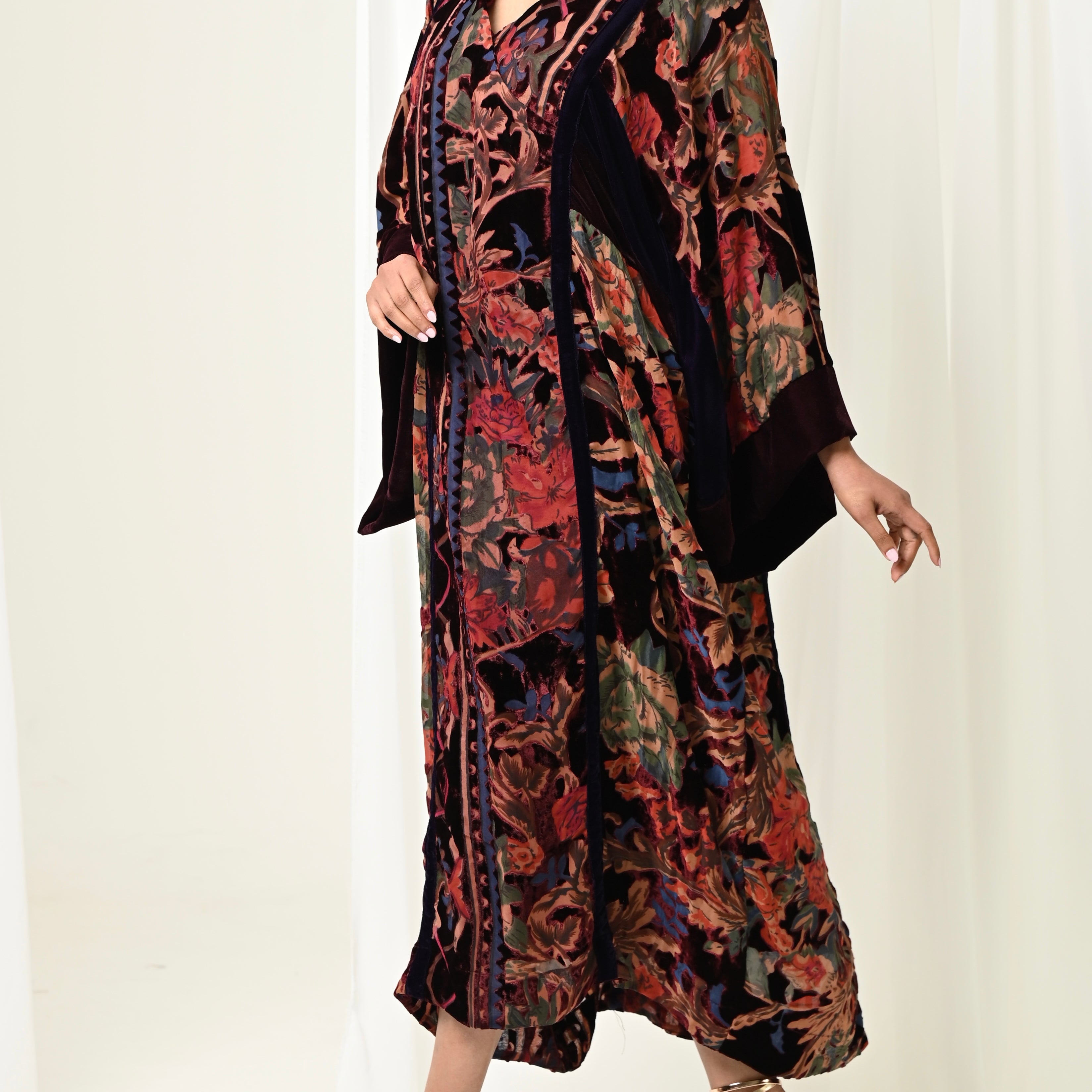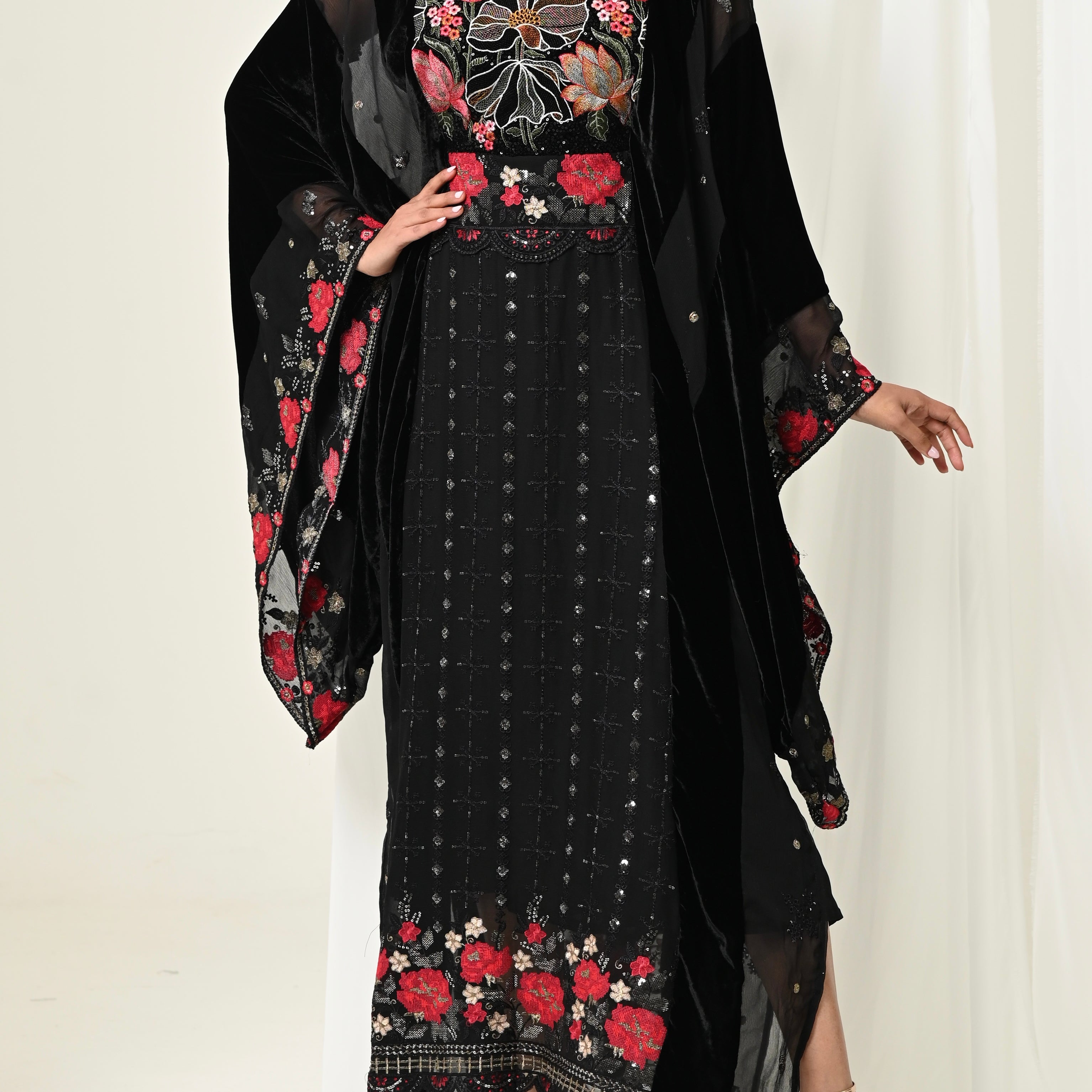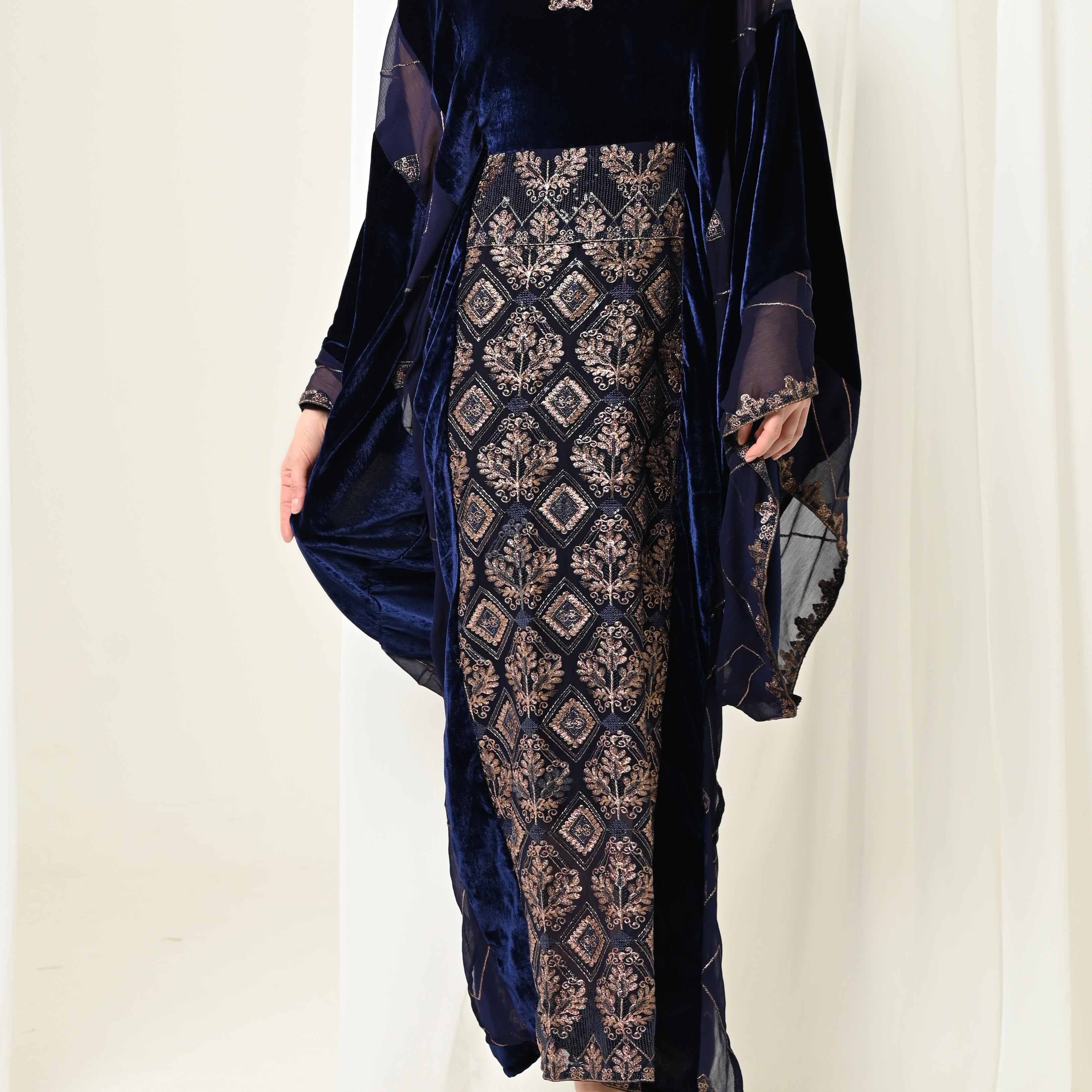 Velvet long Shawl & Dress set