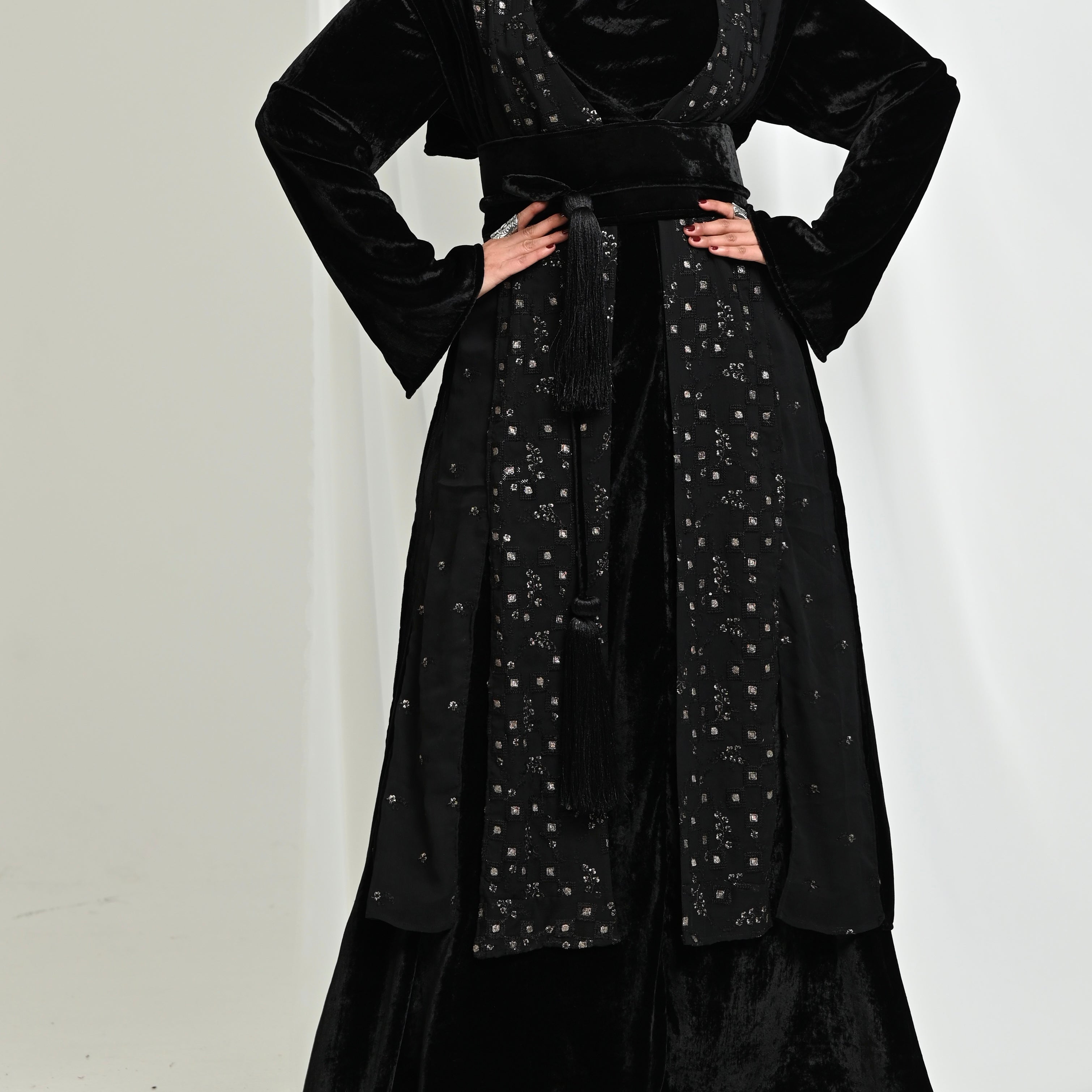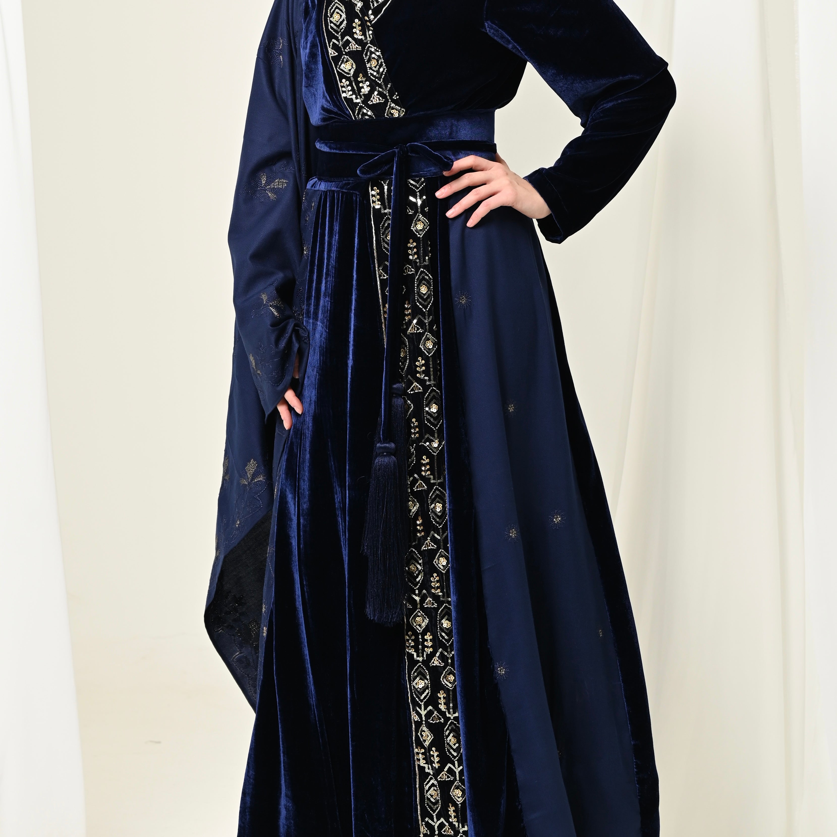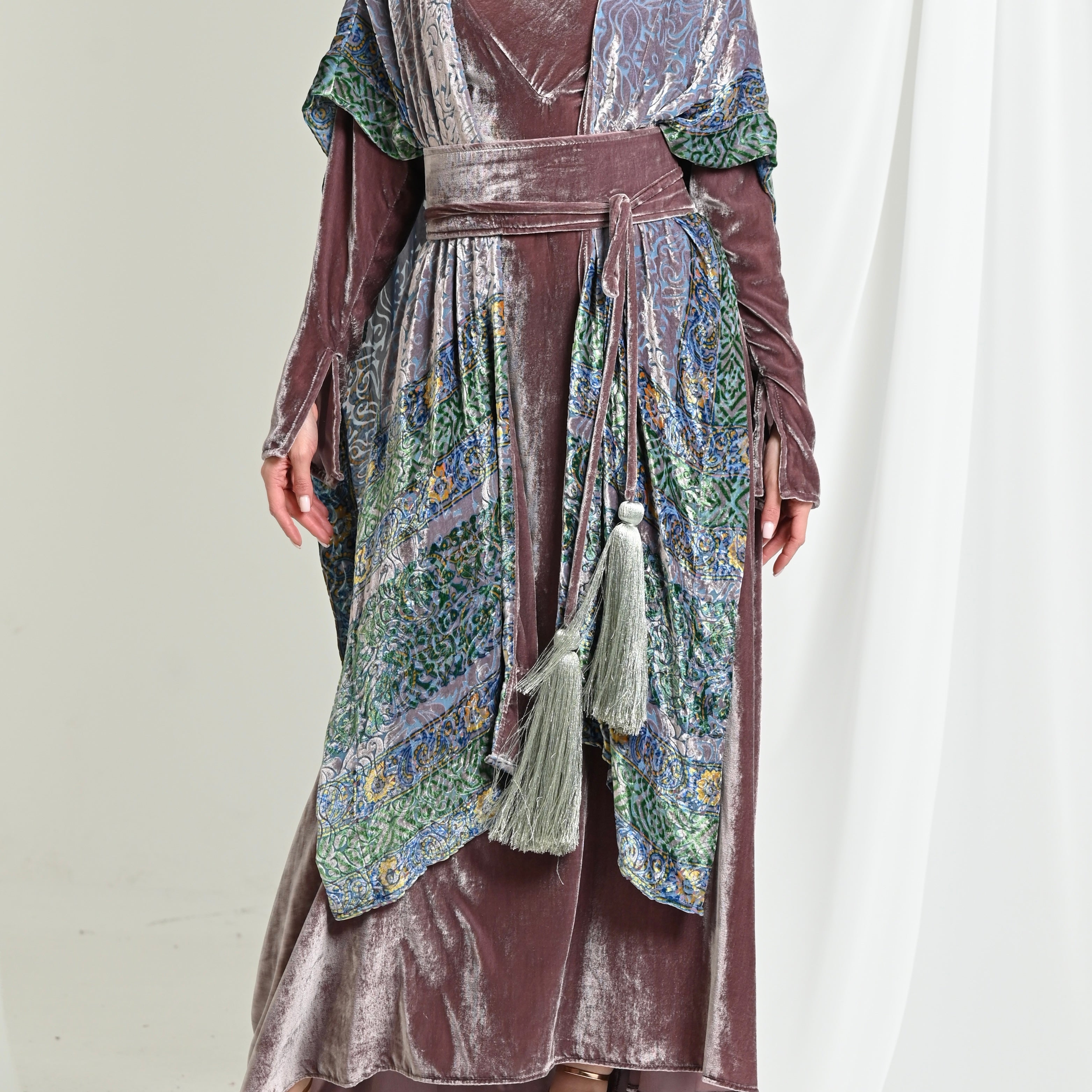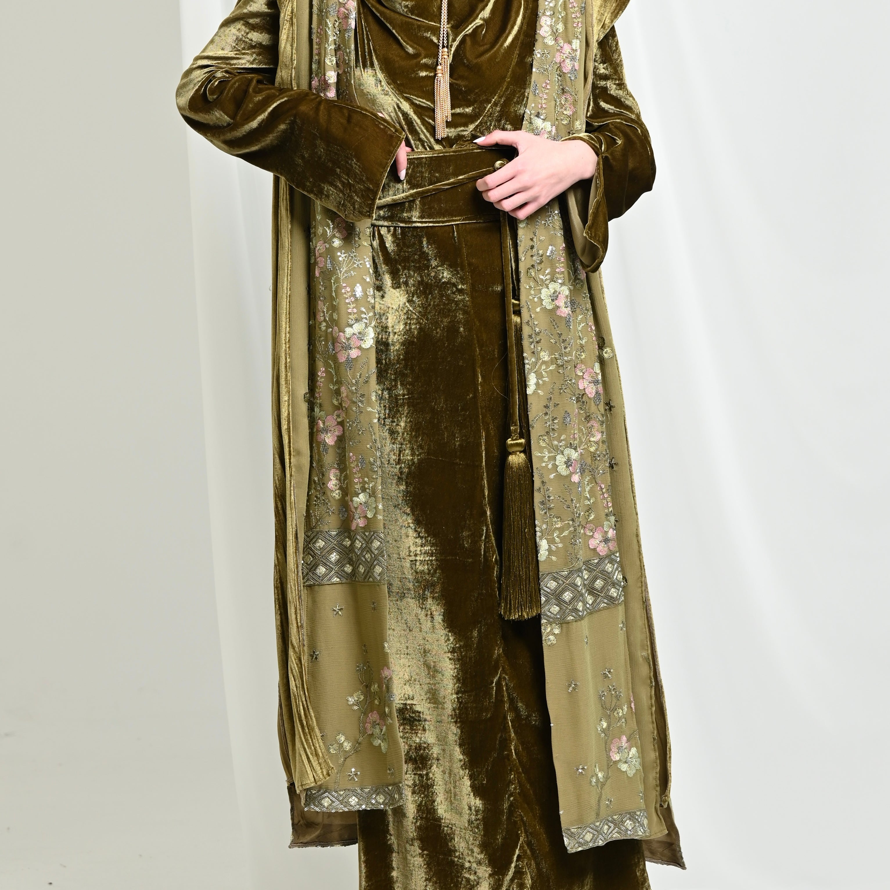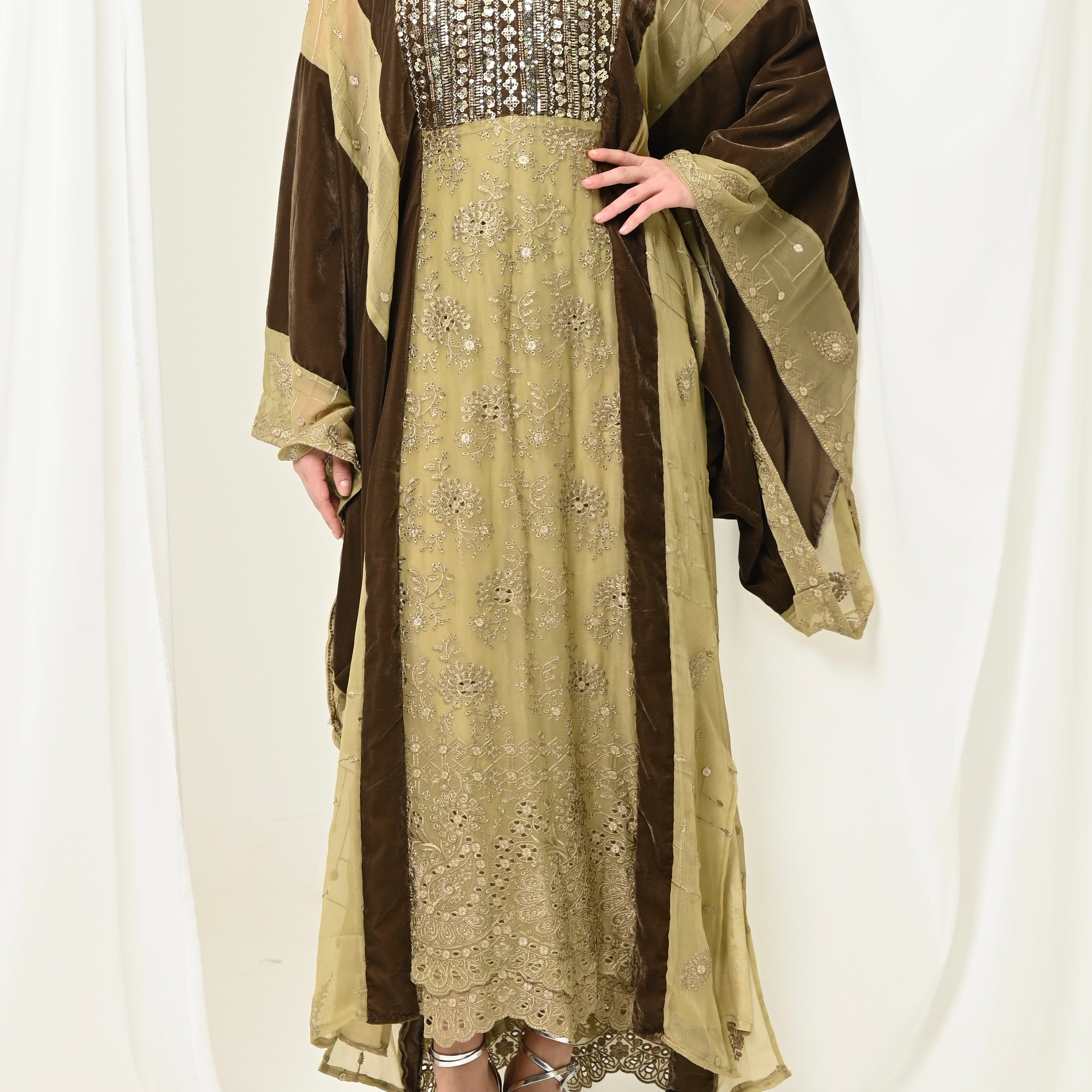 Velvet long Shawl & Dress set