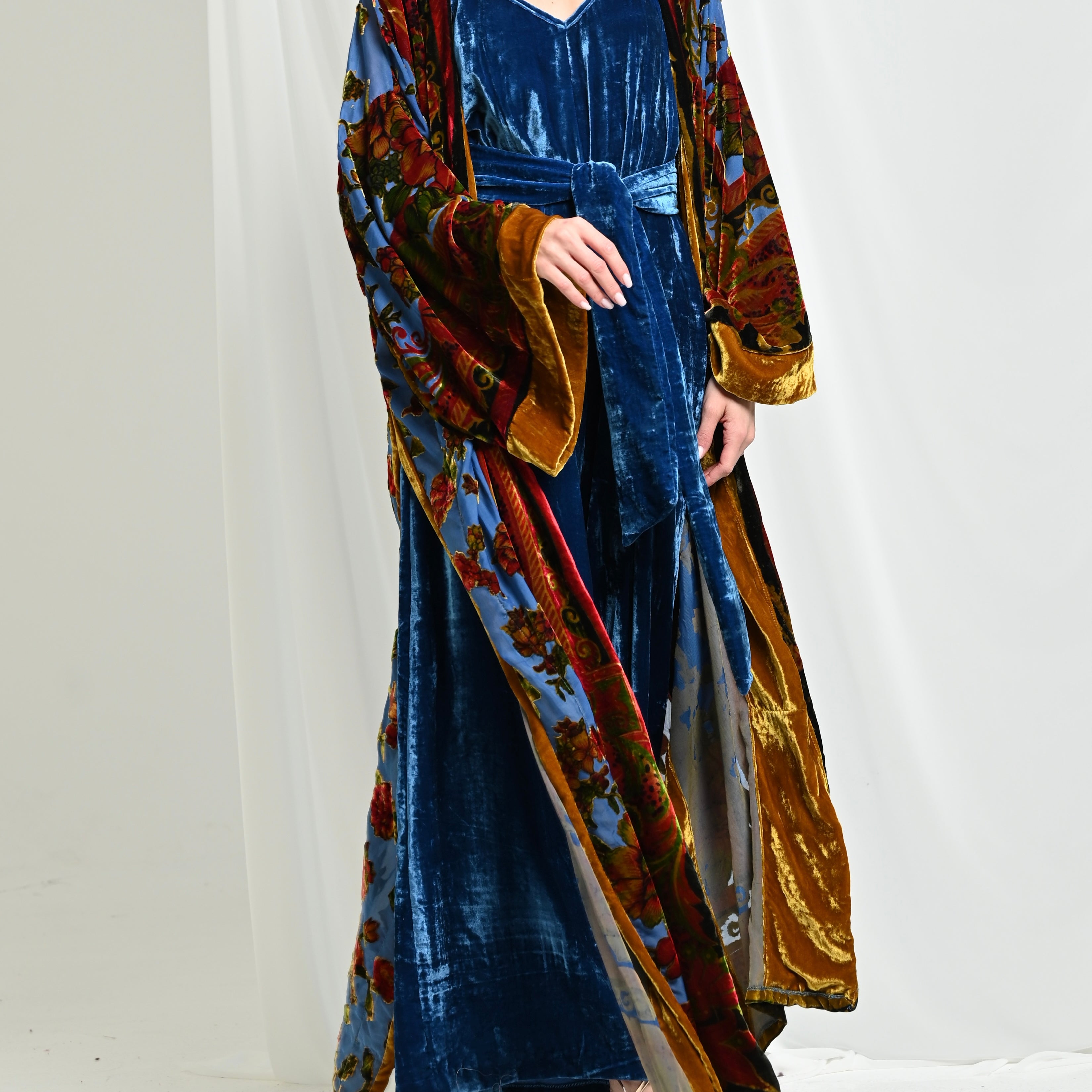 Blue Velvet Chiffon Kimono