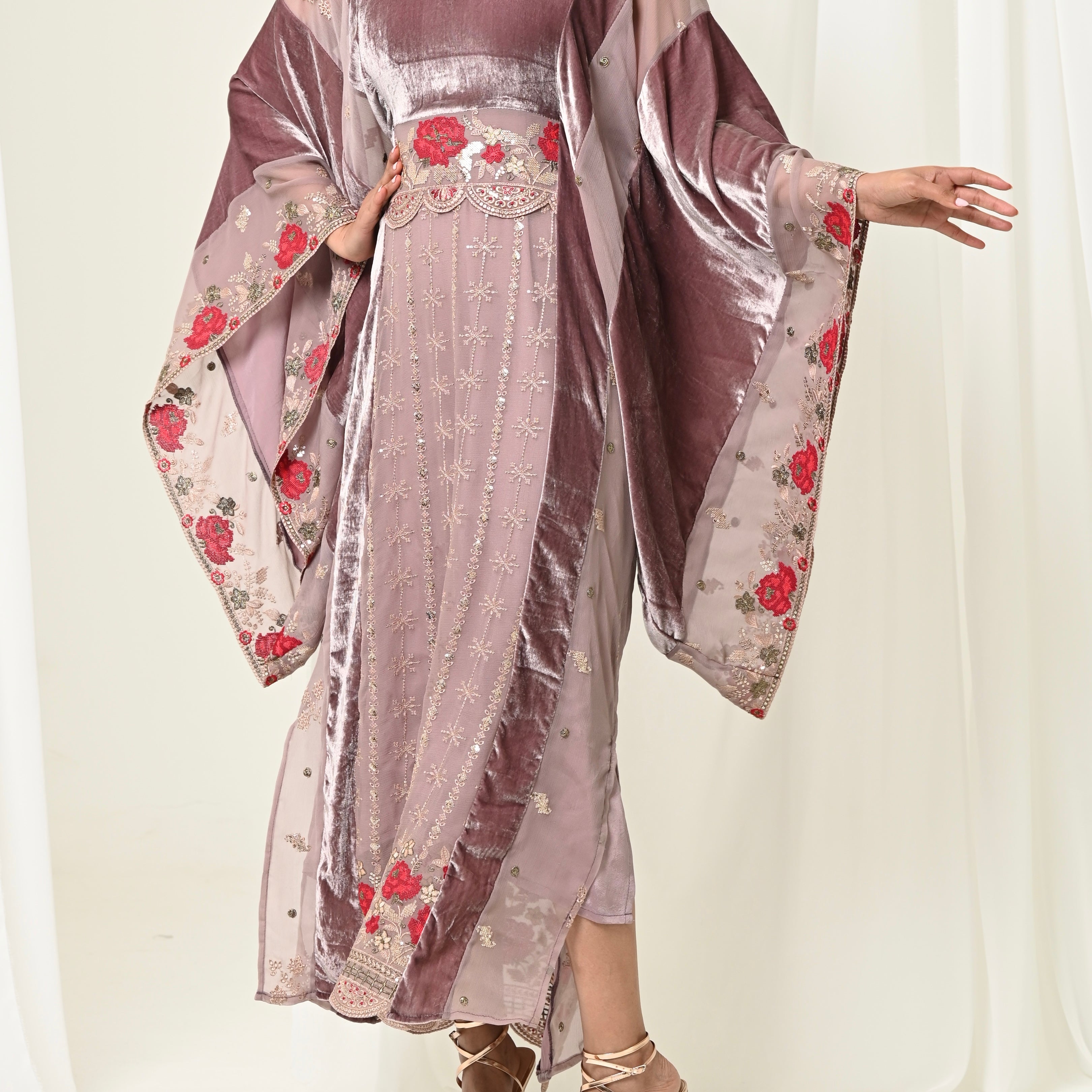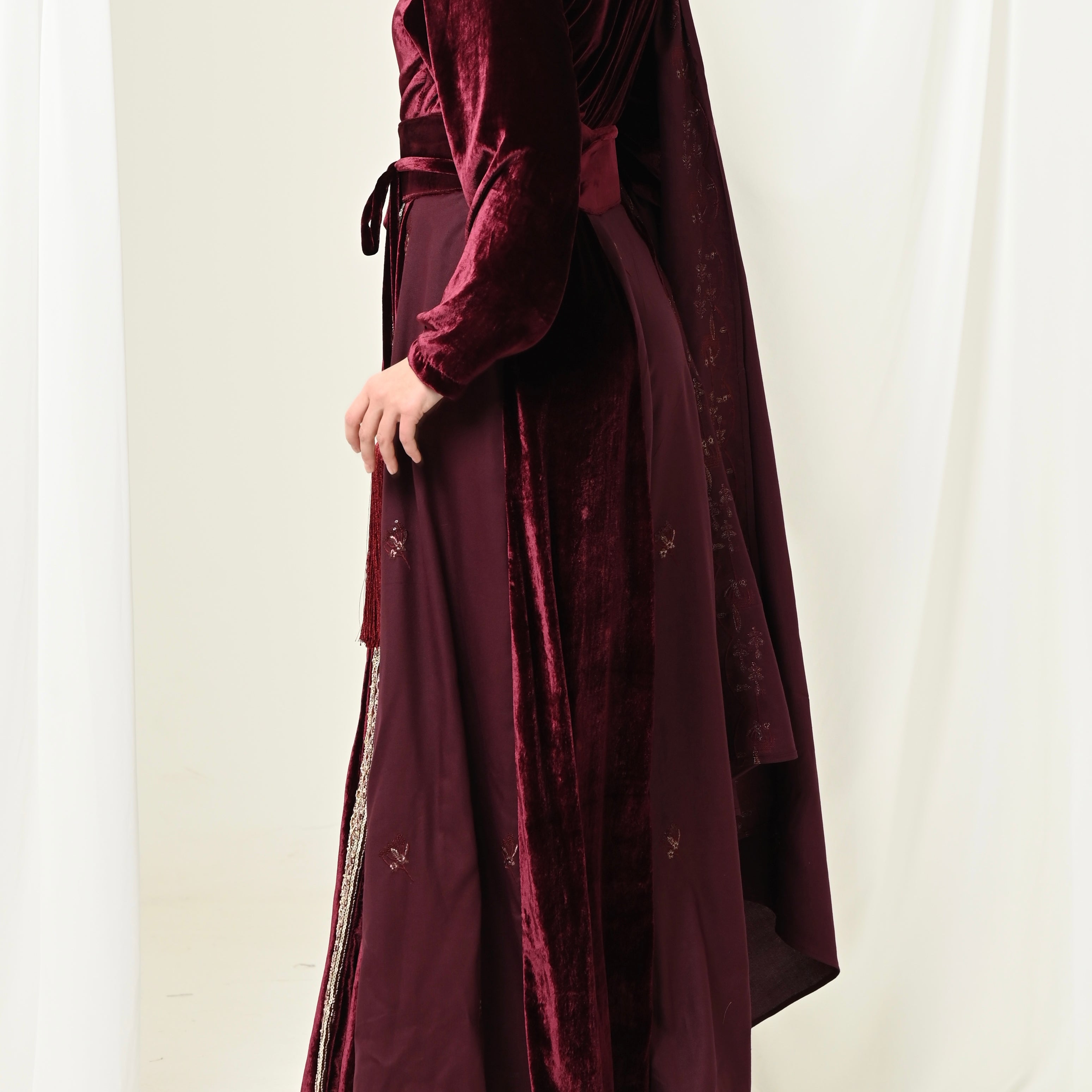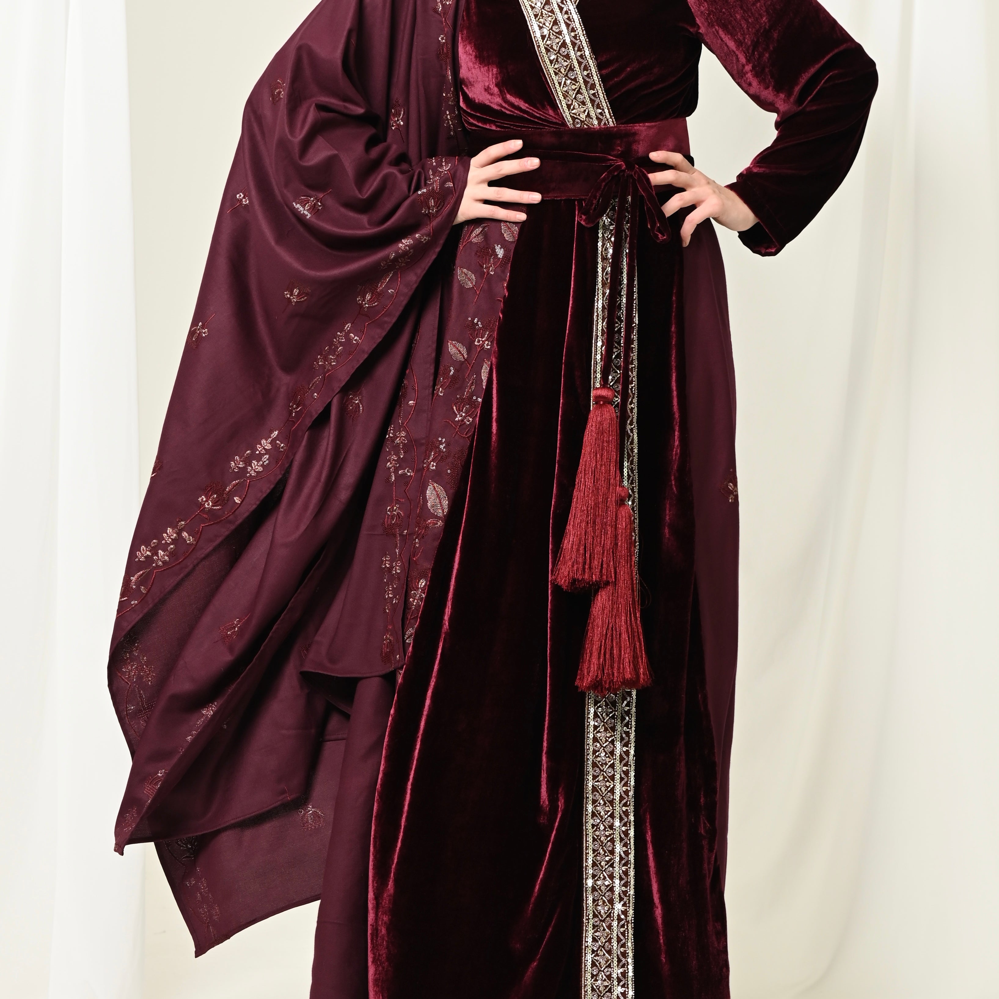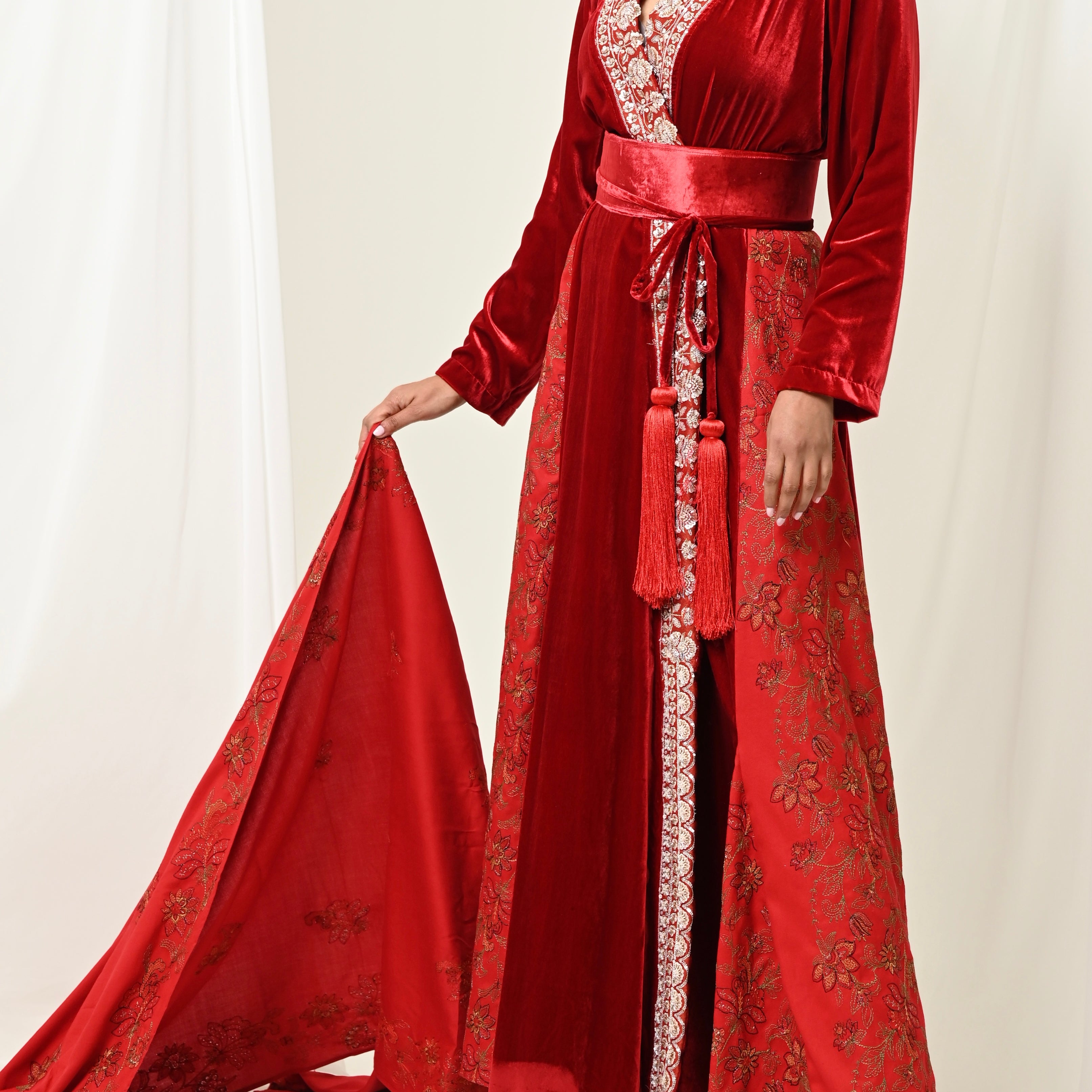 Maroon Velvet Chiffon Kaftan