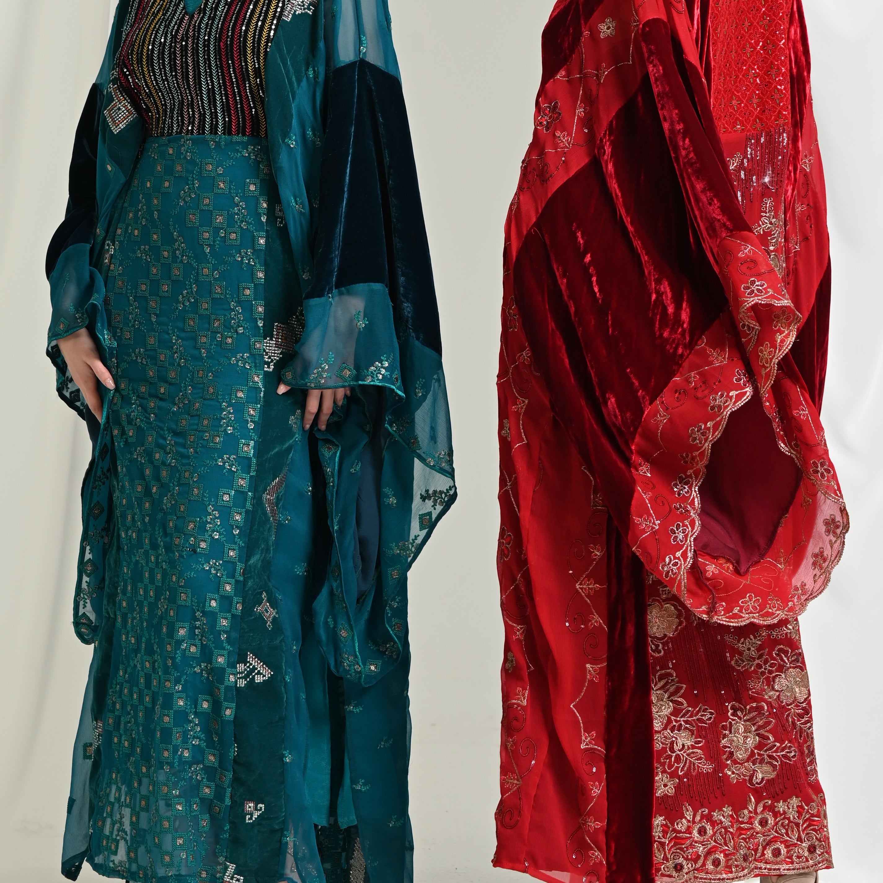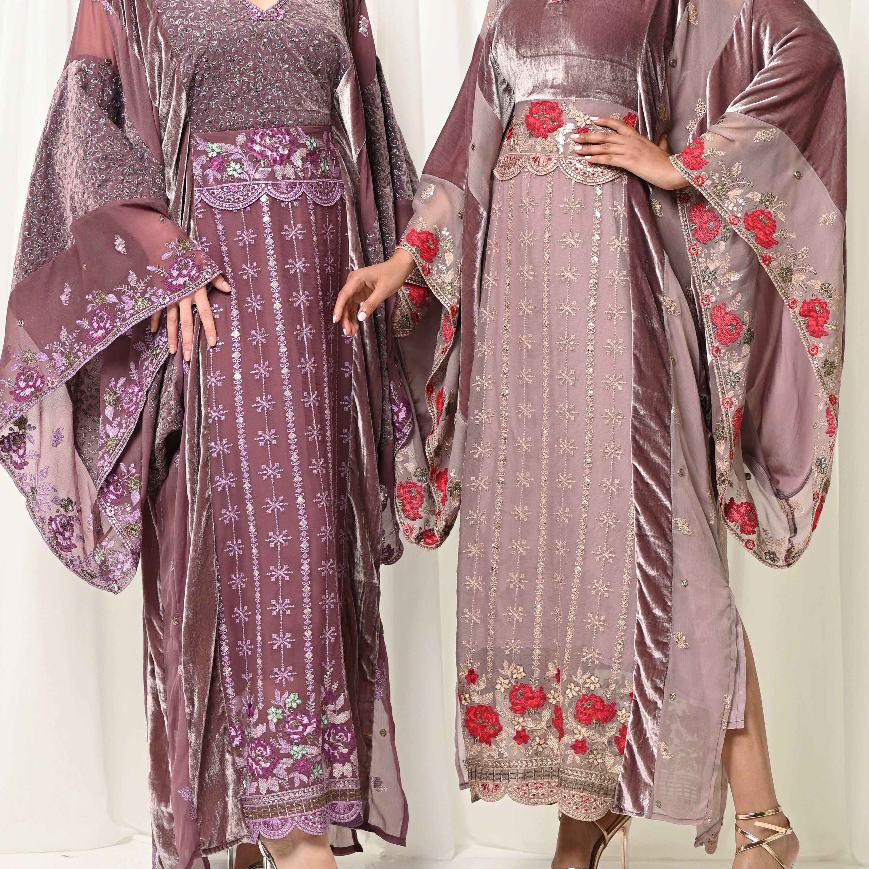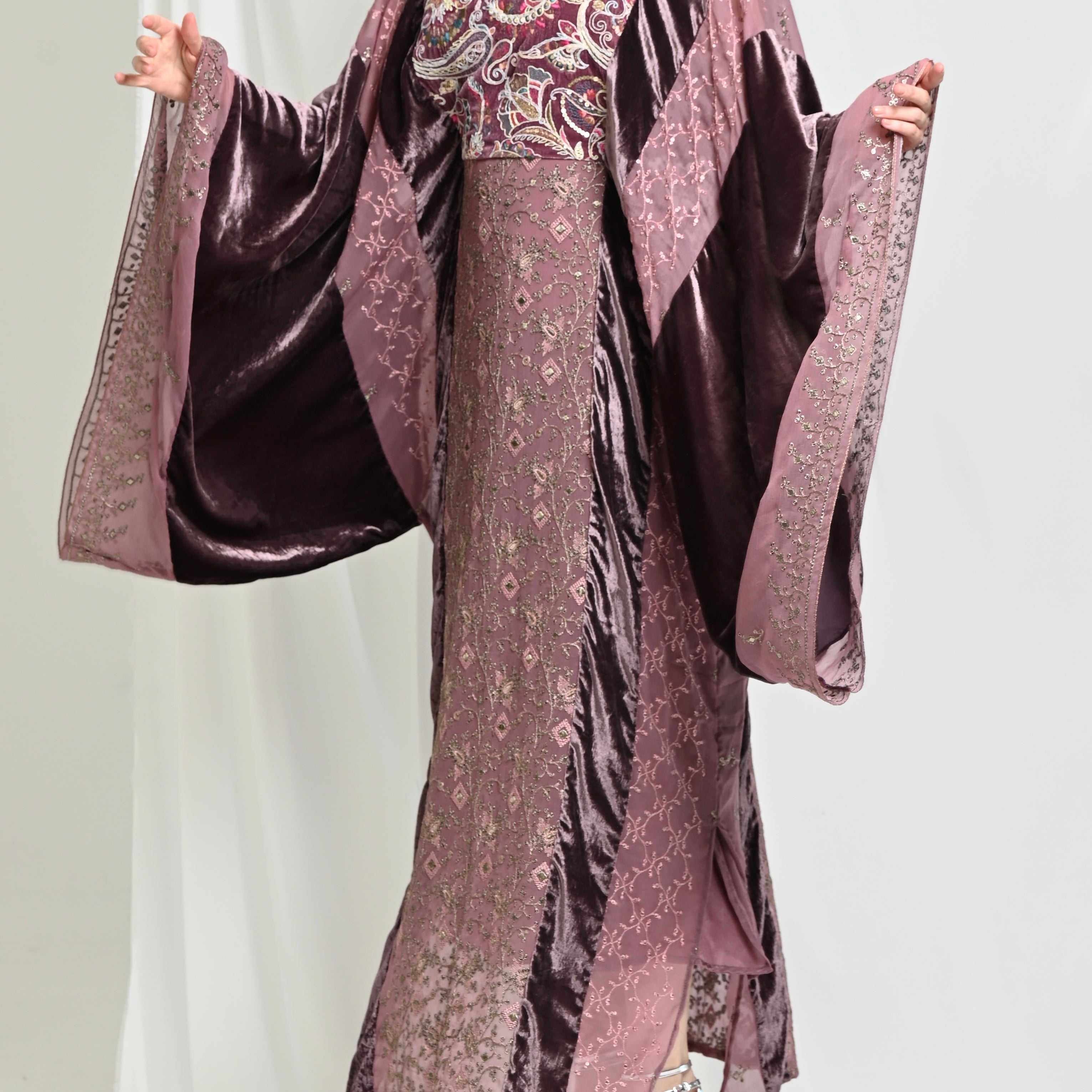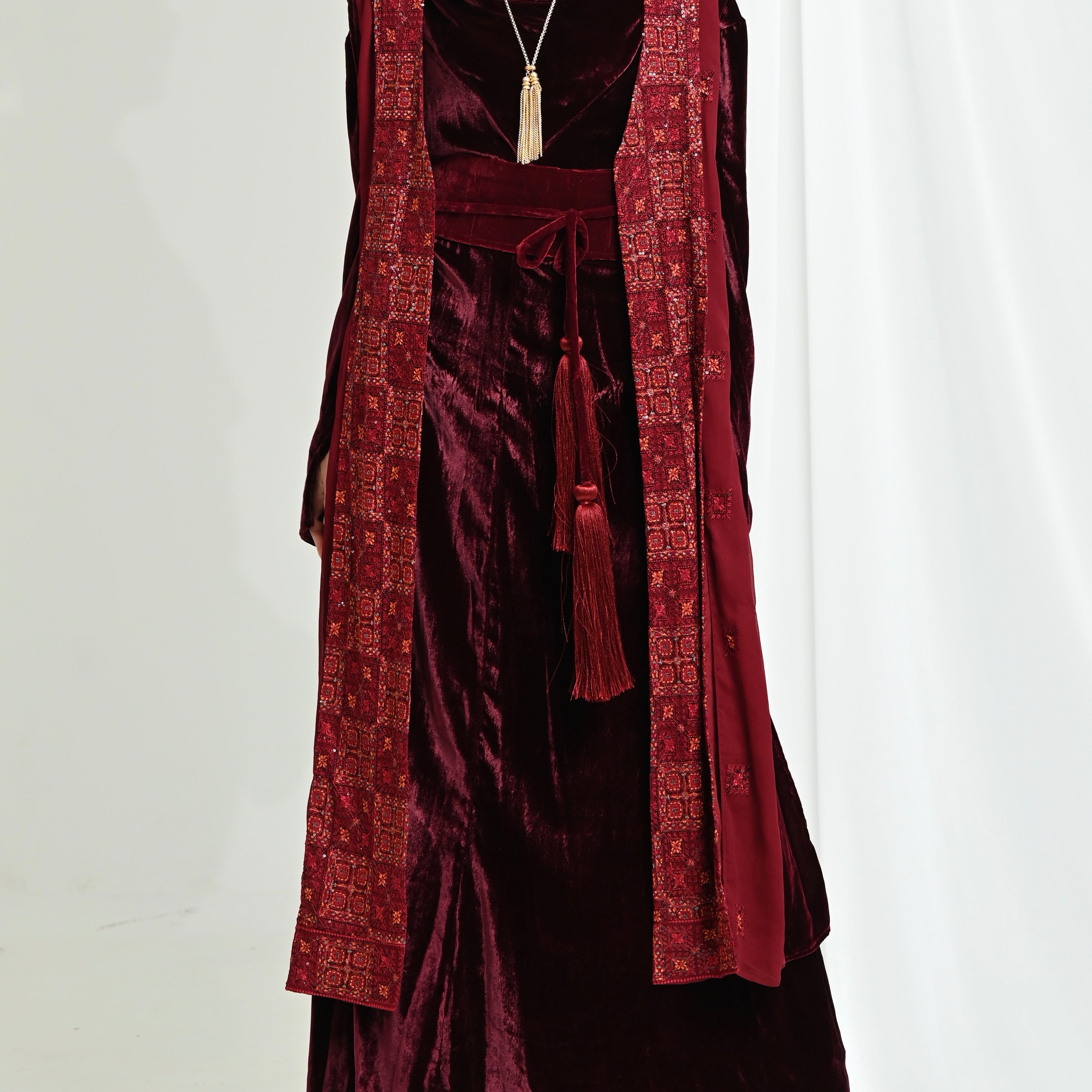 Maroon Velvet Chiffon Kaftan