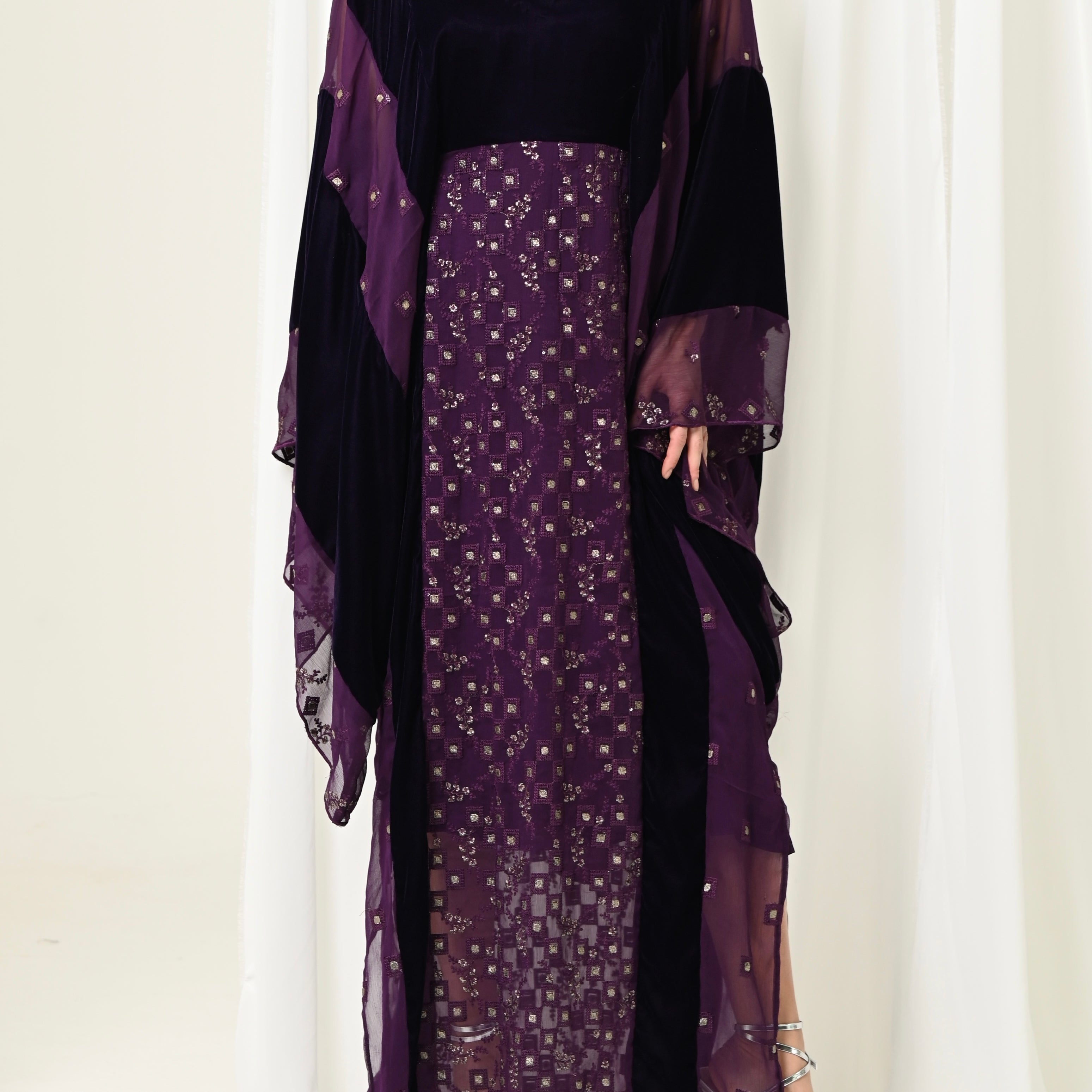 Velvet Chiffon Shawl & Dress Set
