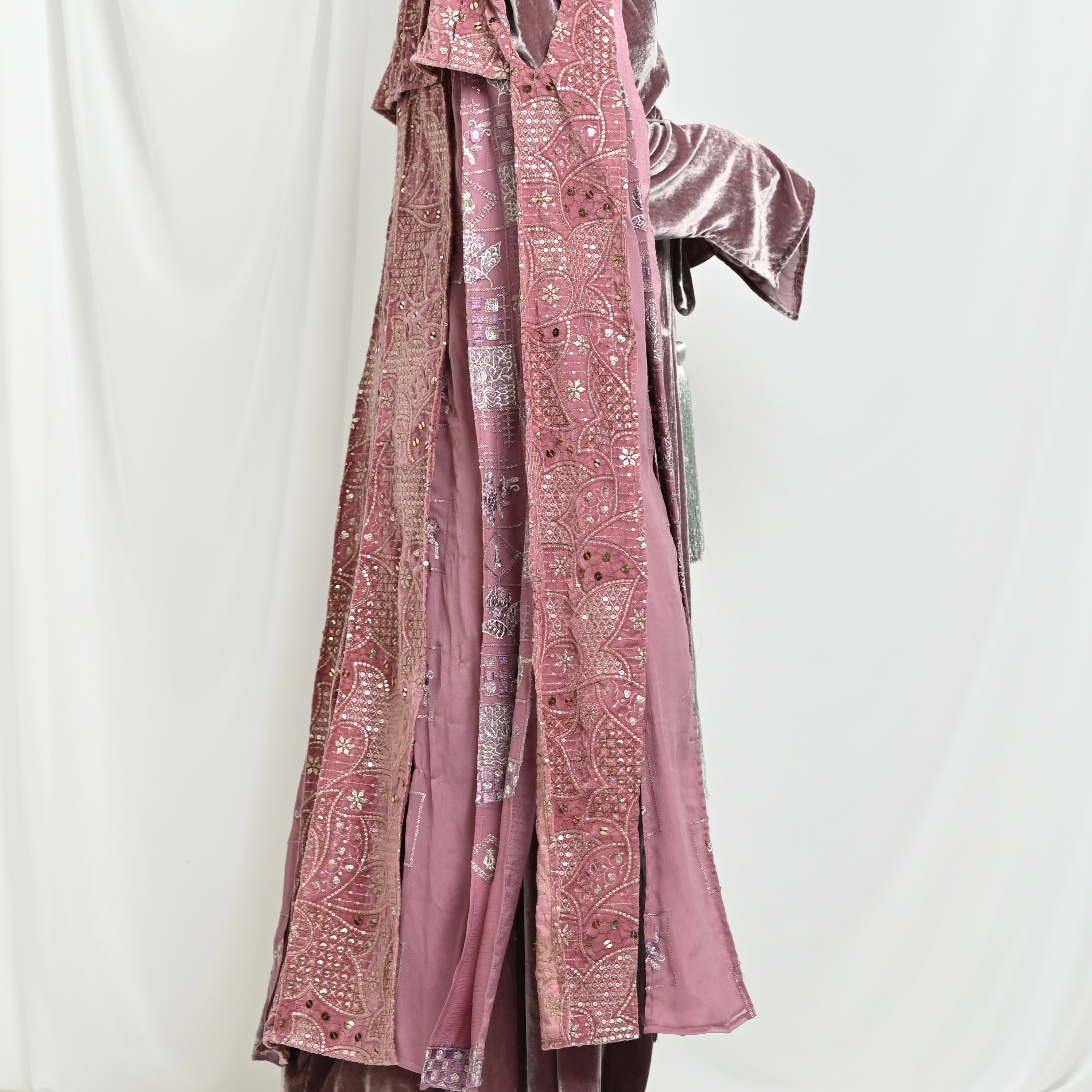 Pink Velvet Bisht Set