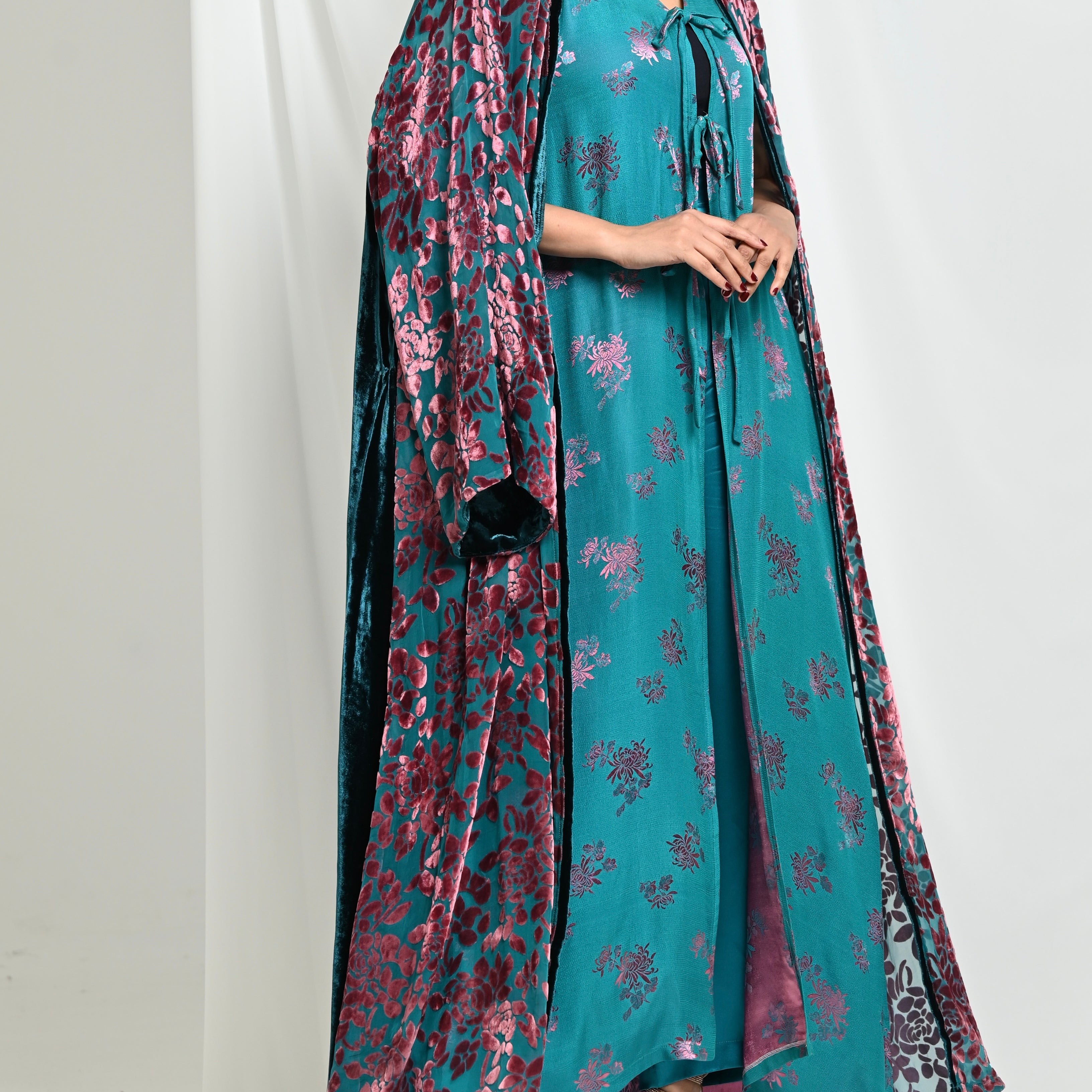Velvet Chiffon Bisht & Pants Set