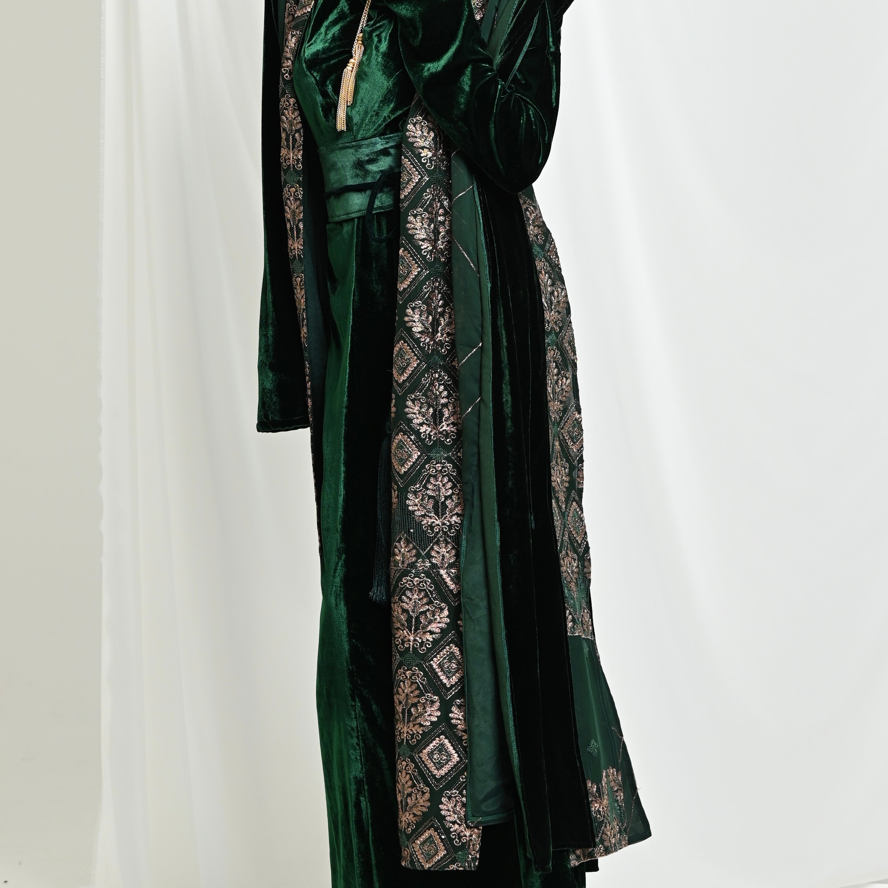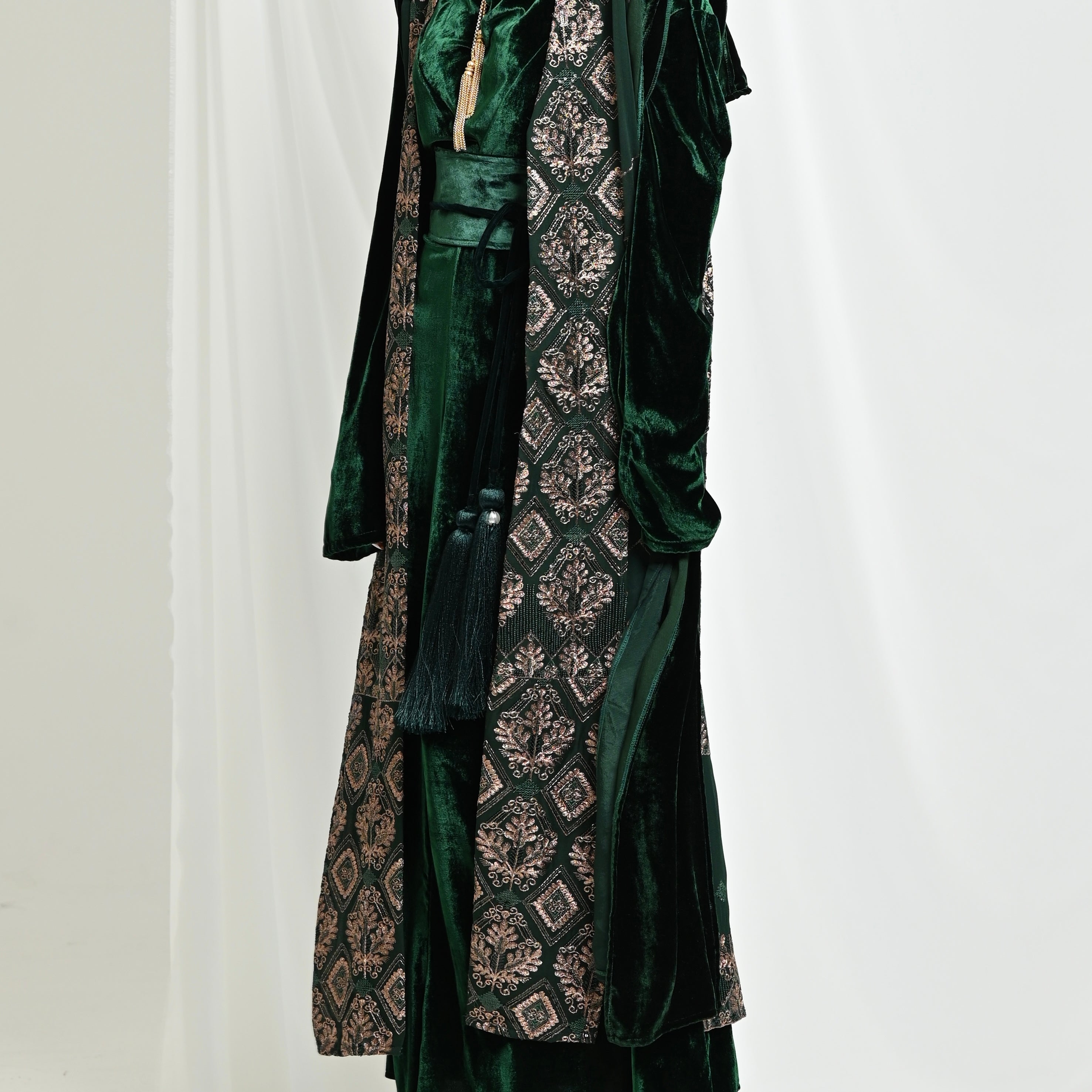 Green Velvet Bisht Set