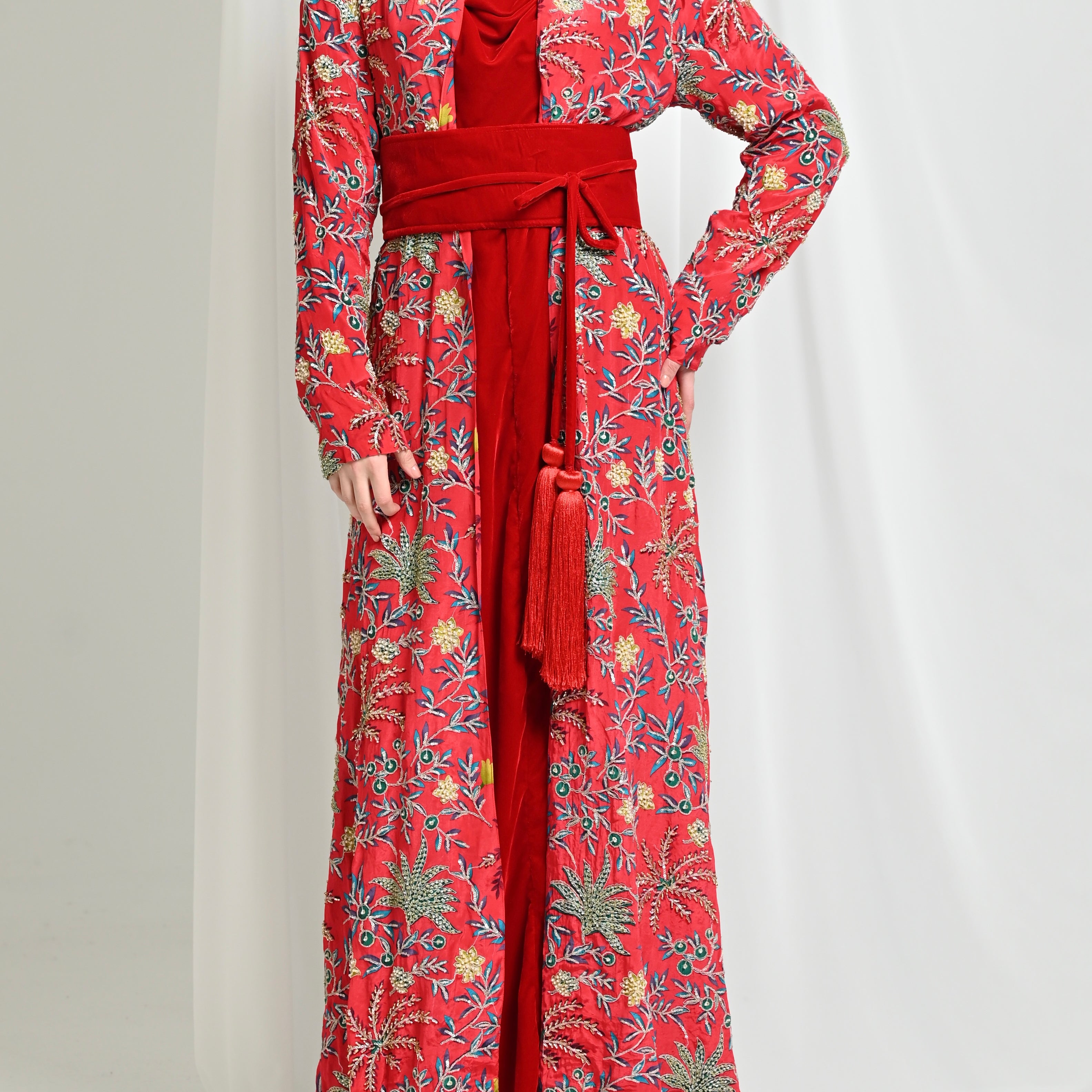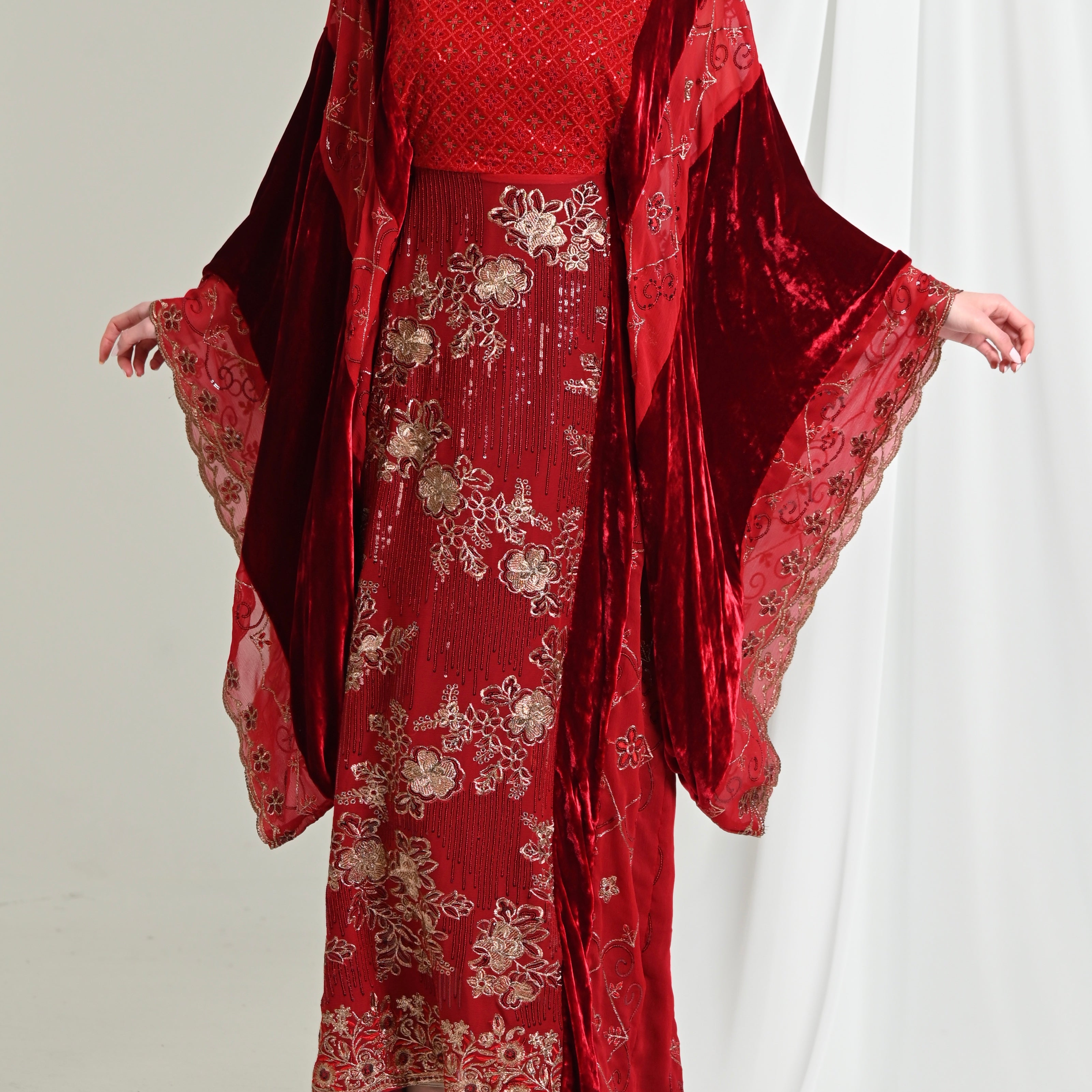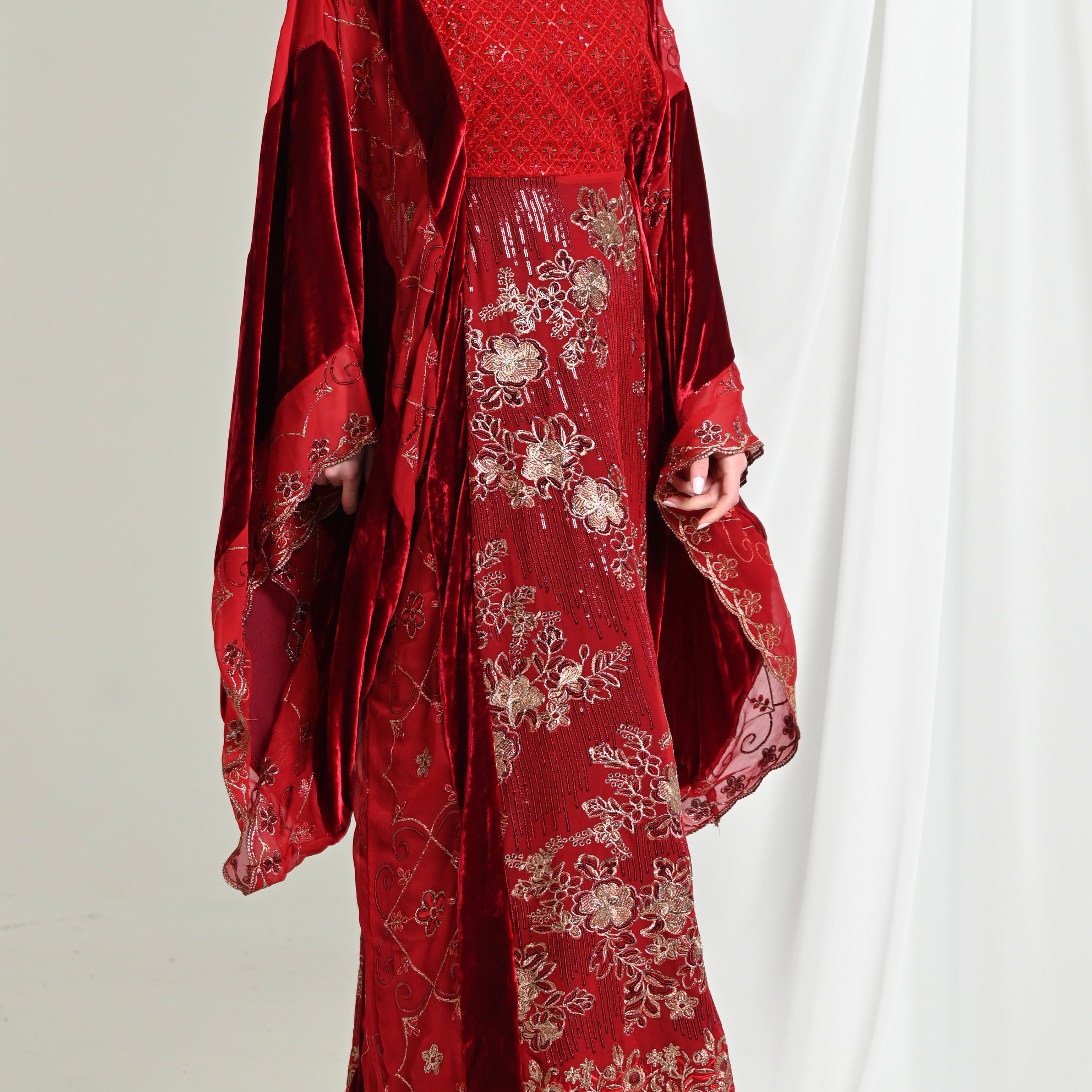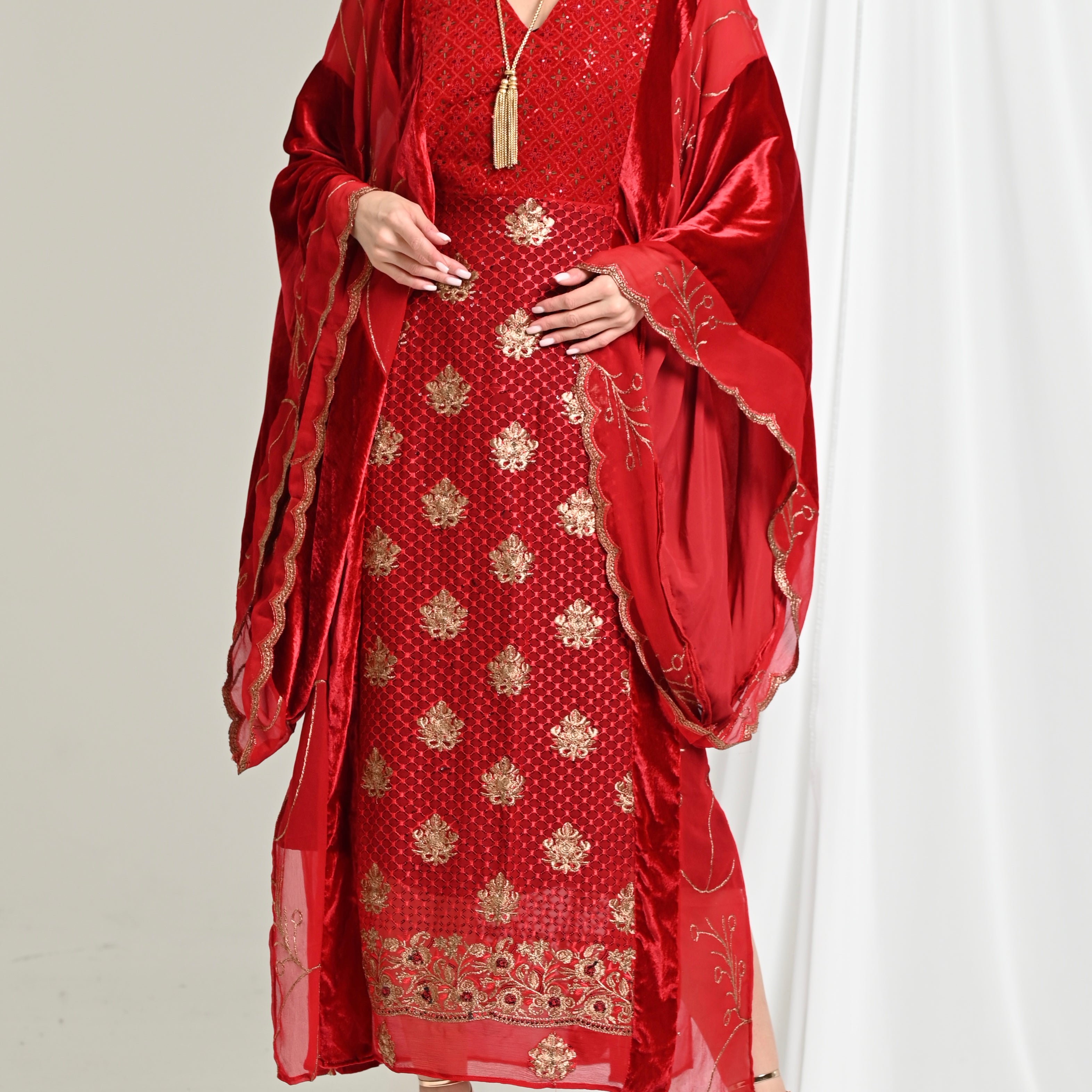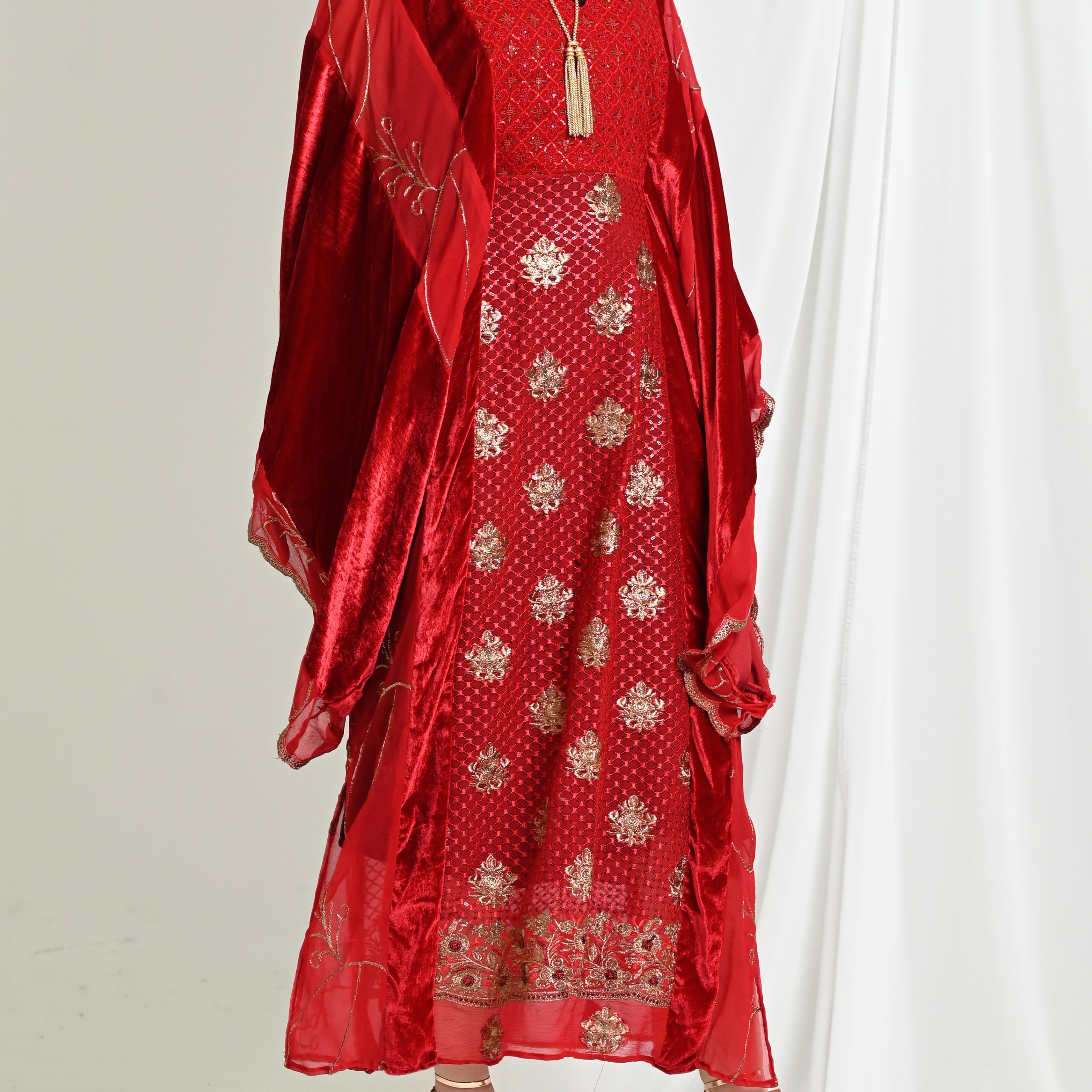 Red Najdi Chiffon Velvet Kaftan