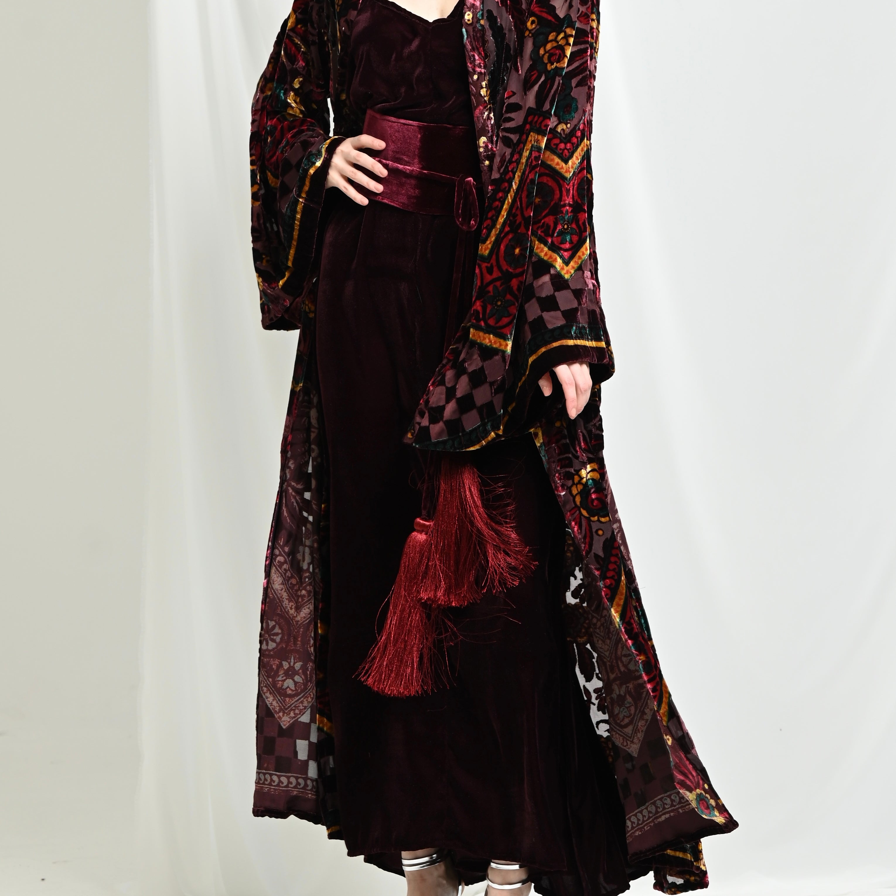 Maroon Velvet Chiffon Kimono