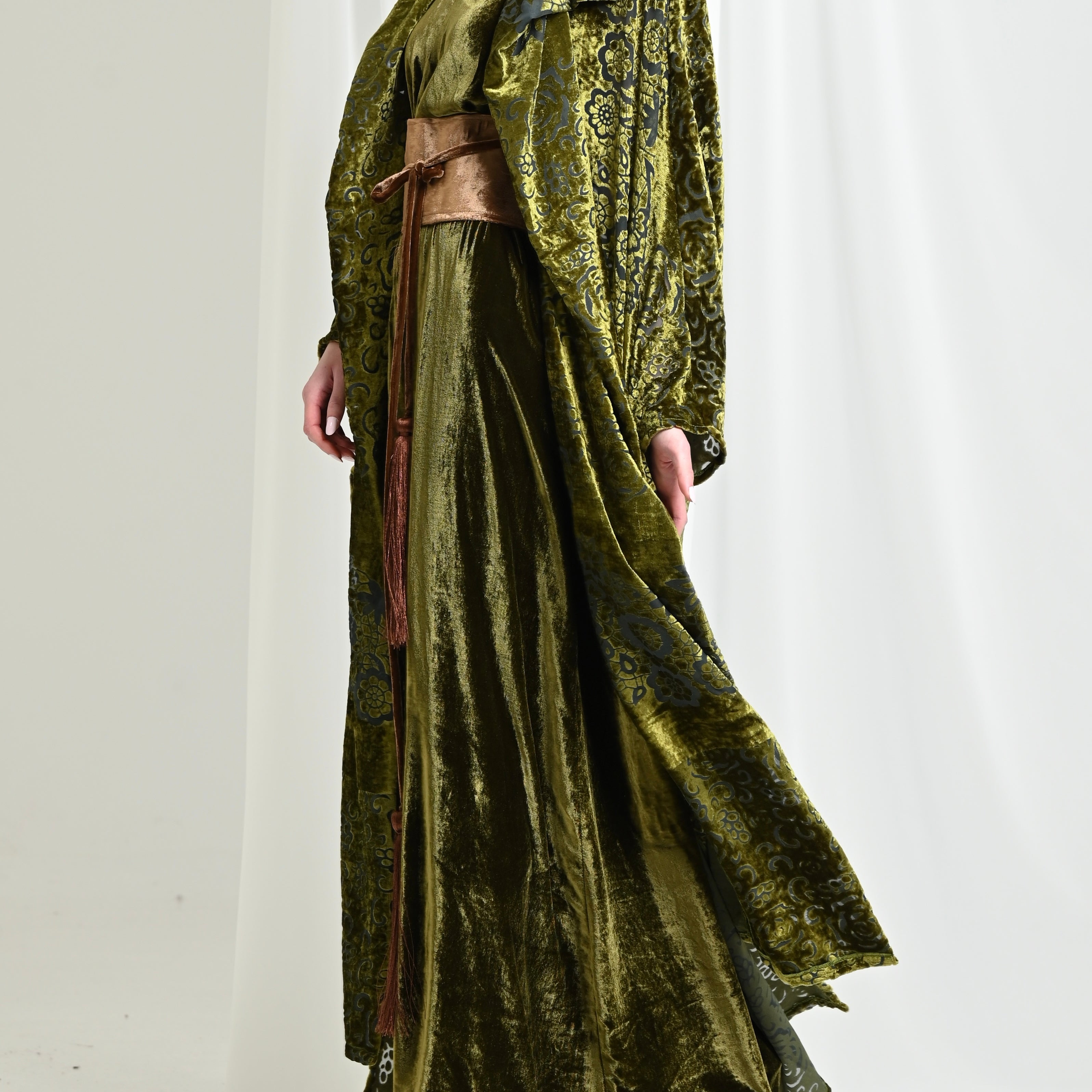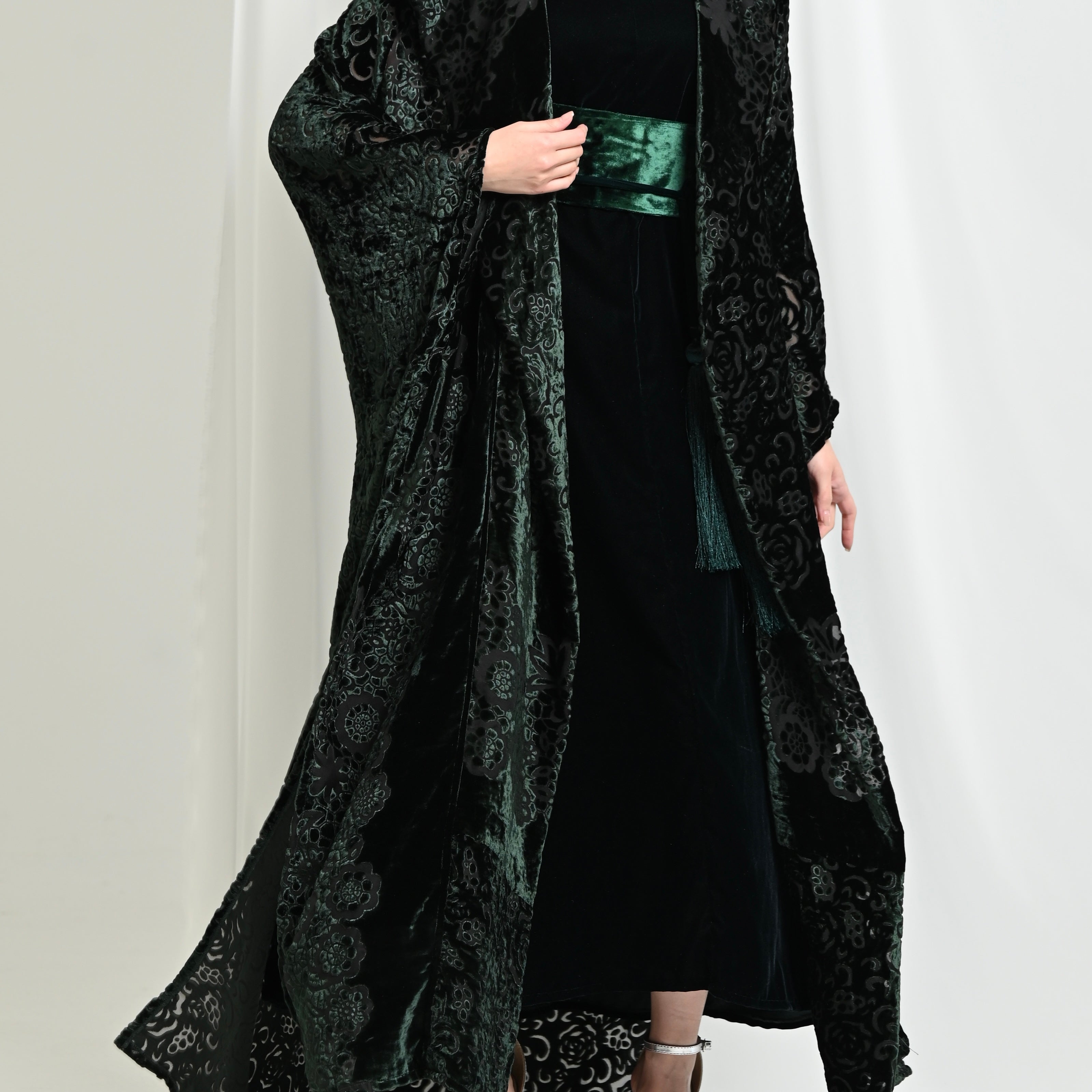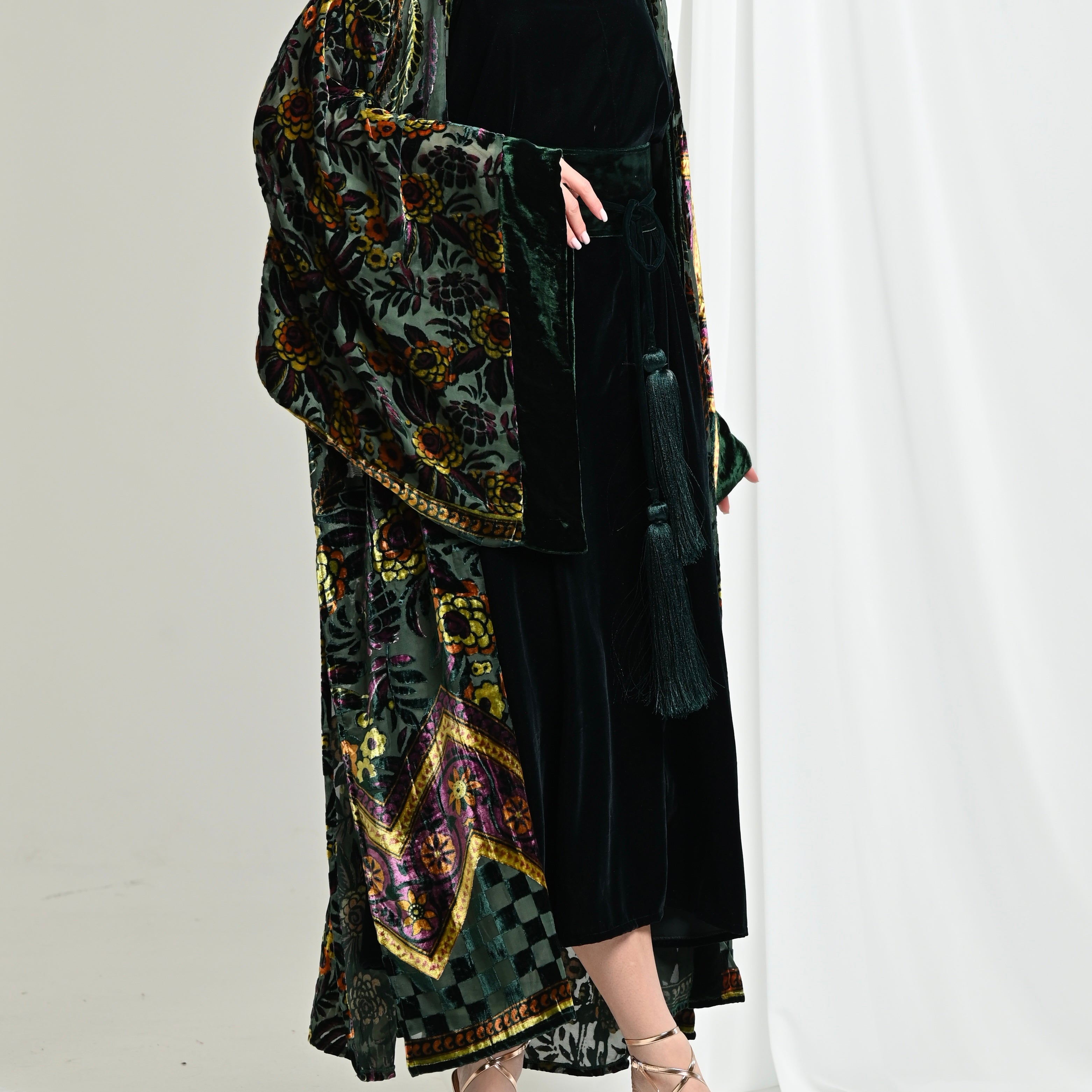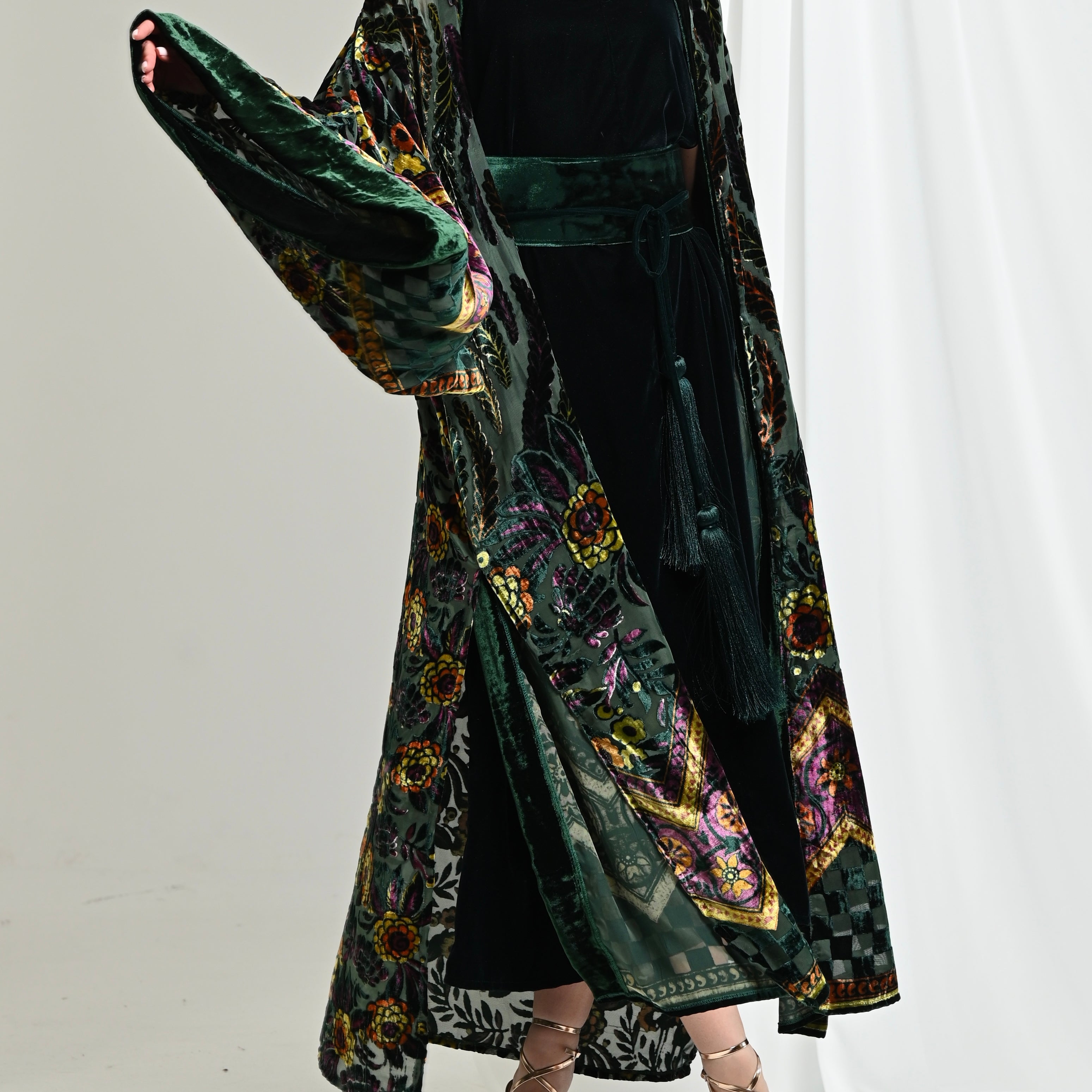 Green Velvet Chiffon Kimono