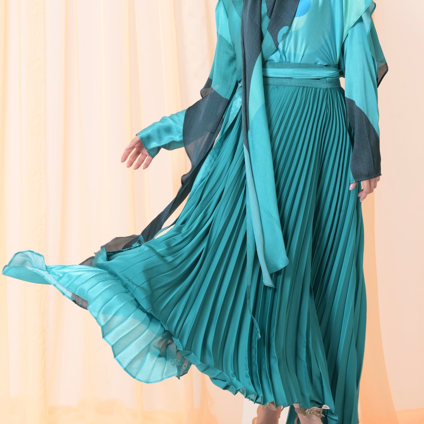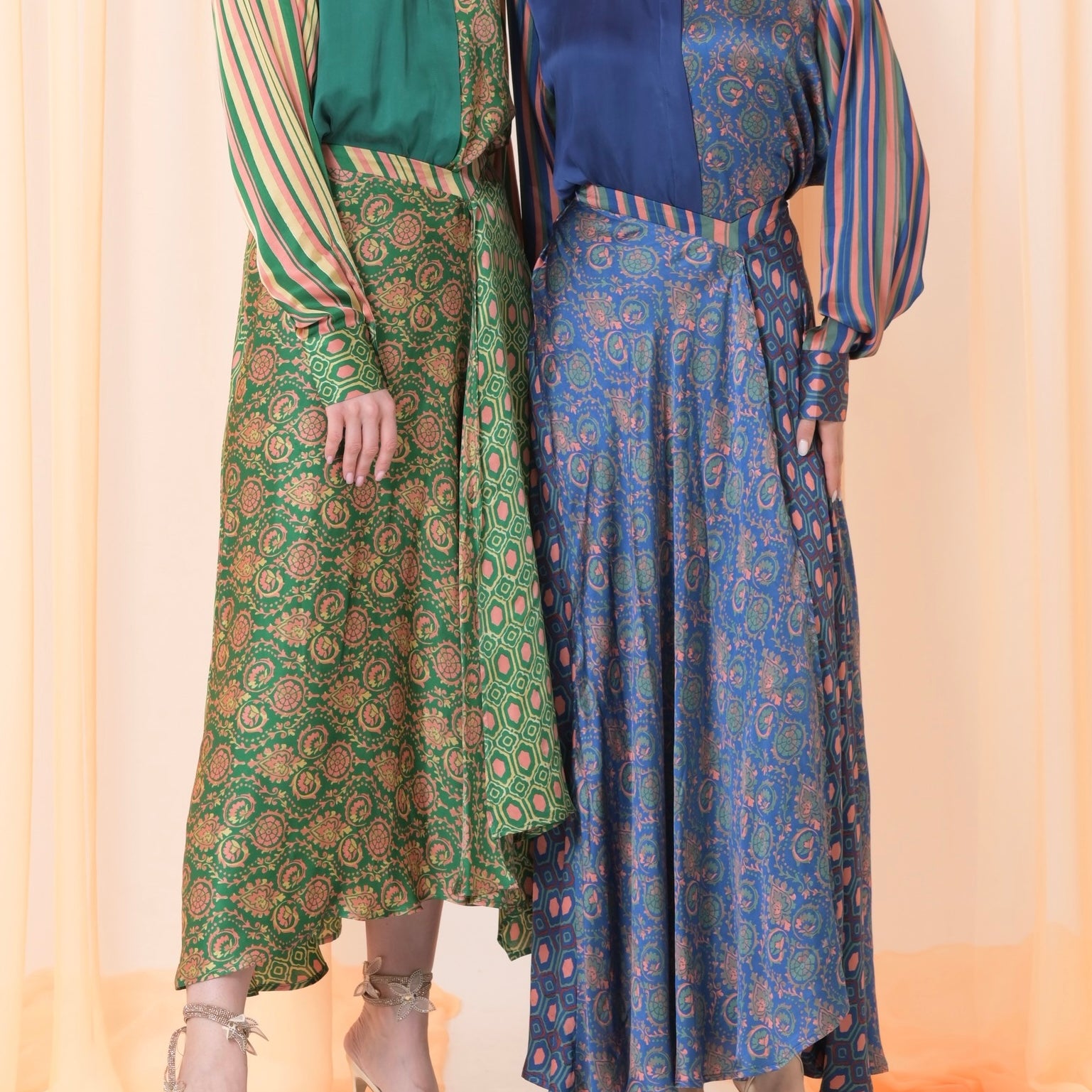 Green silk skirt set