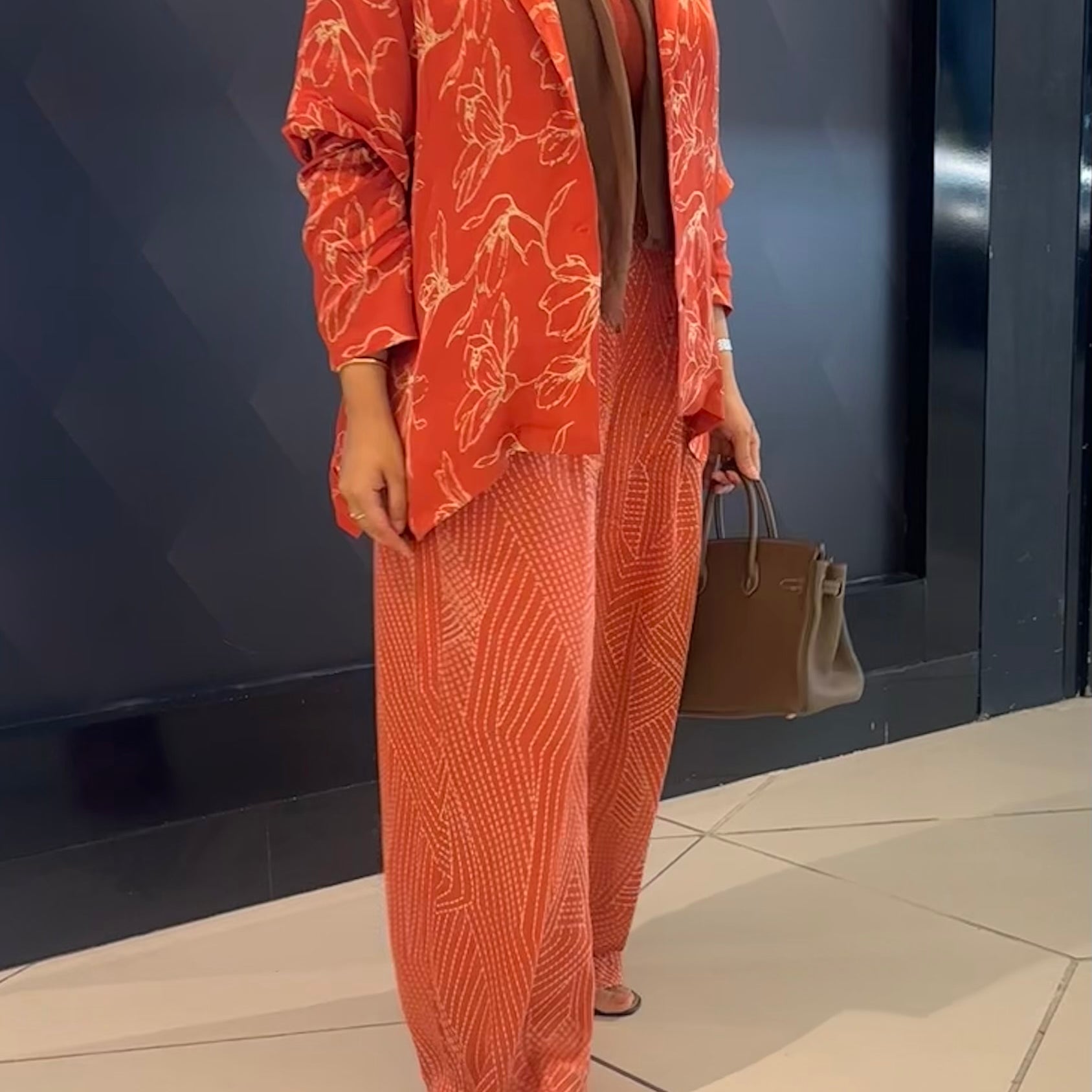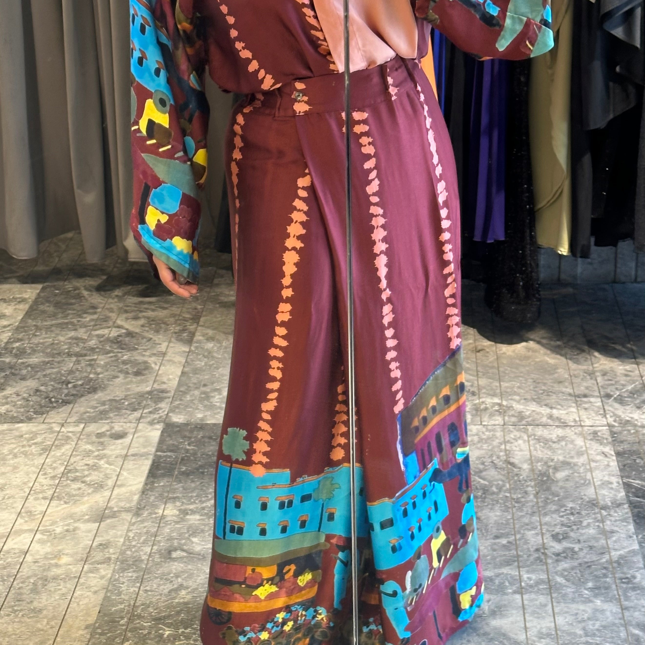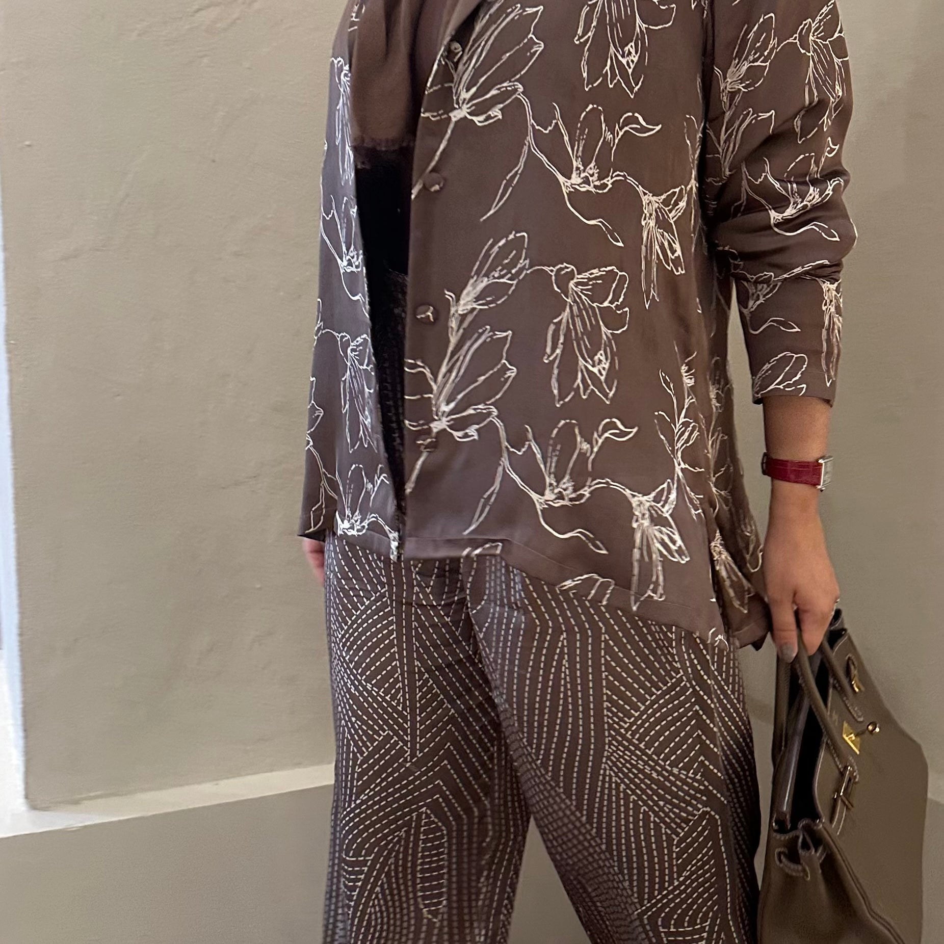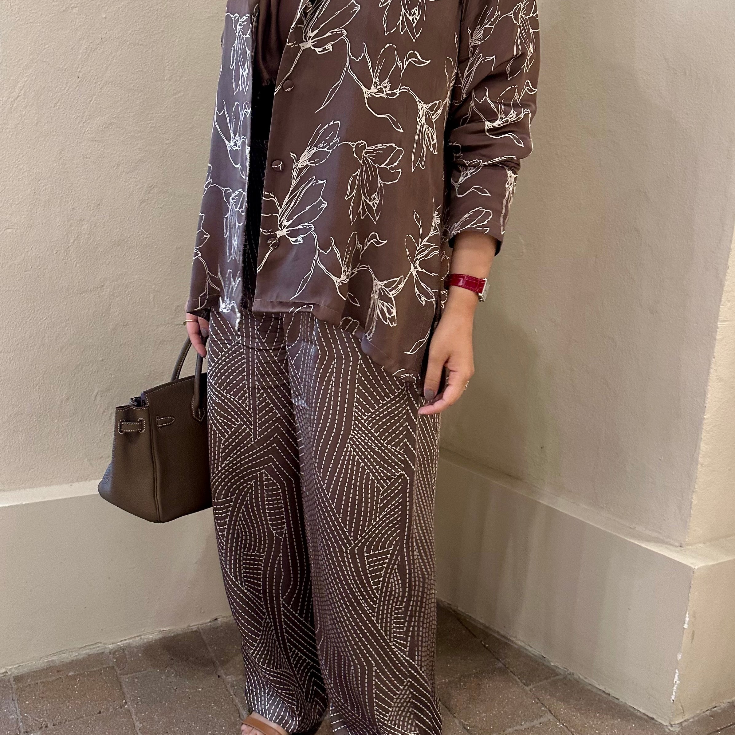 Brown silk pants set