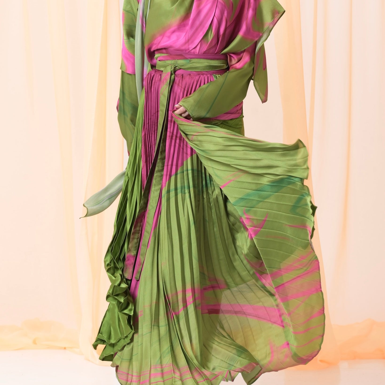 Hand painted pink organza silk set