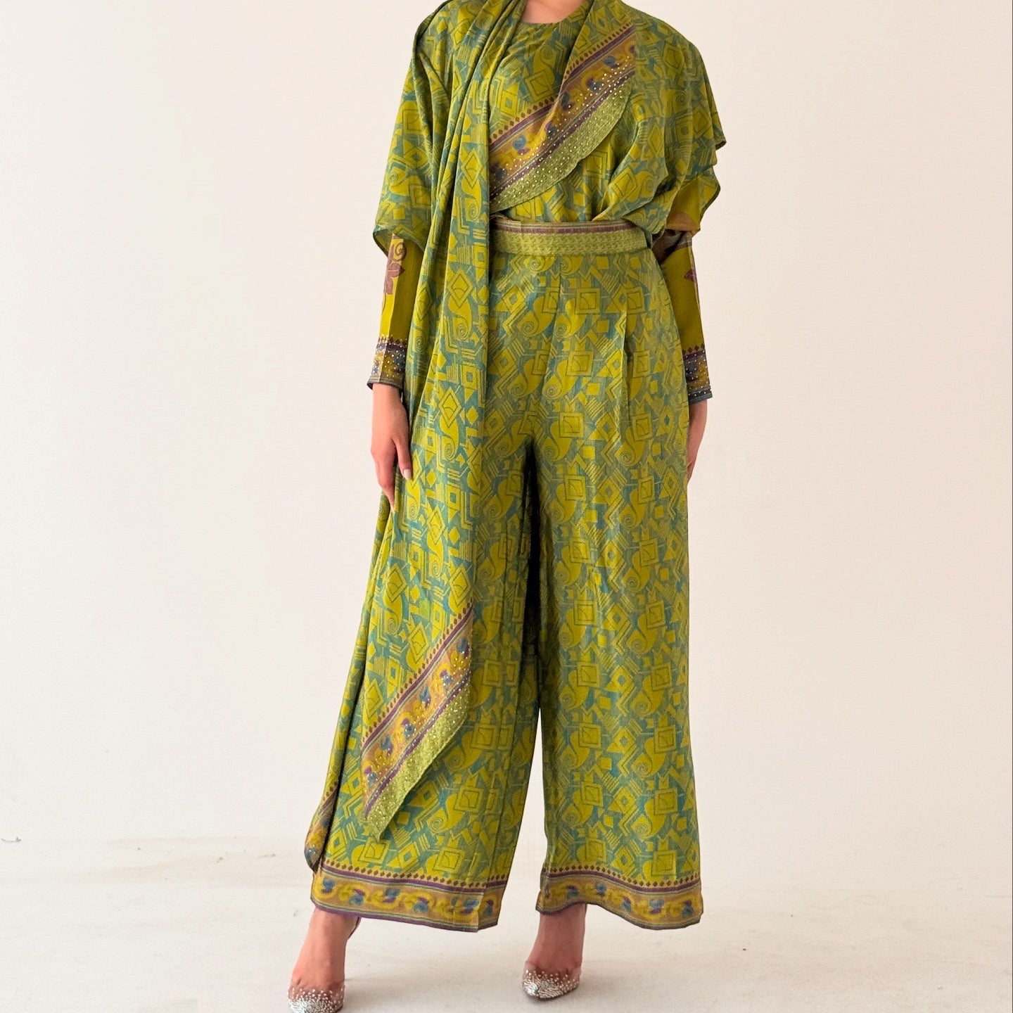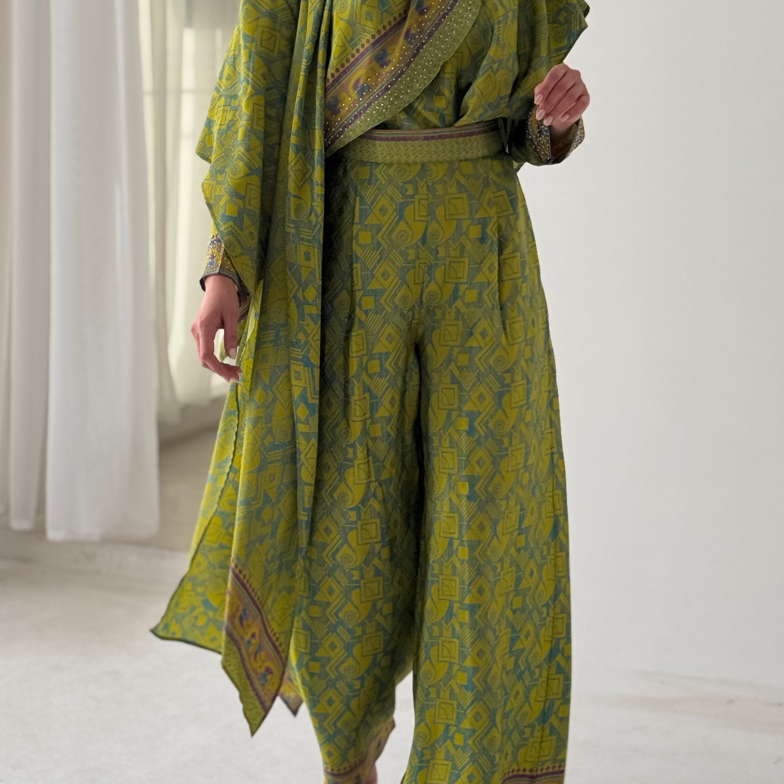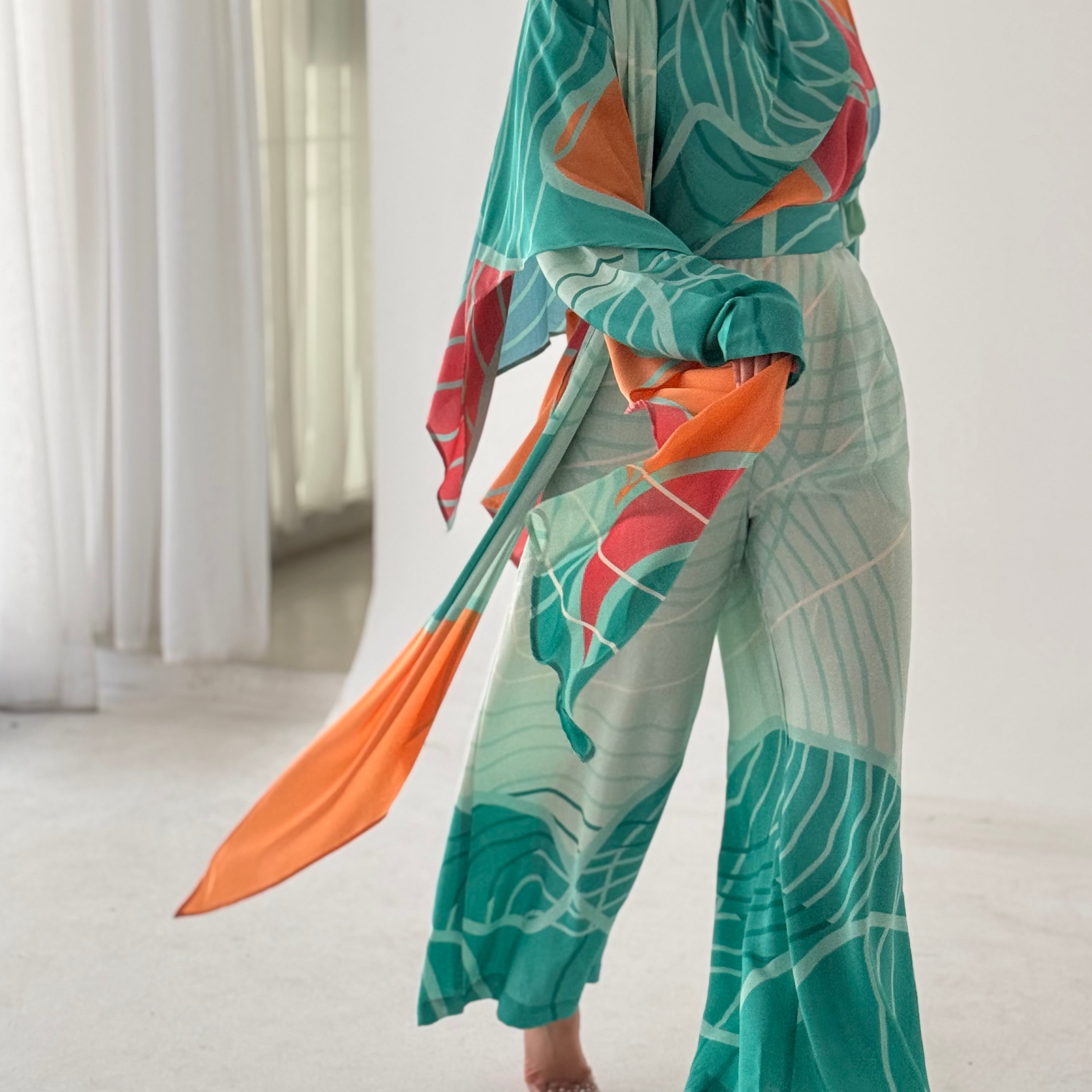 Green silk pants set