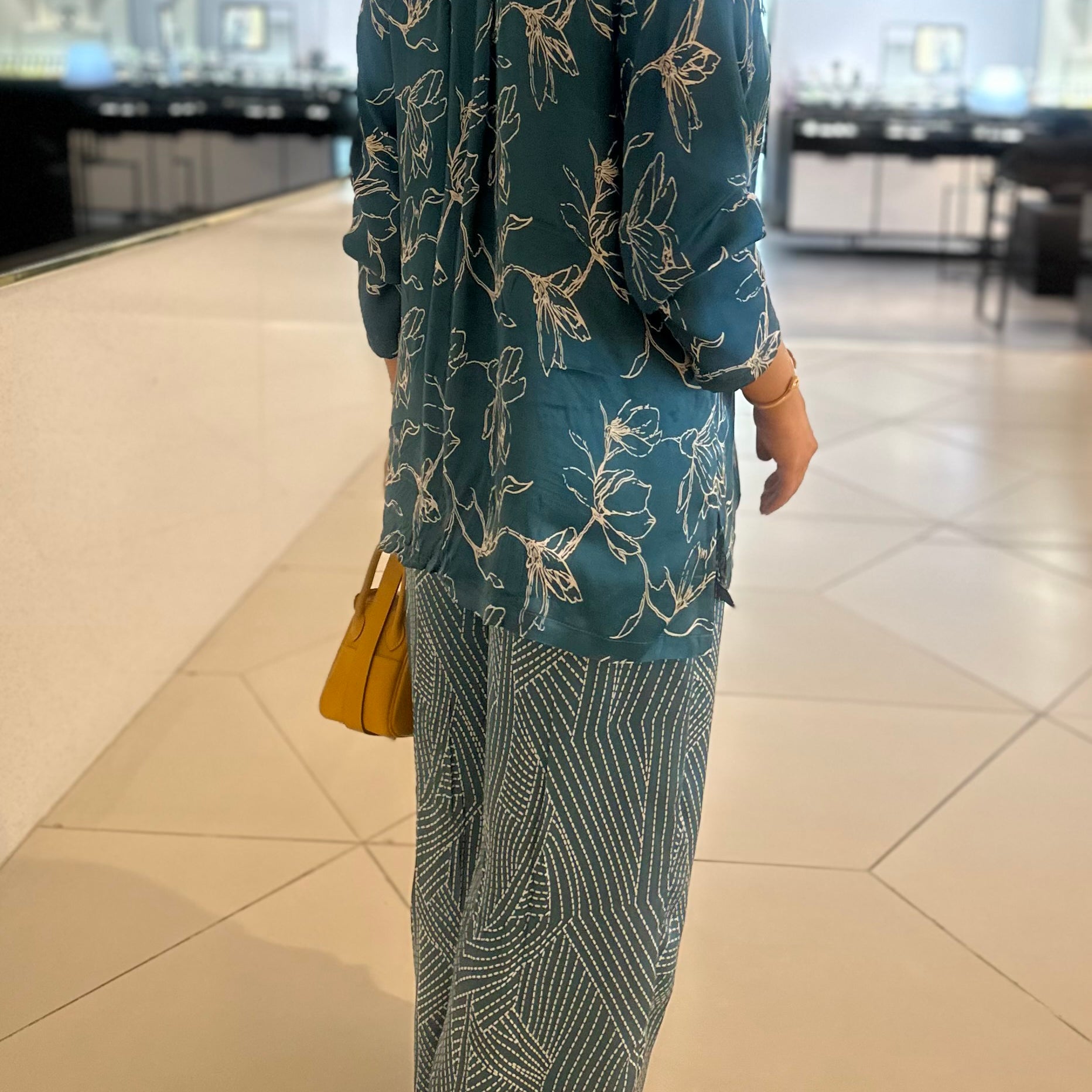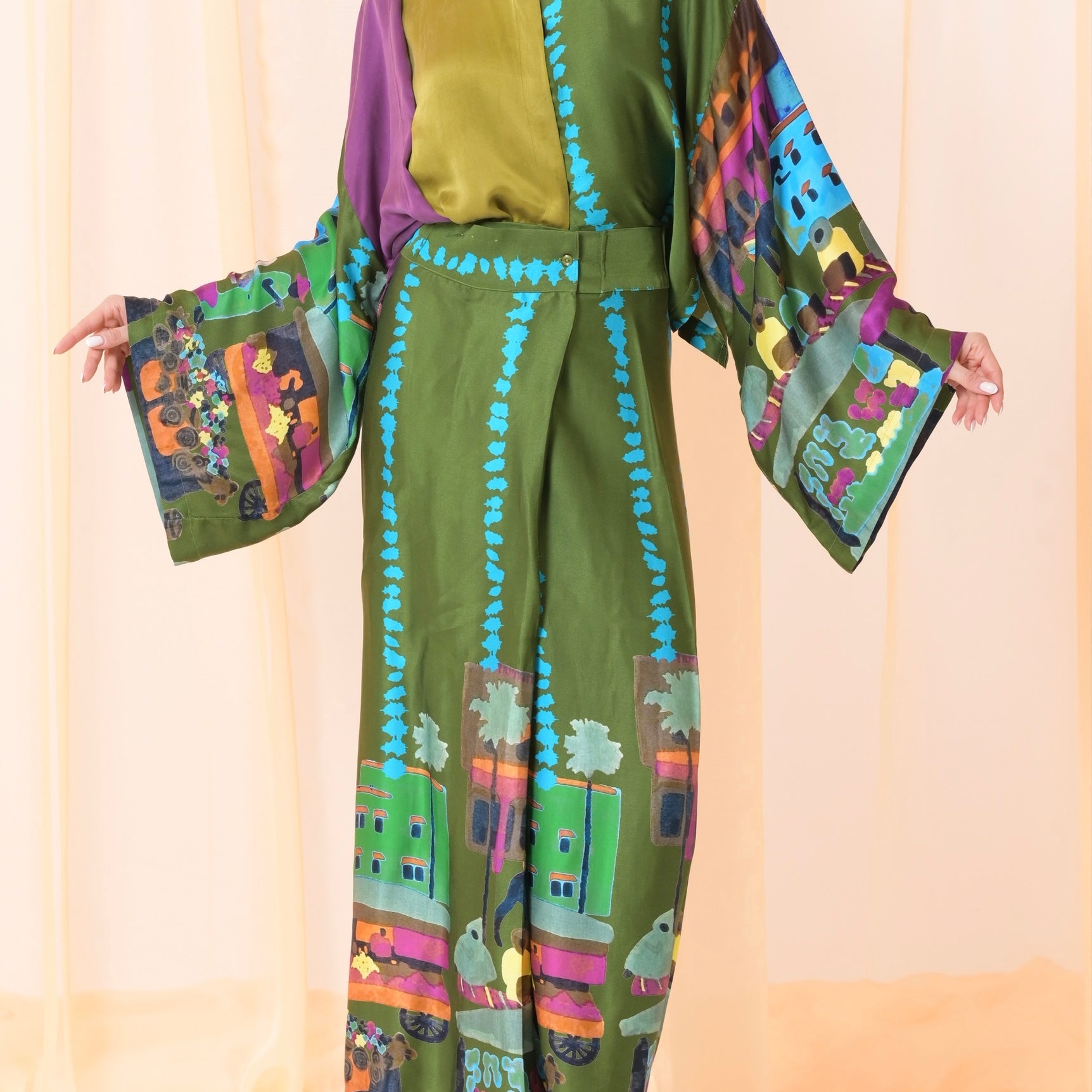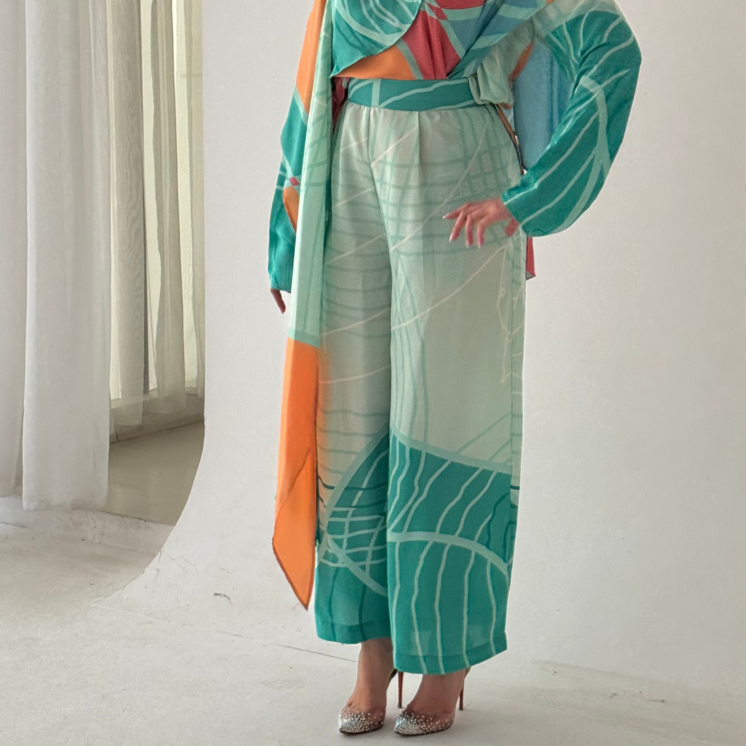 Green silk pants set