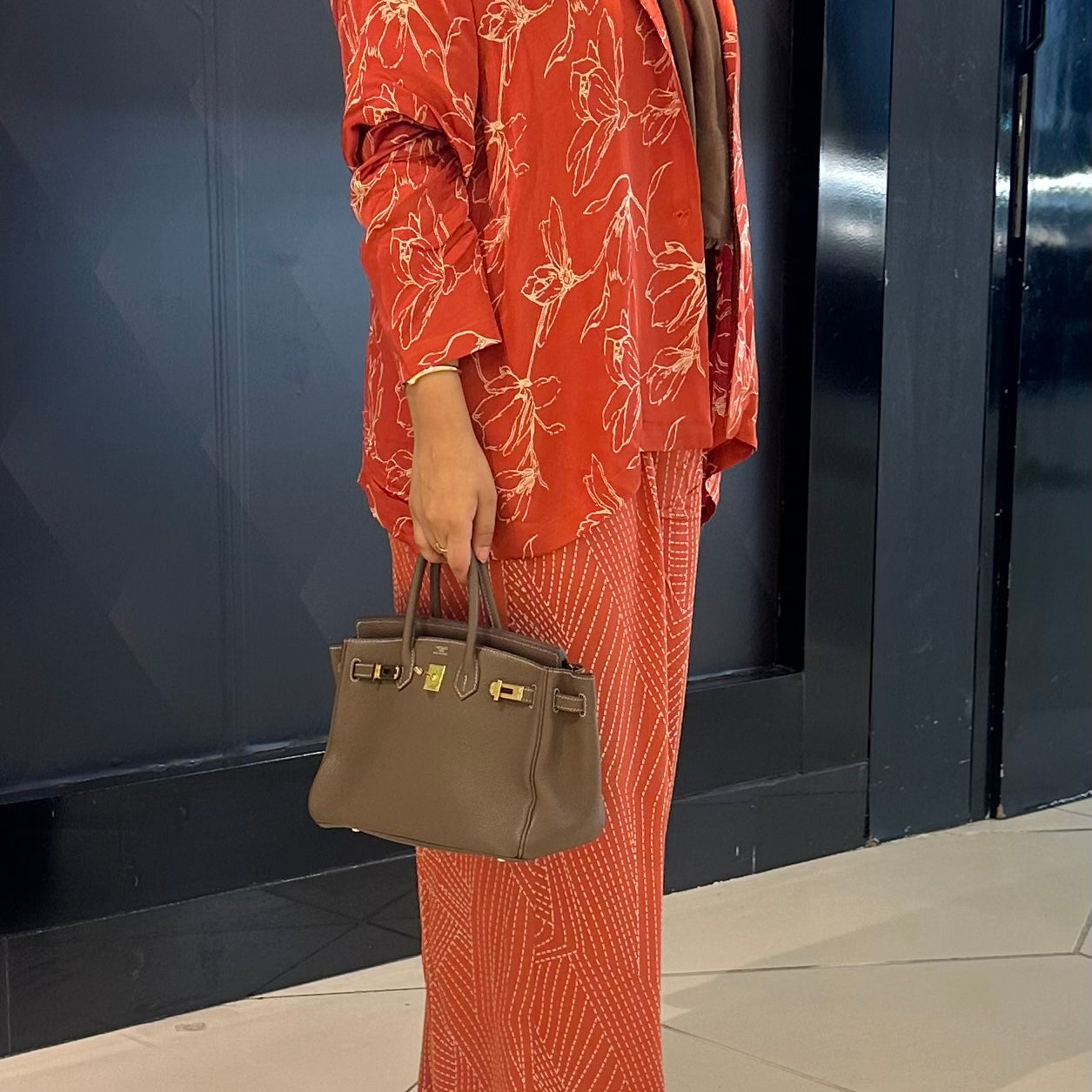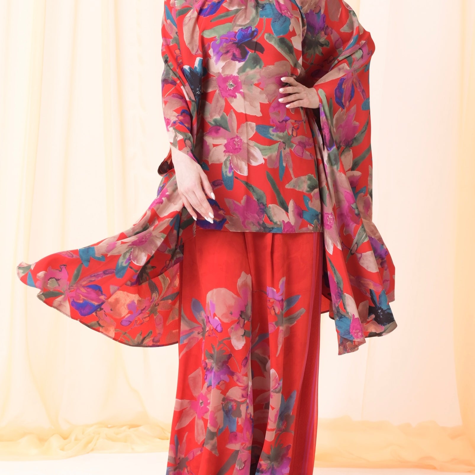 Silk floral red pants set
