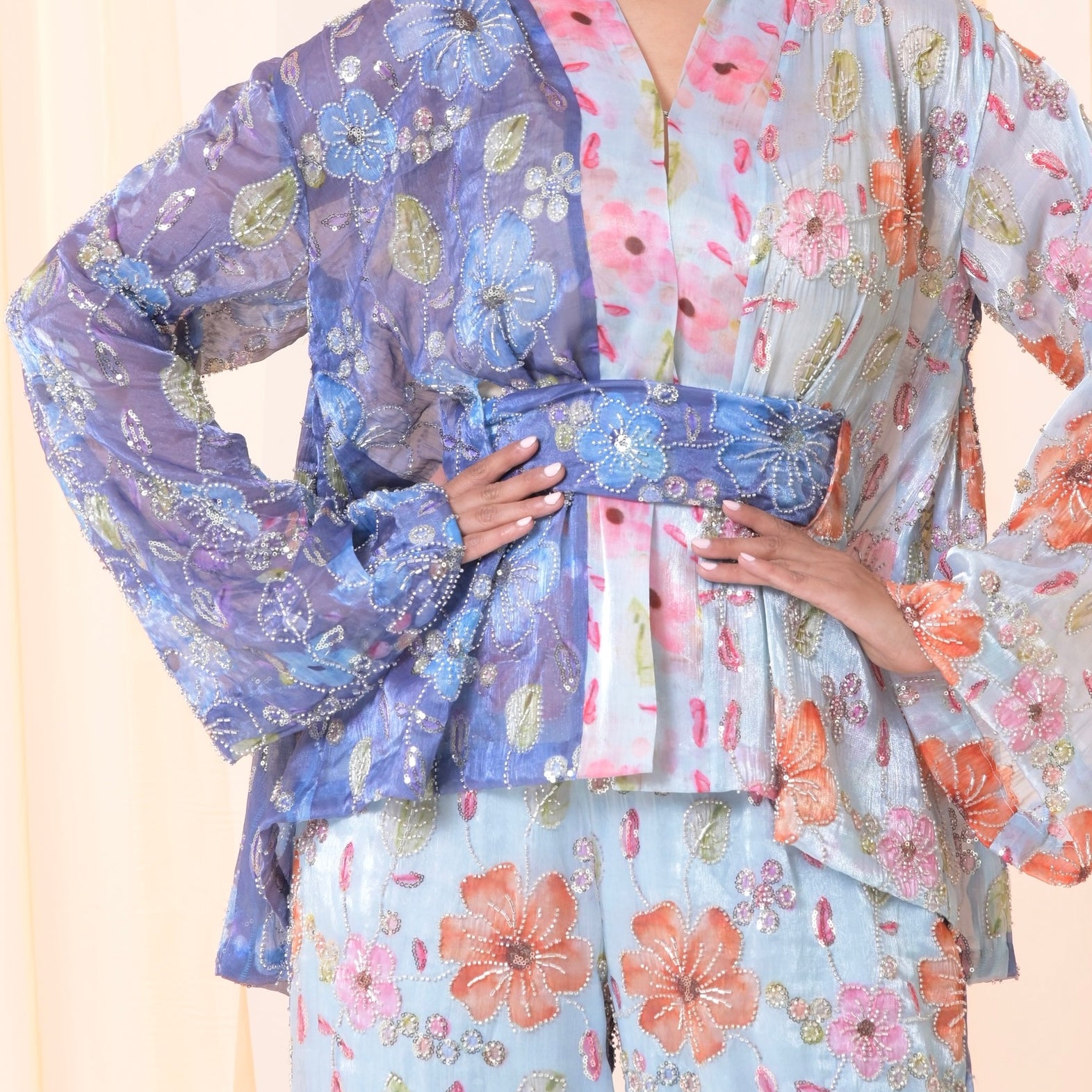 Hand painted organza silk set