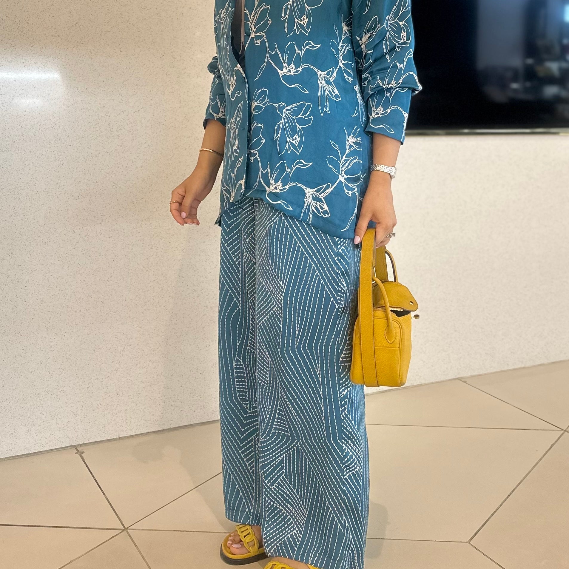 Blue silk pants set