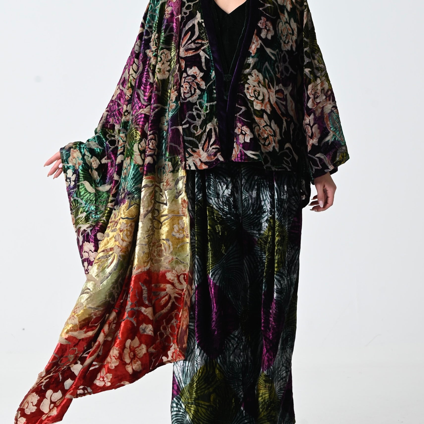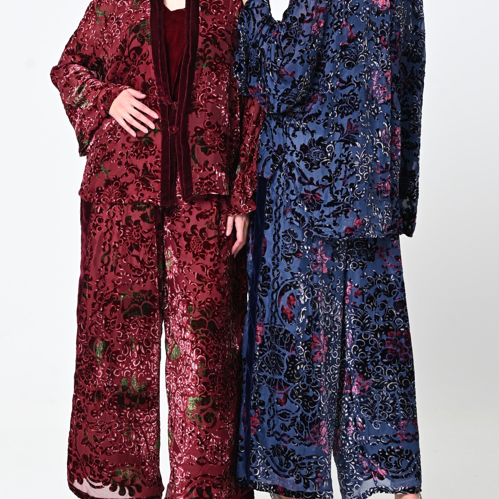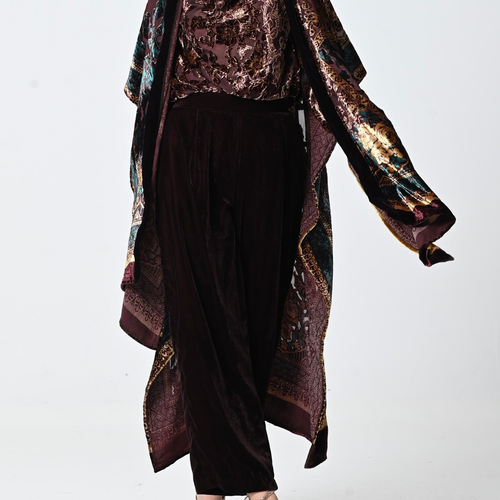 Chiffon Velvet Jacket Set