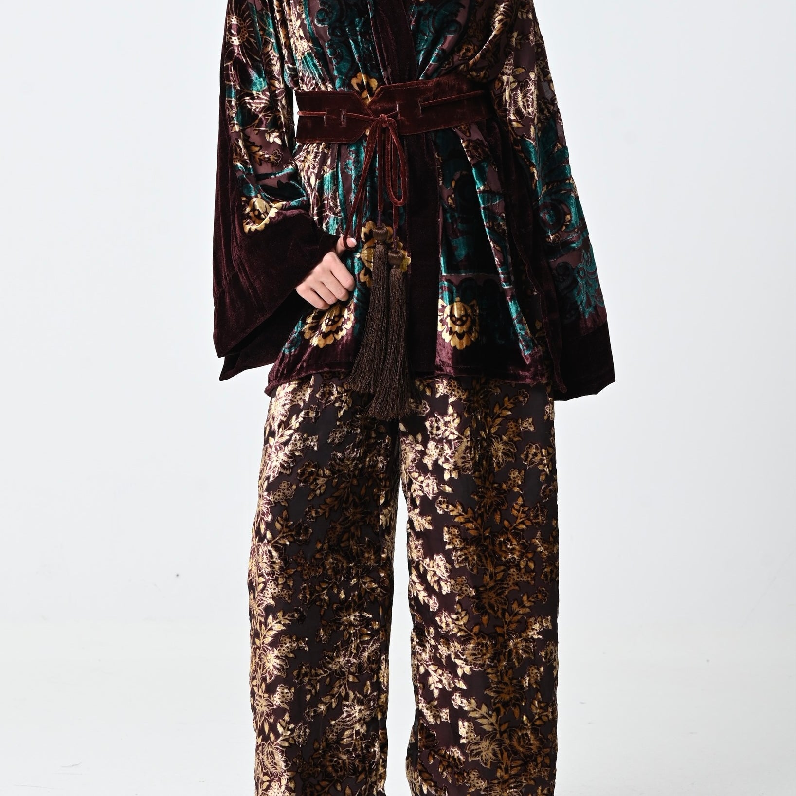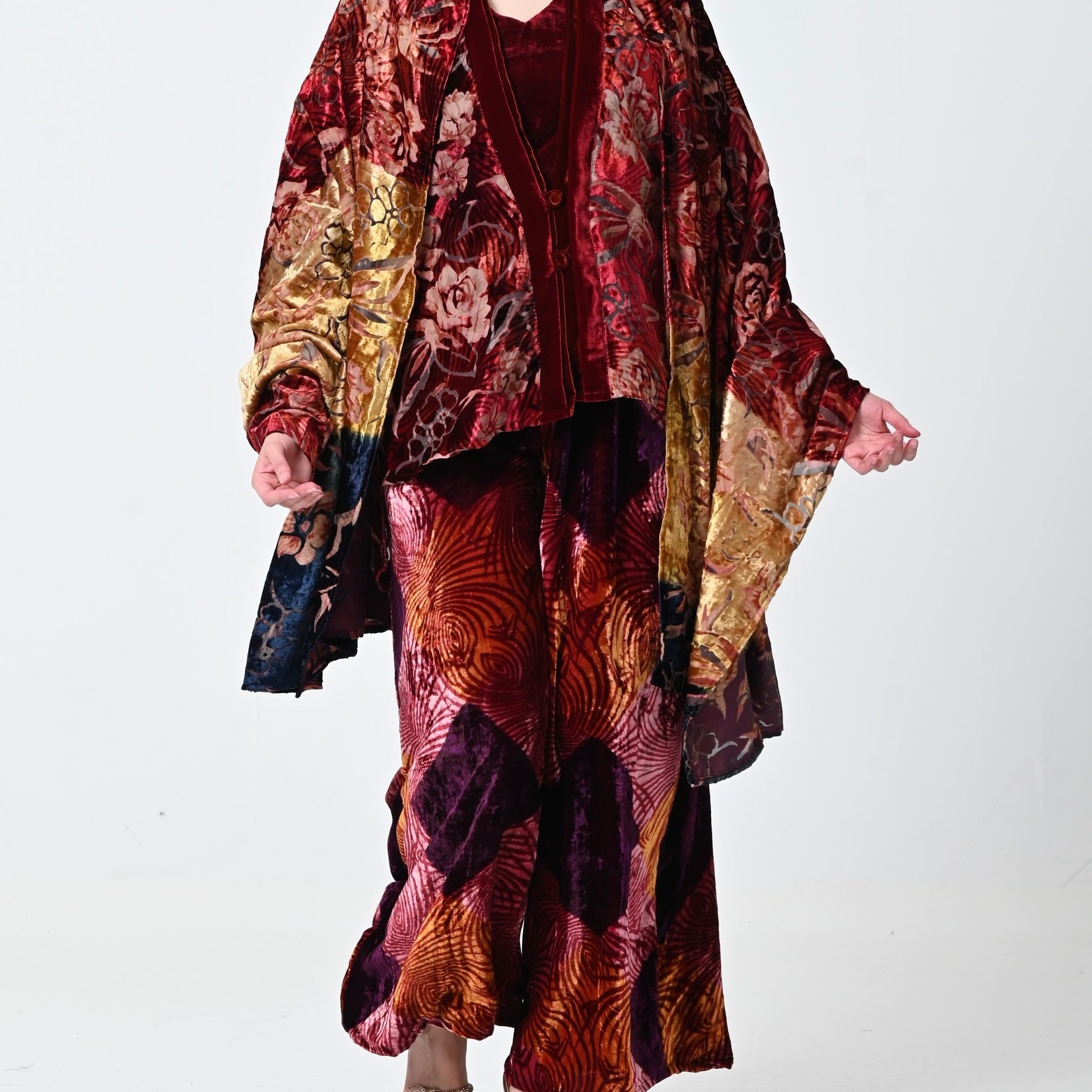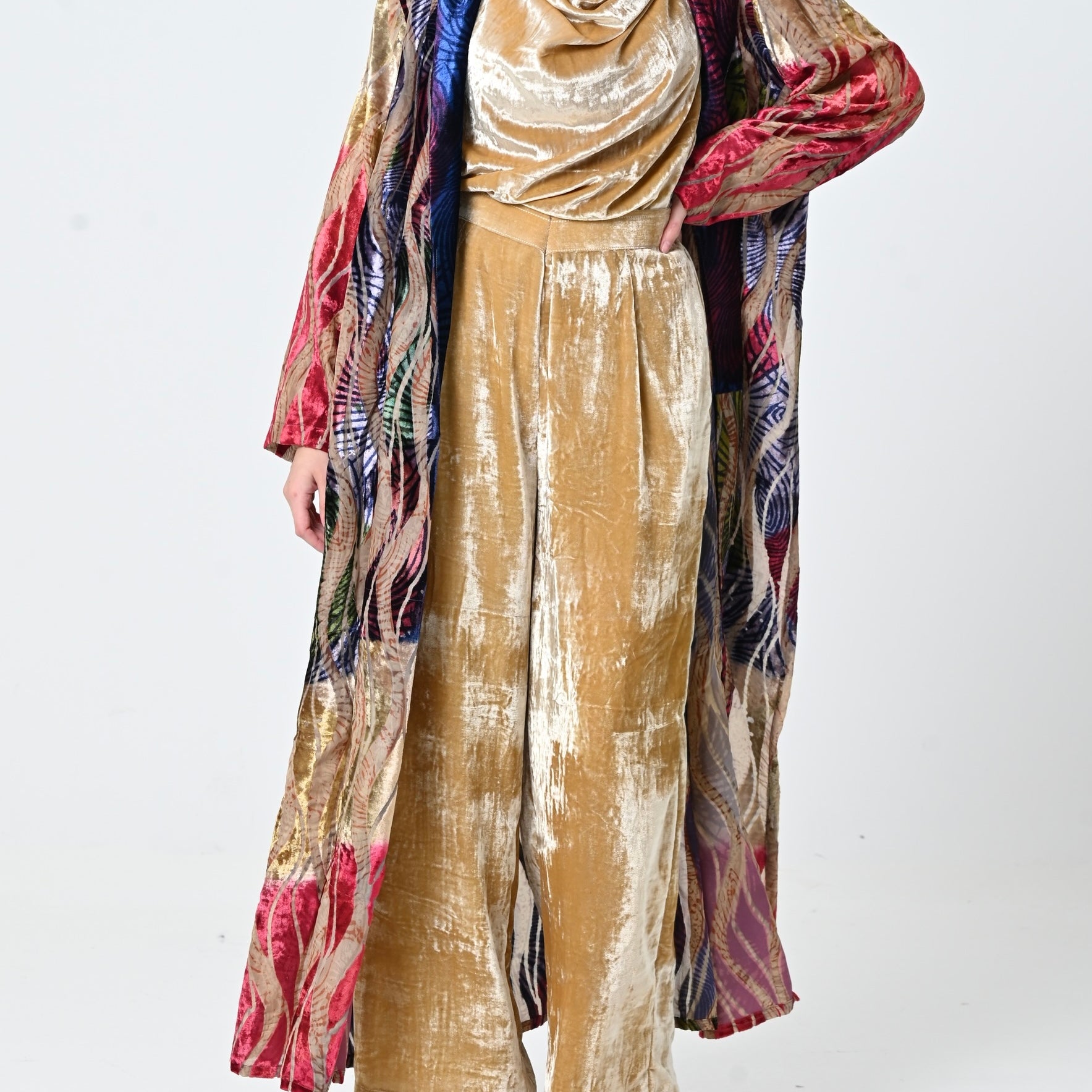 Chiffon Velvet Jacket Set