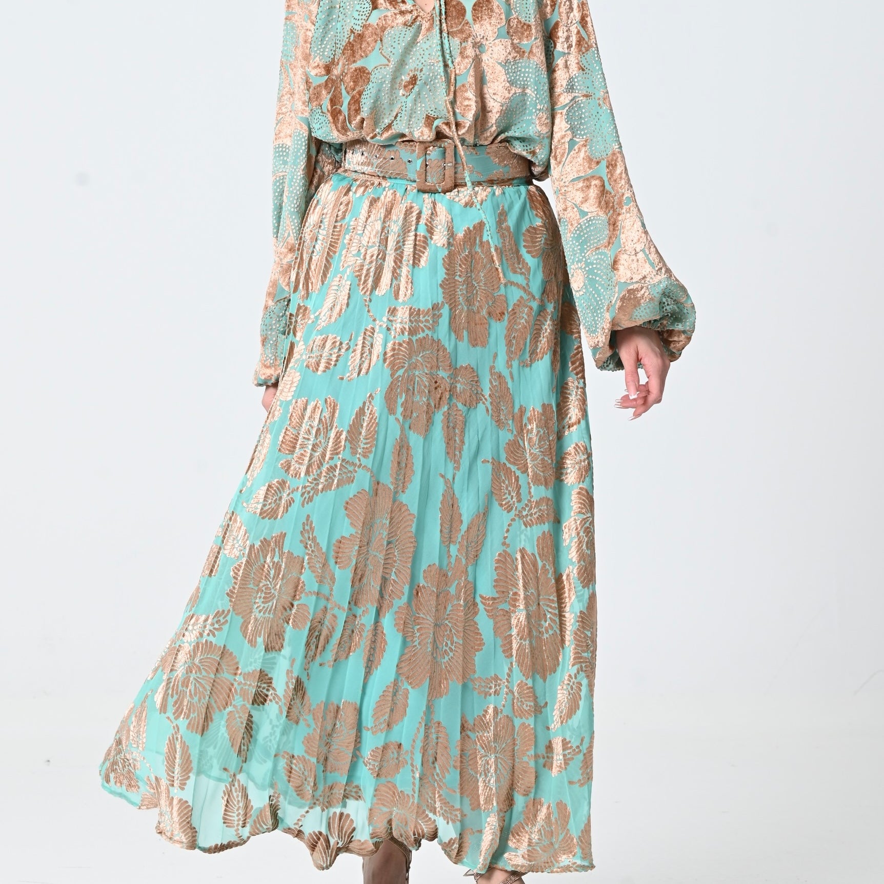 Mint Green Velvet Chiffon Skirt Set