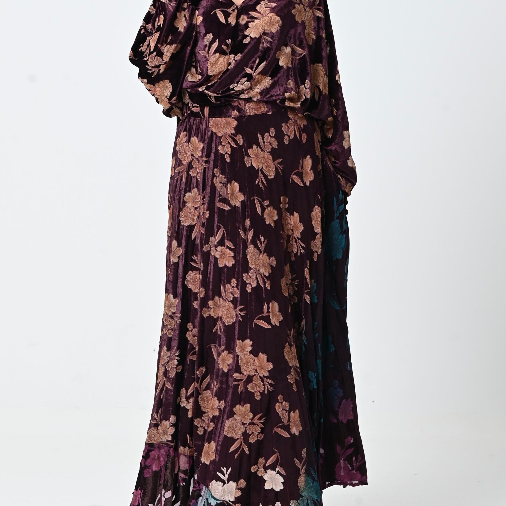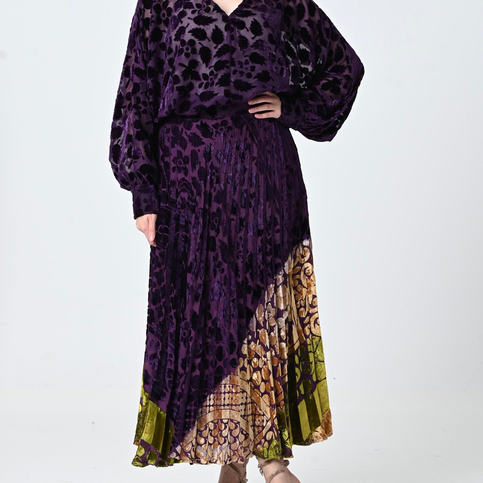 Purple Velvet Chiffon Skirt Set