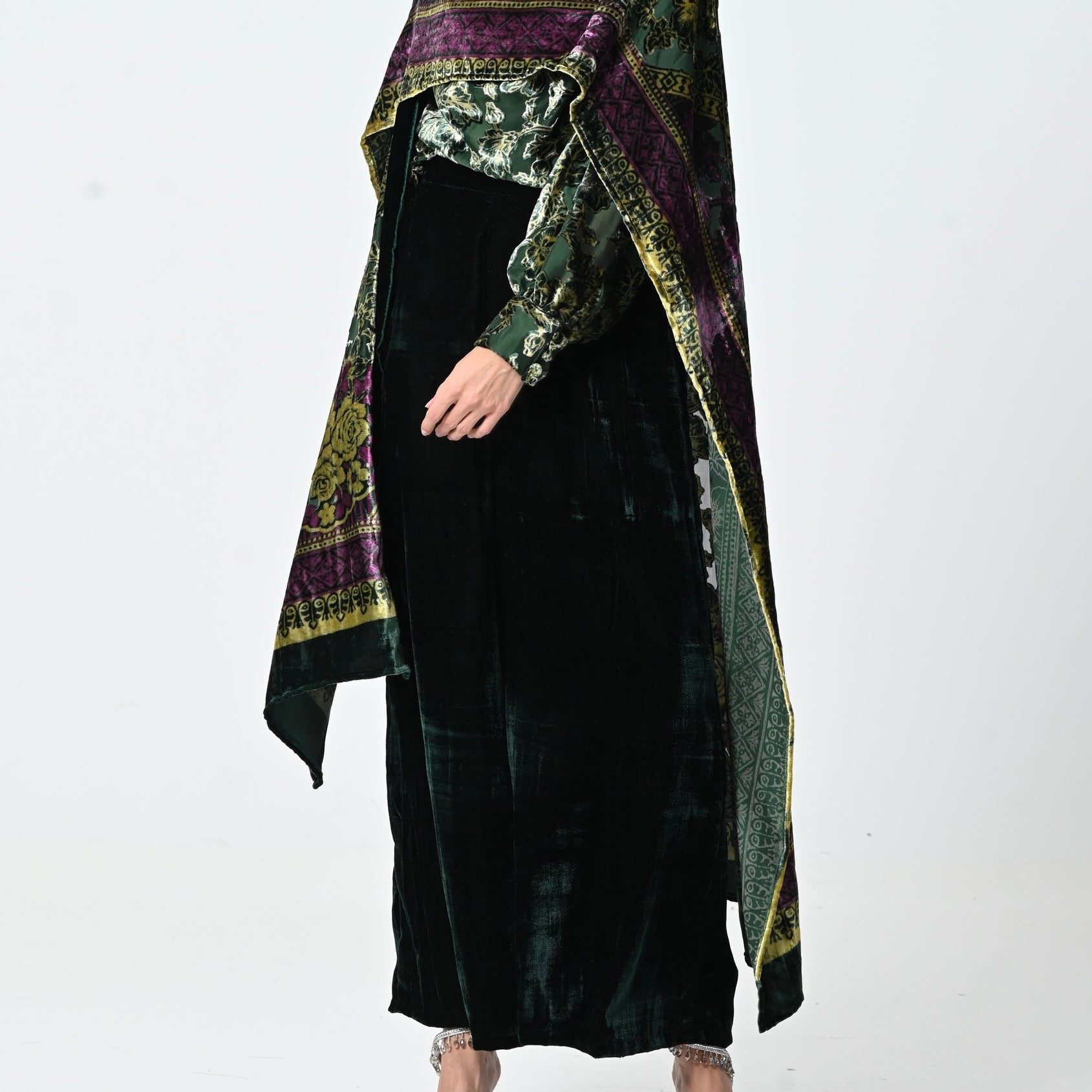 Green Velvet Chiffon Shawl Set