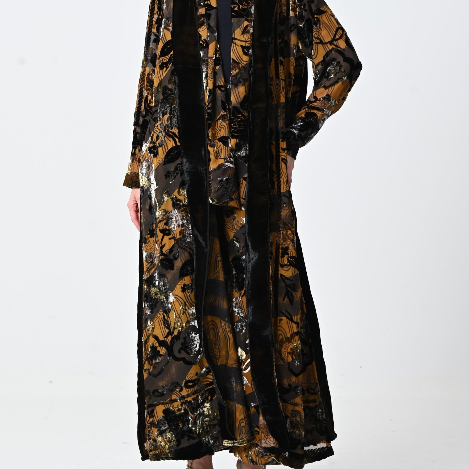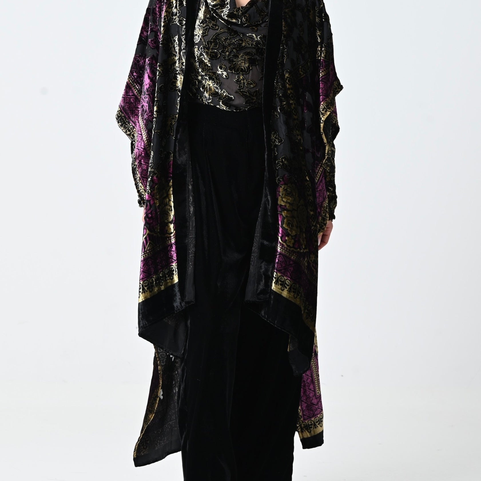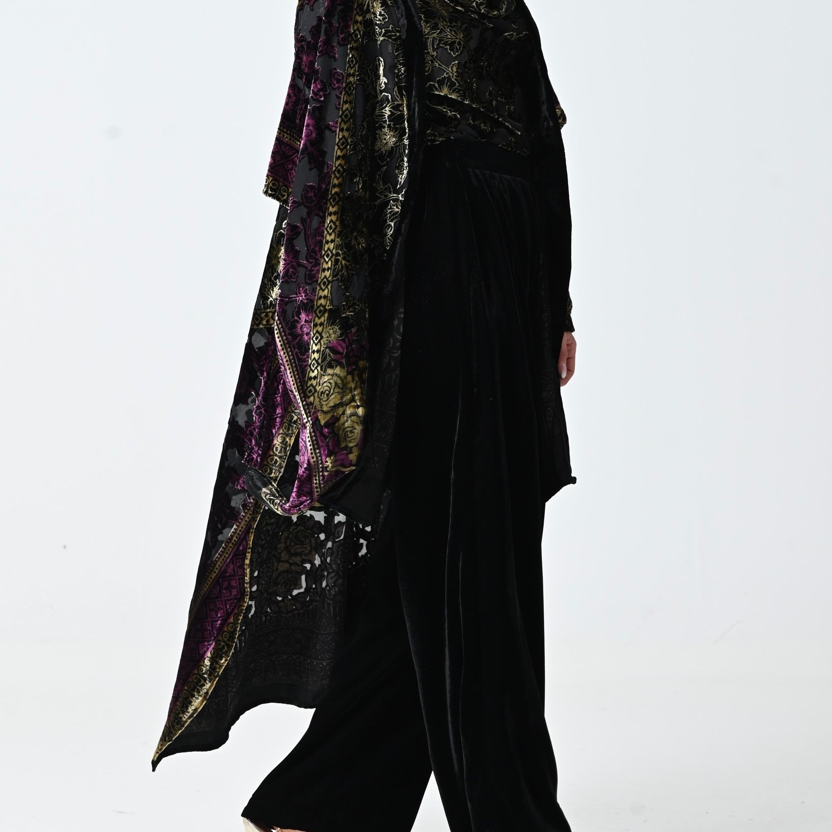 Black Velvet Chiffon Shawl Set