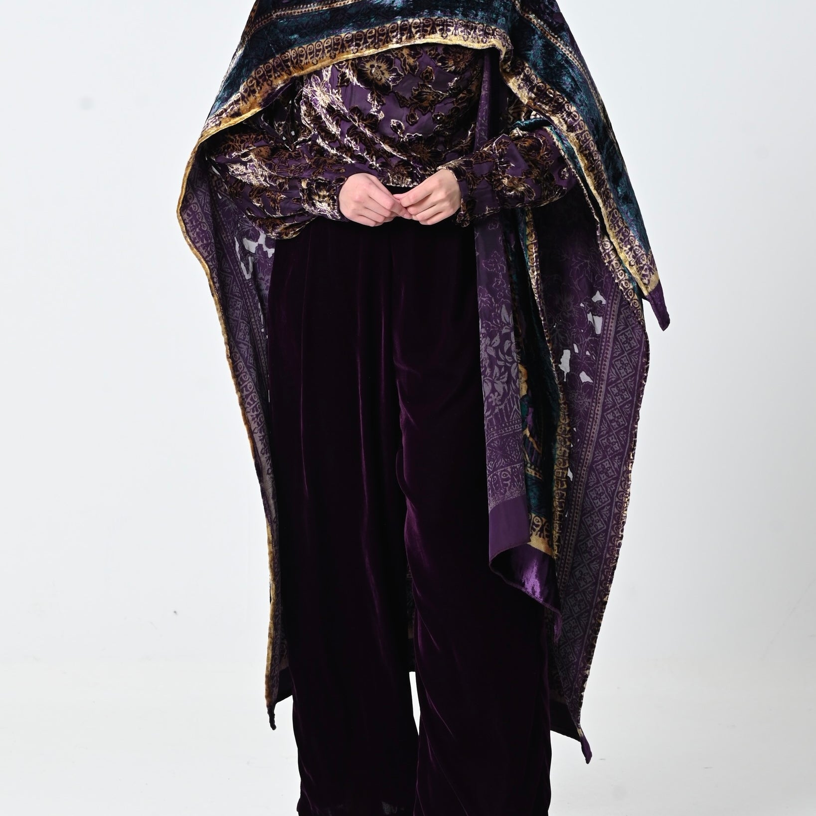 Purple Velvet Chiffon Shawl Set