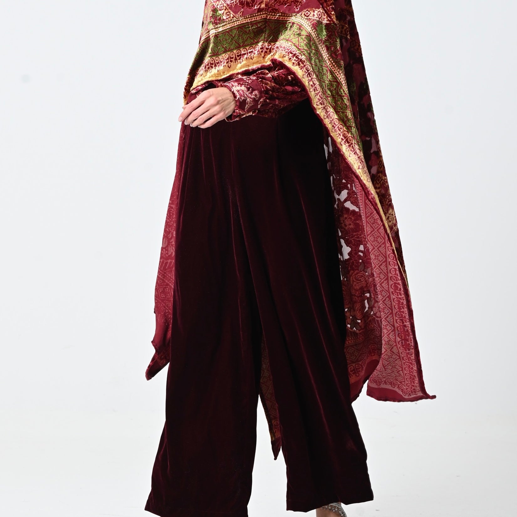 Maroon Velvet Chiffon Shawl Set