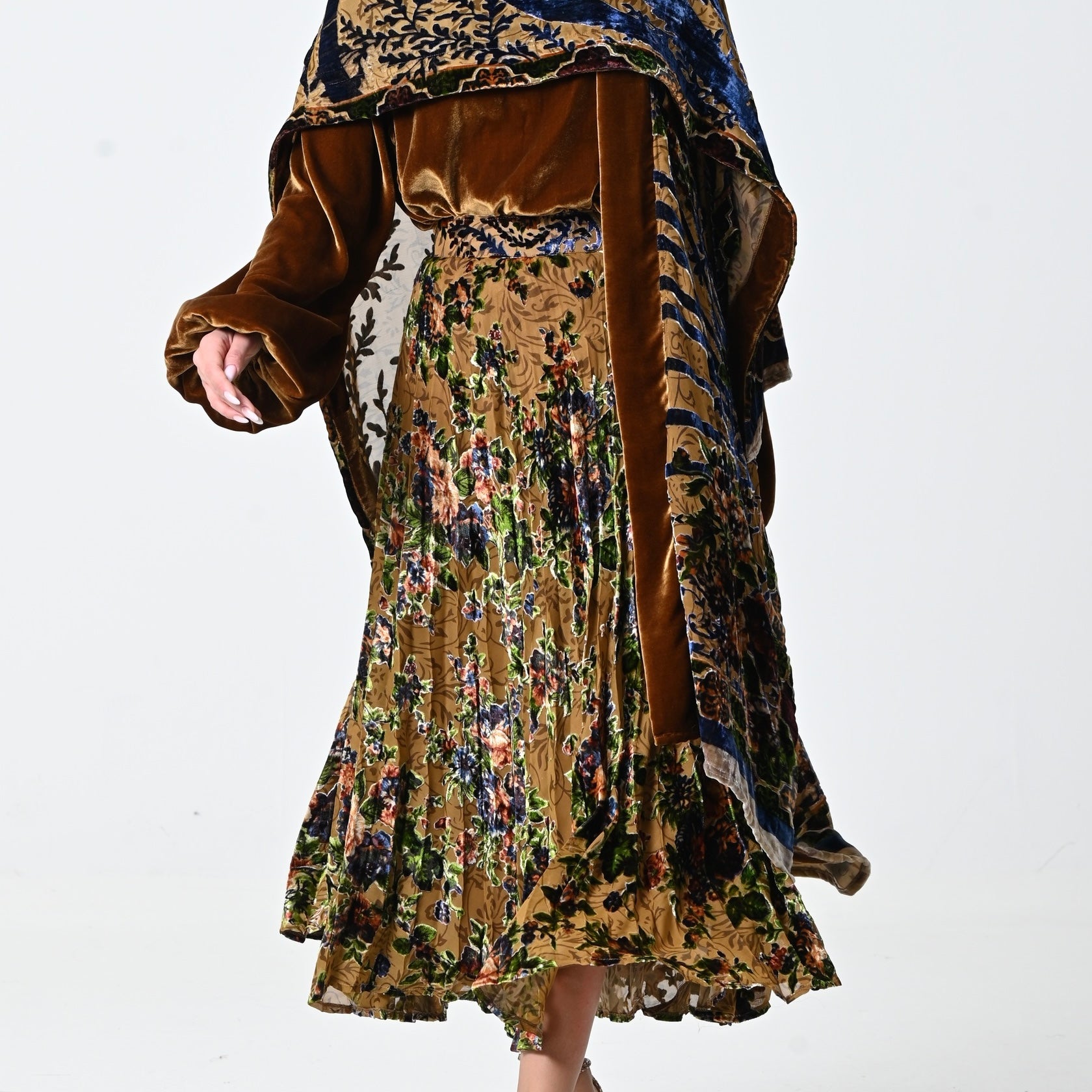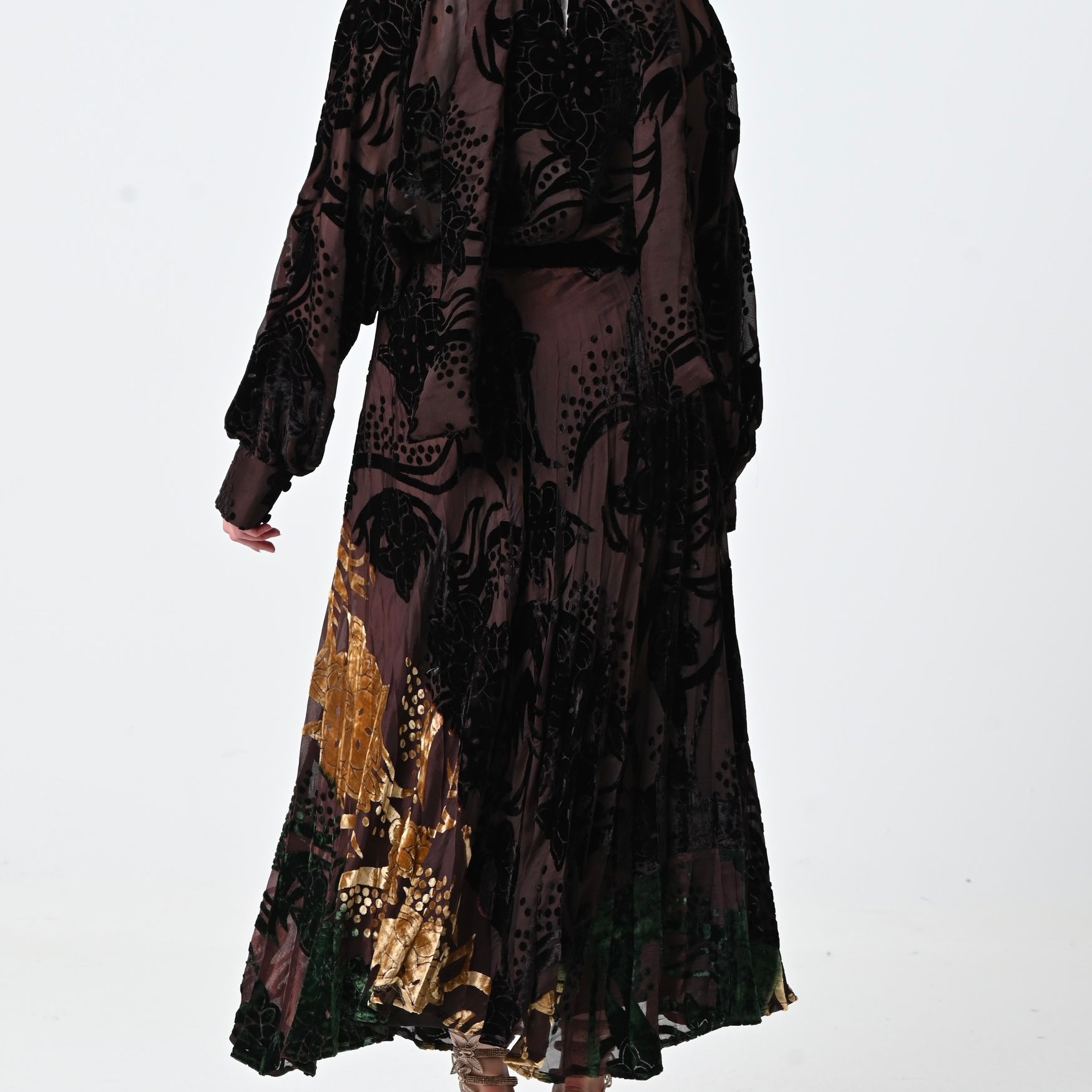 Brown Velvet Chiffon Skirt Set