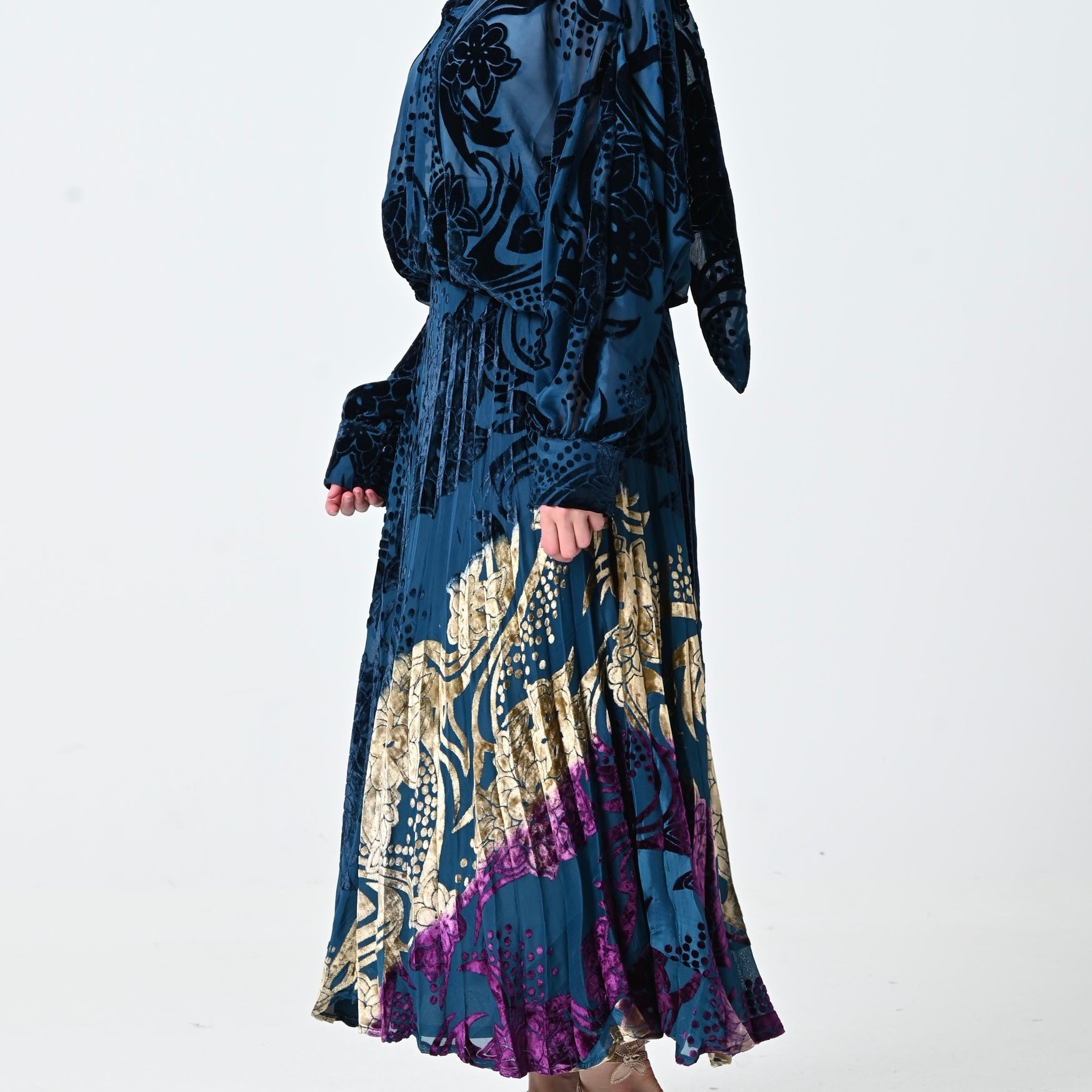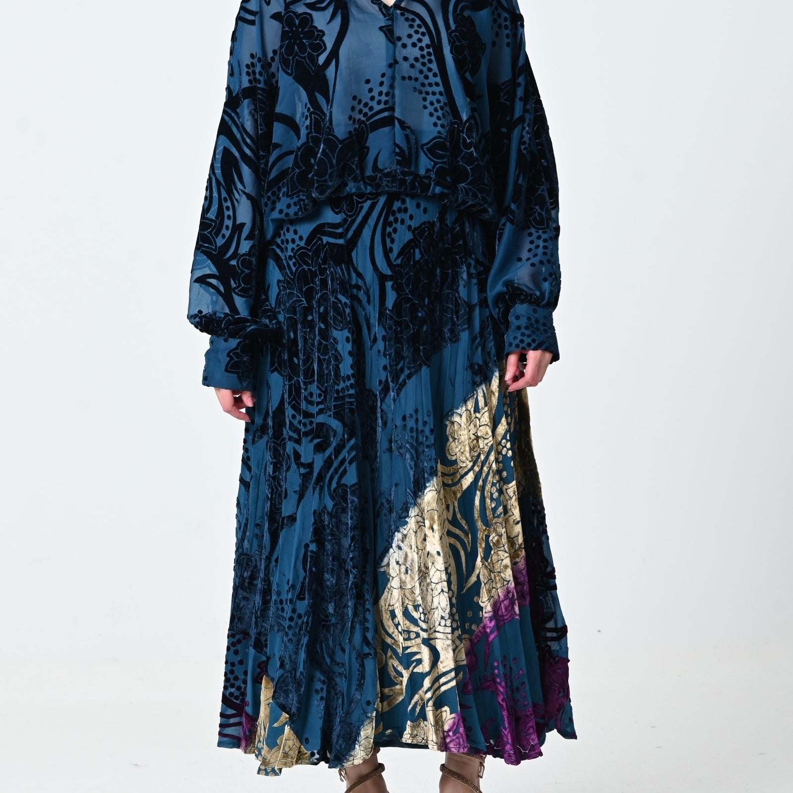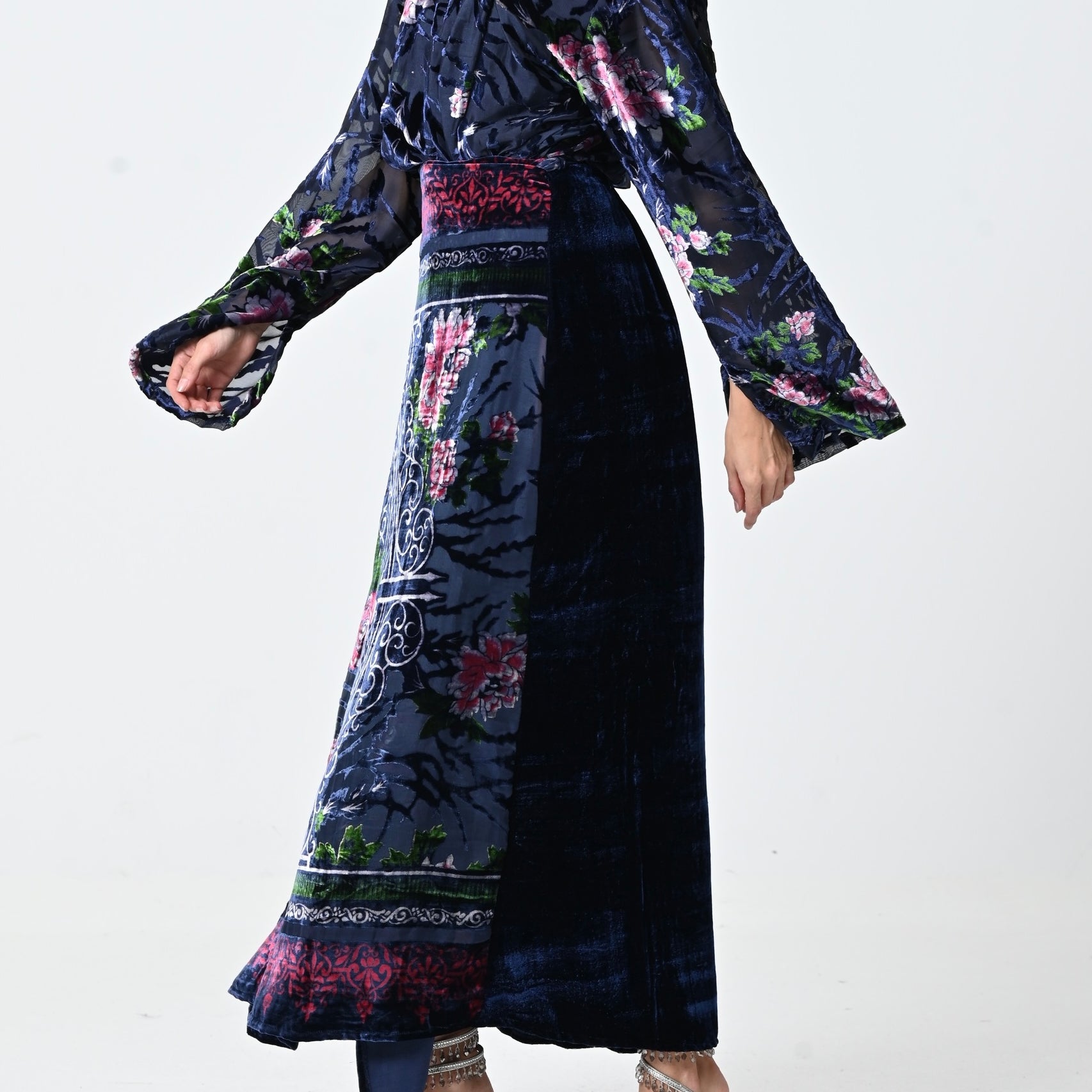 Blue Velvet Chiffon Skirt Set