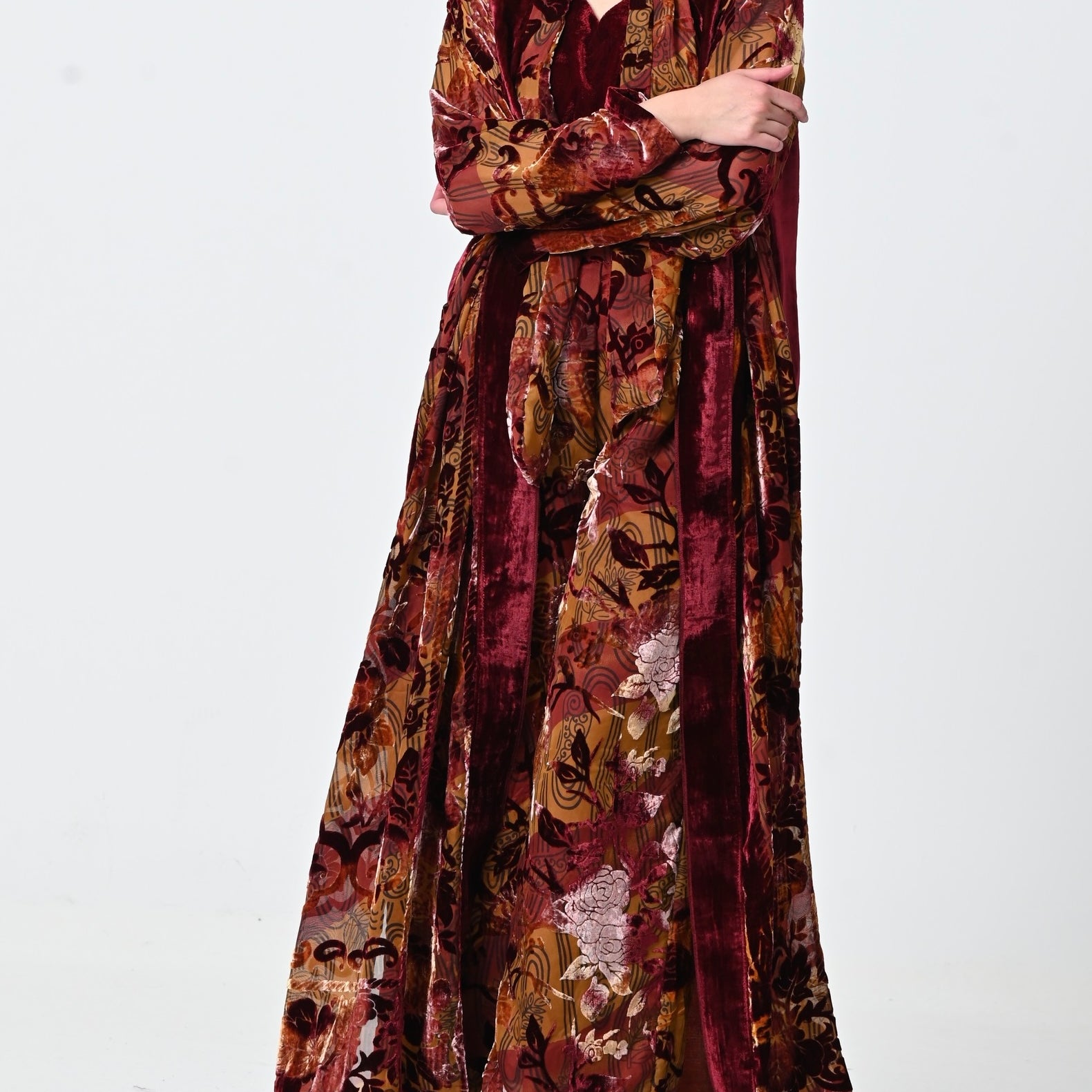 Floral Velvet Chiffon Shawl Set