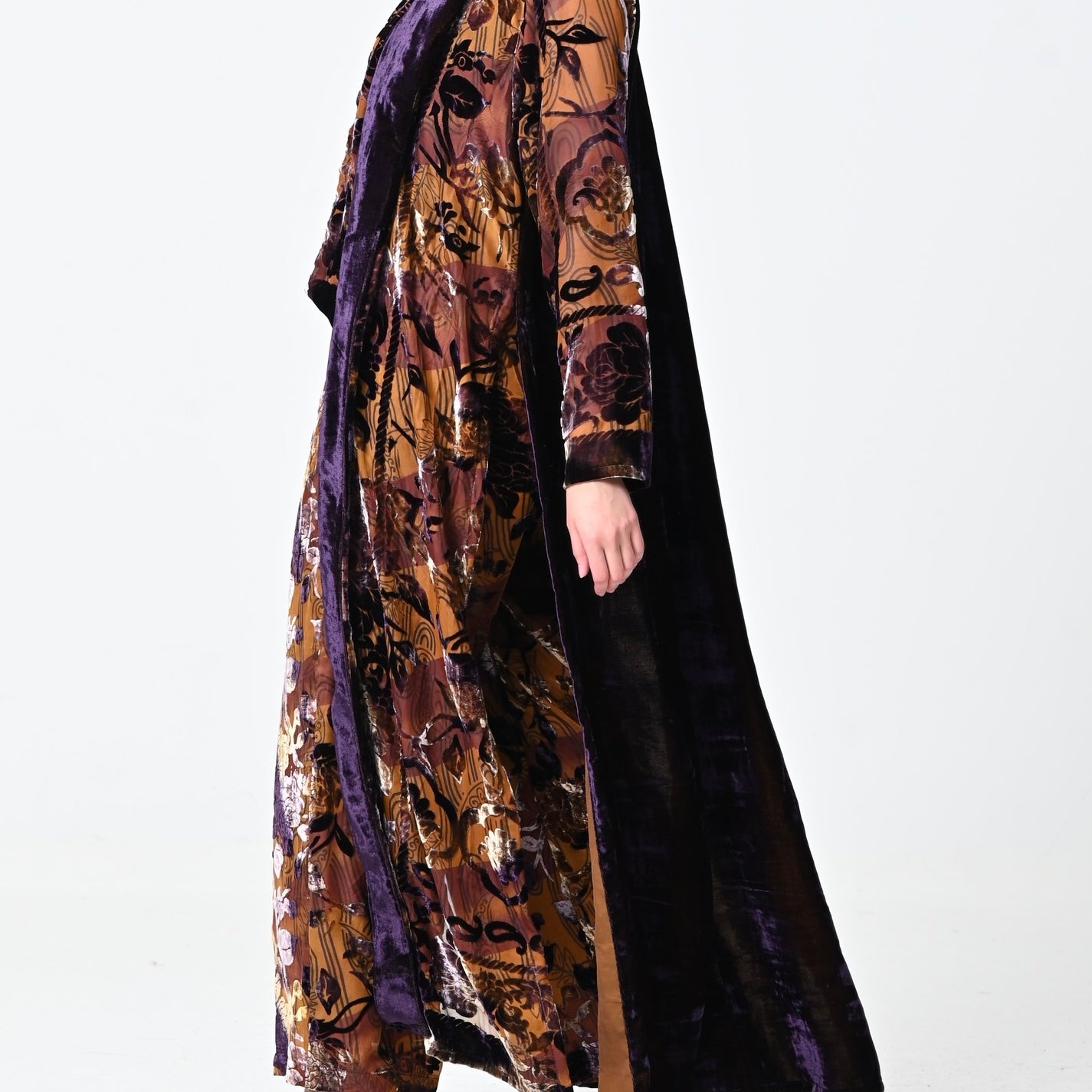 Brown Velvet Chiffon Shawl Set