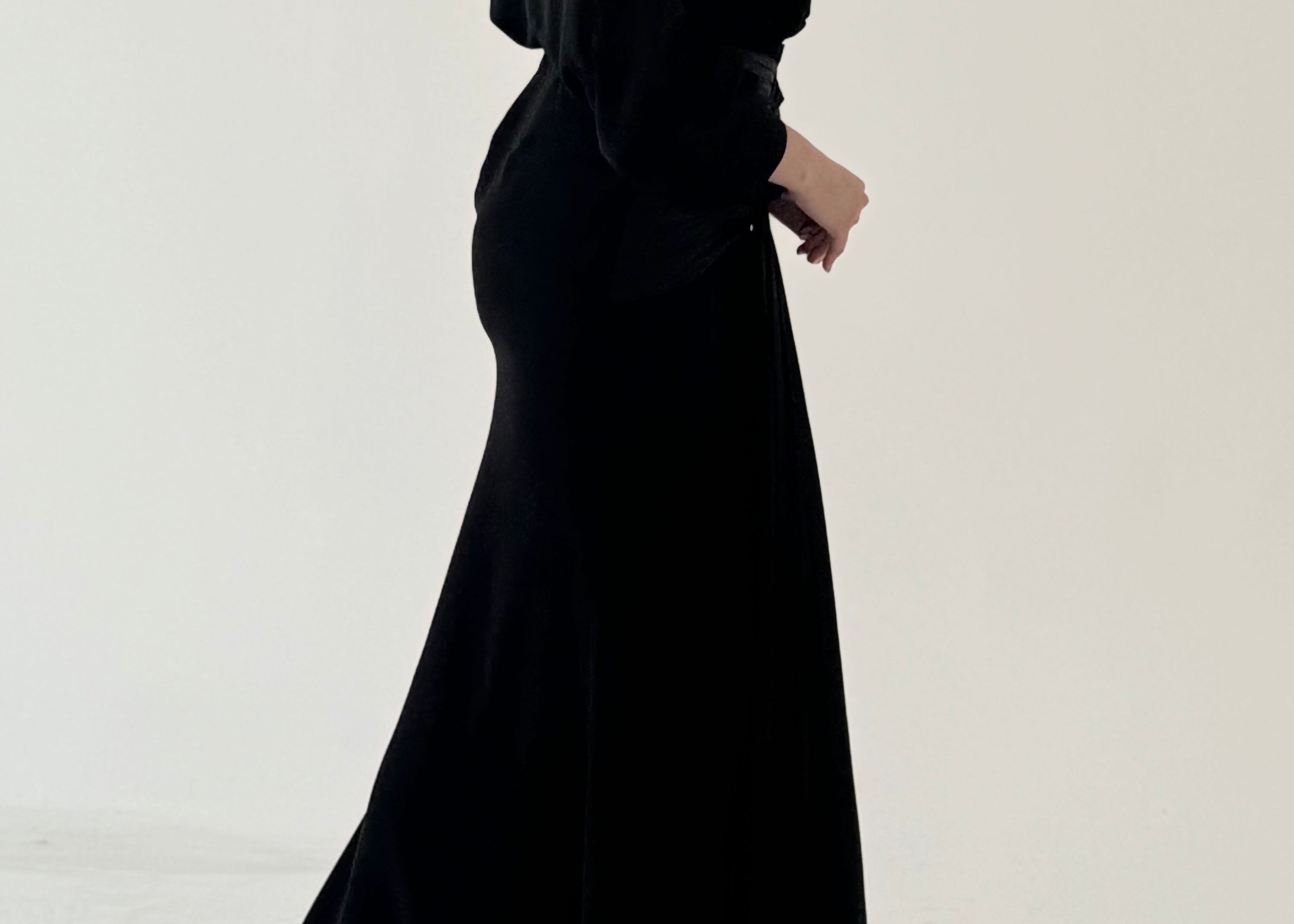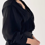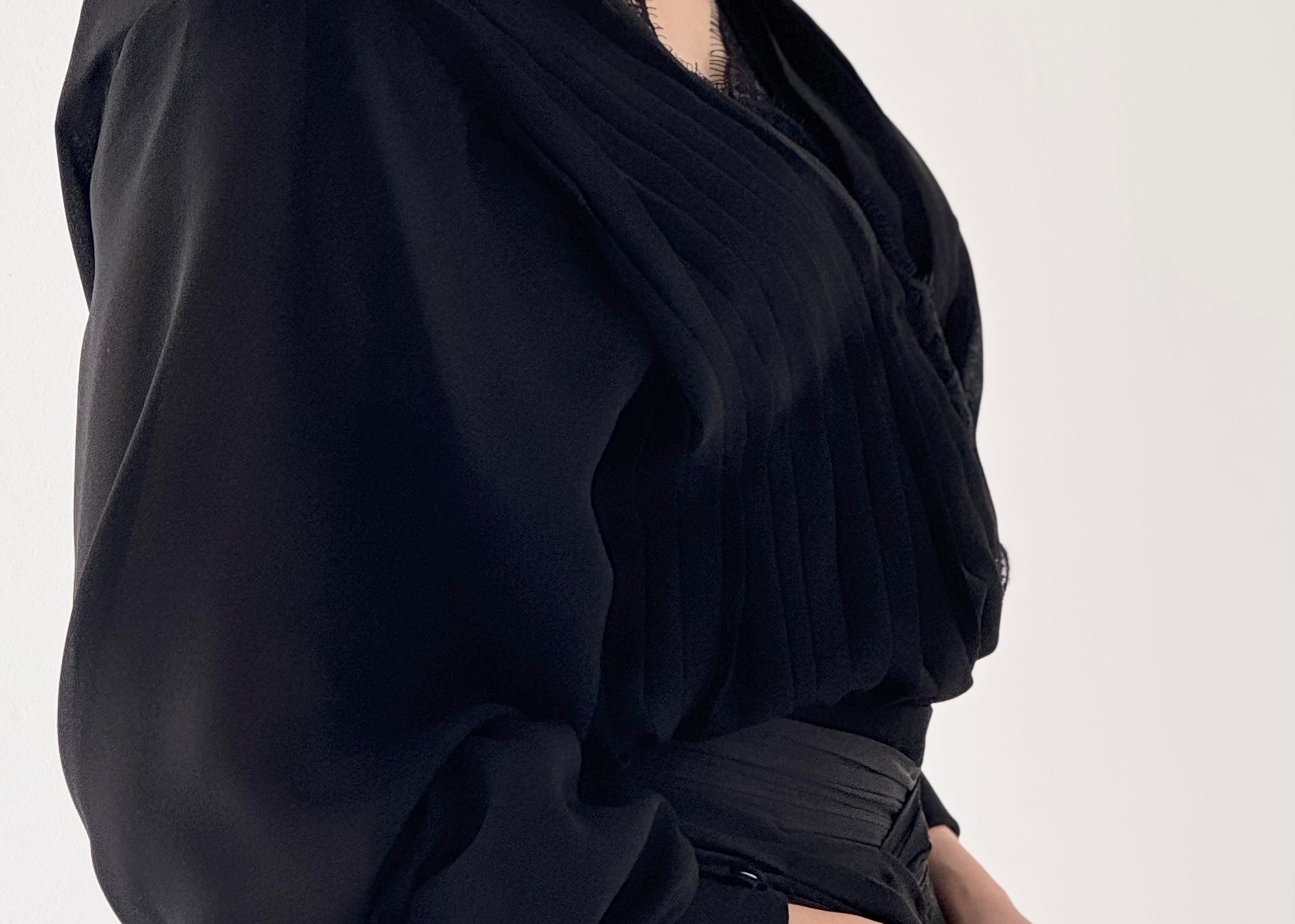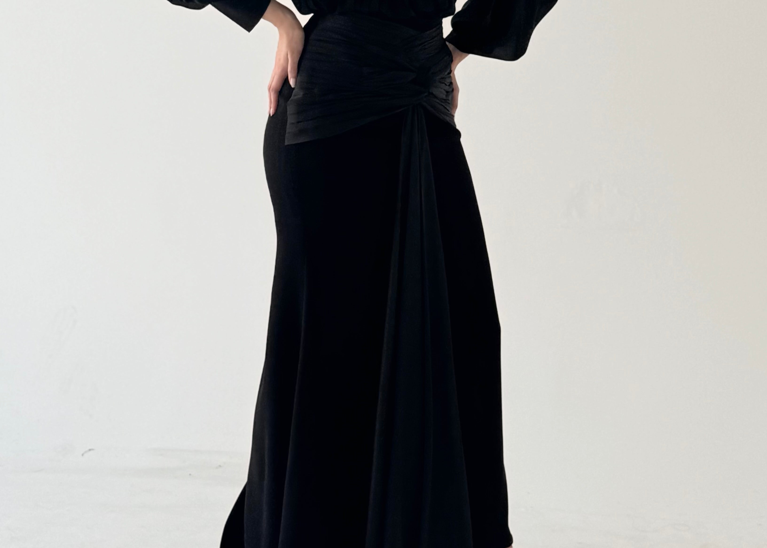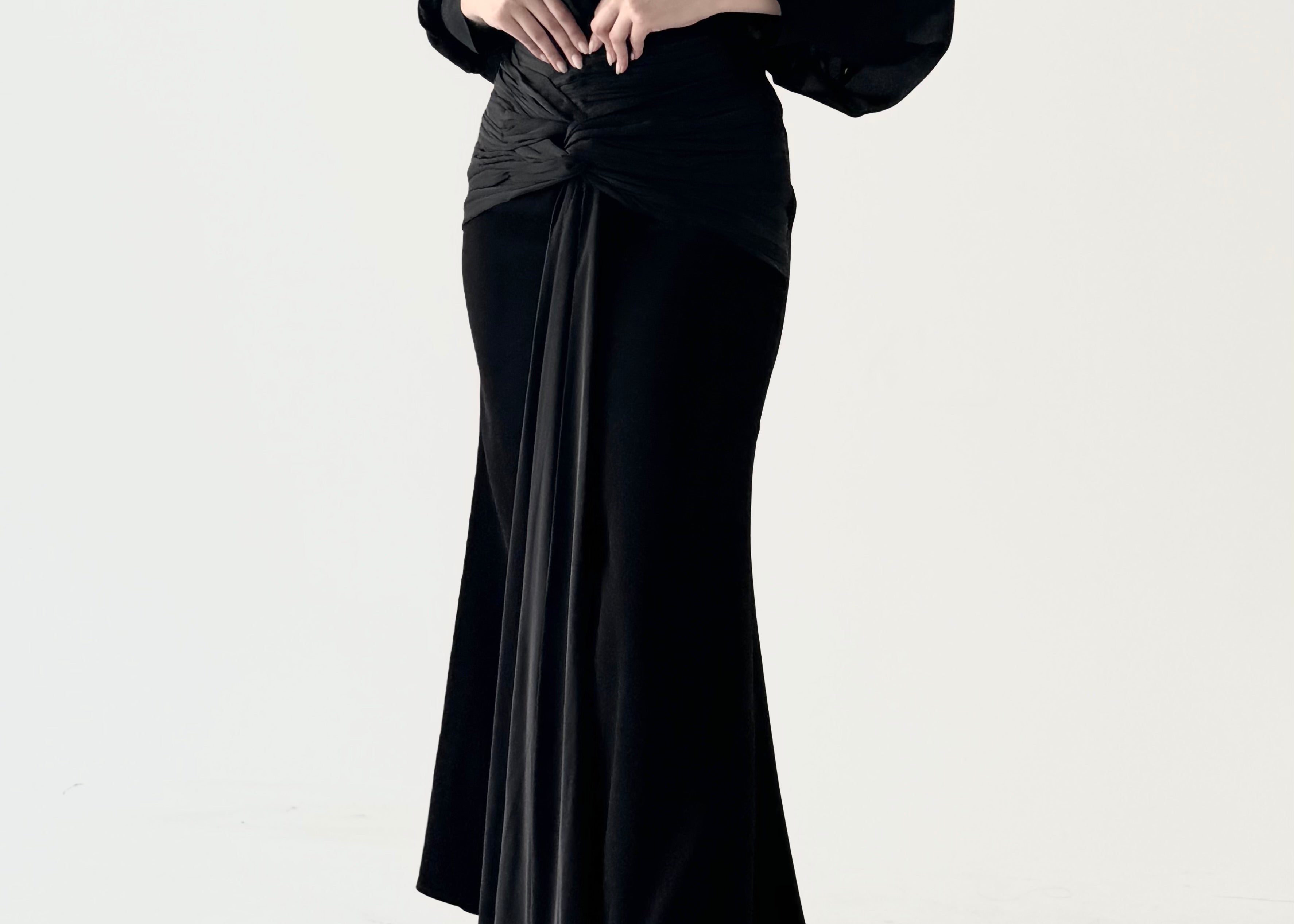 - This is a set of silk chiffon Shirt and crepe black long Skirt.