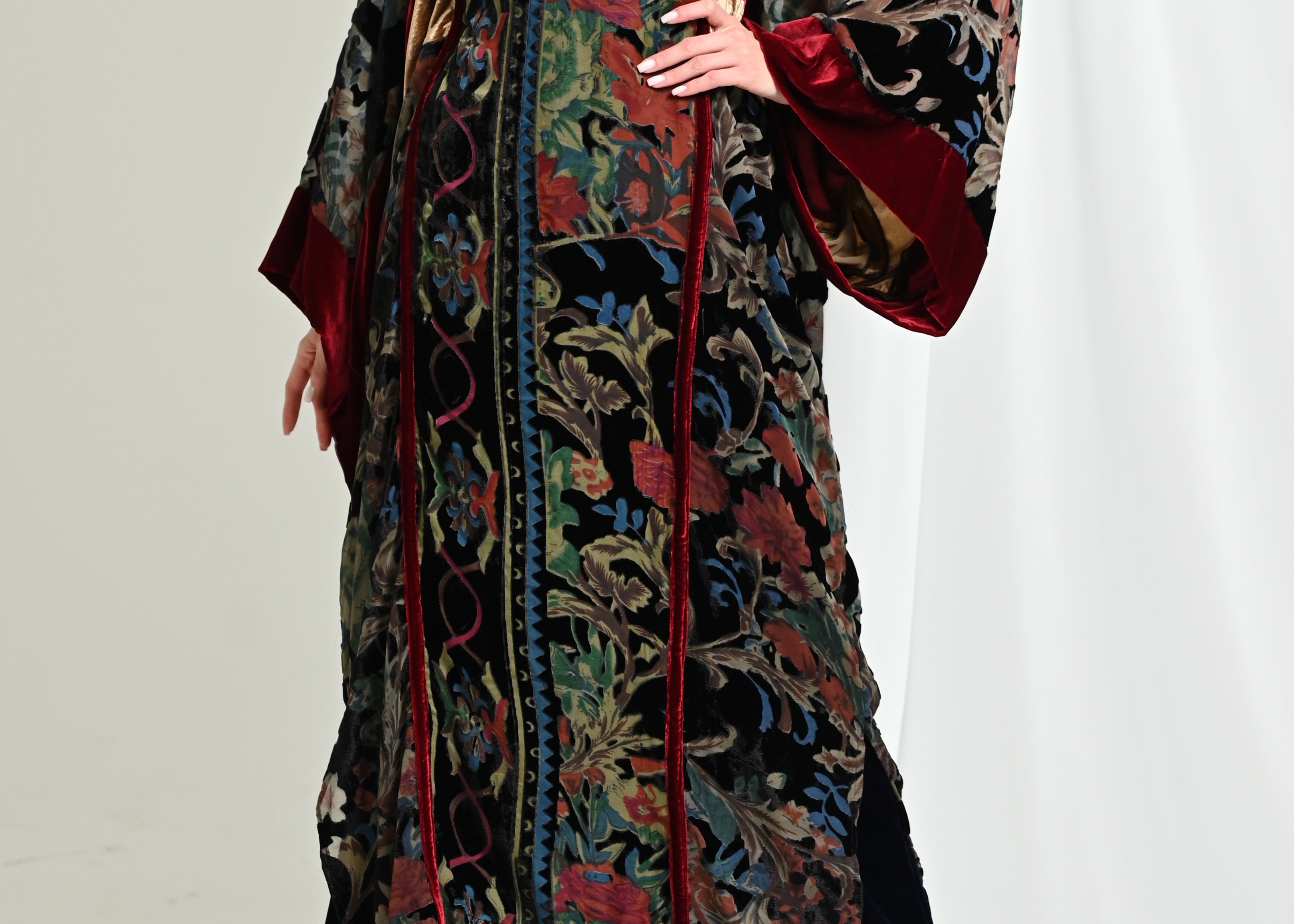 - قفطان من المخمل الحرير المطبوع بنقشه مميزه .