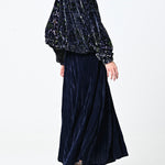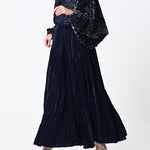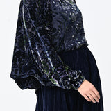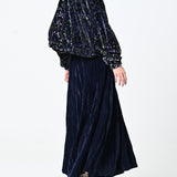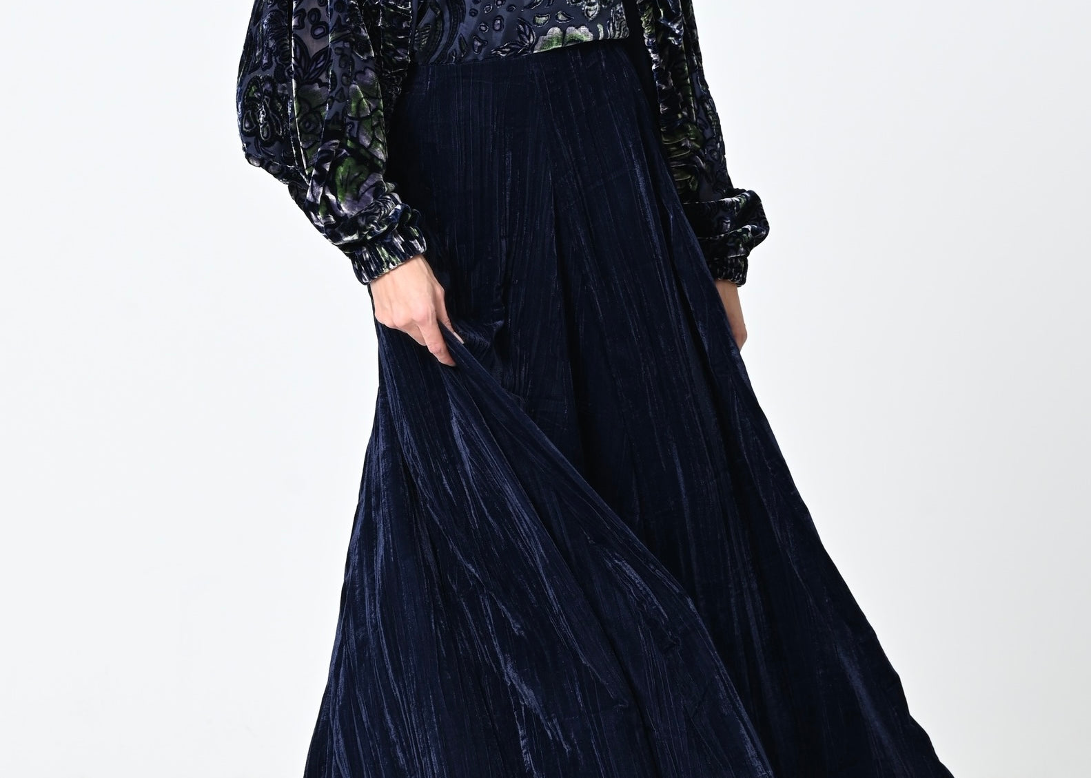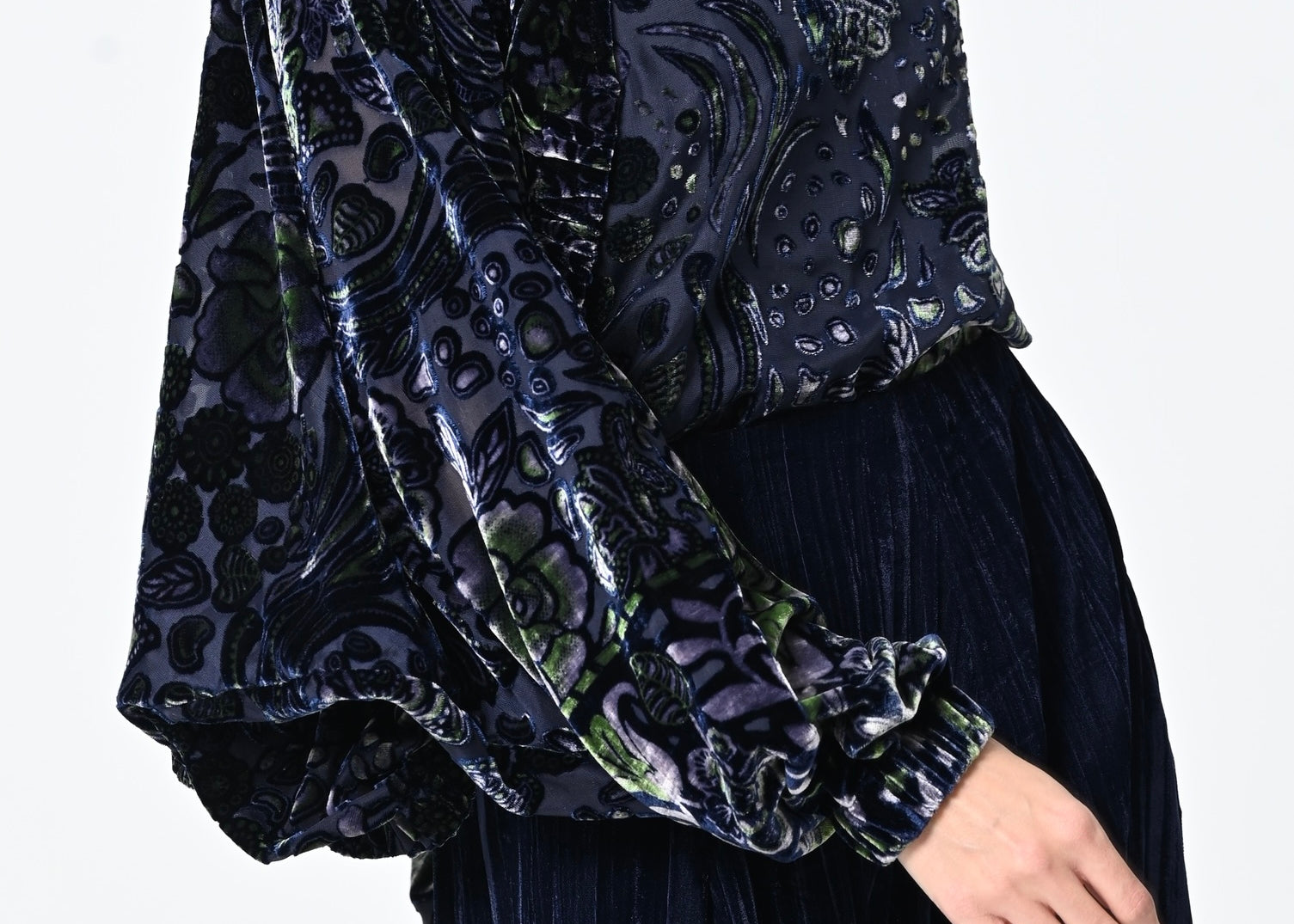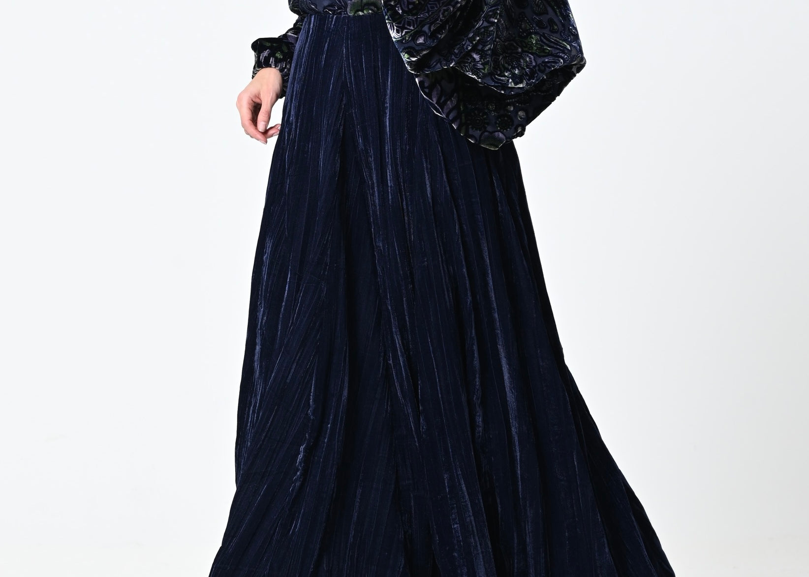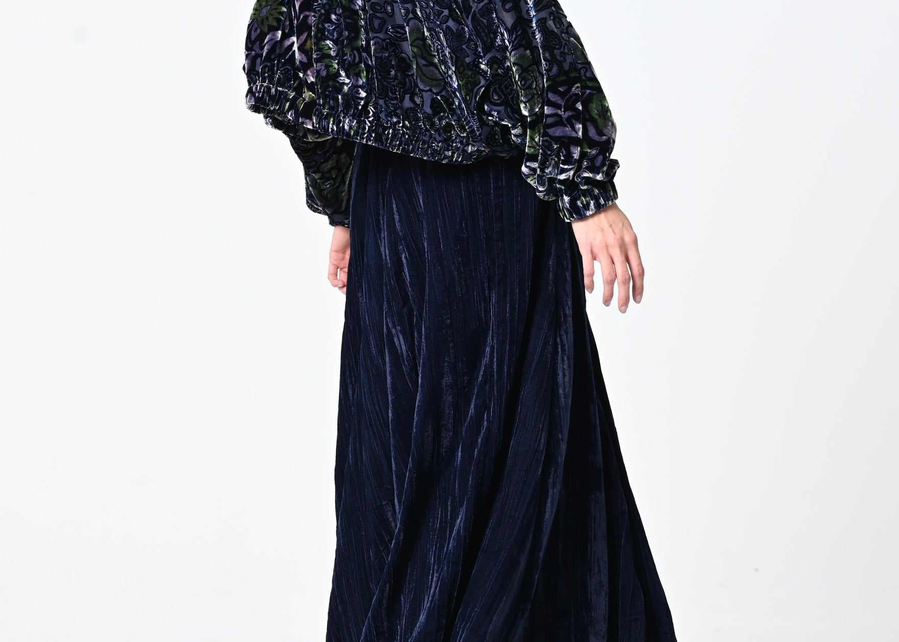 - بلوزه: مخمل وشيفون بقصة عنق مرتفعه
