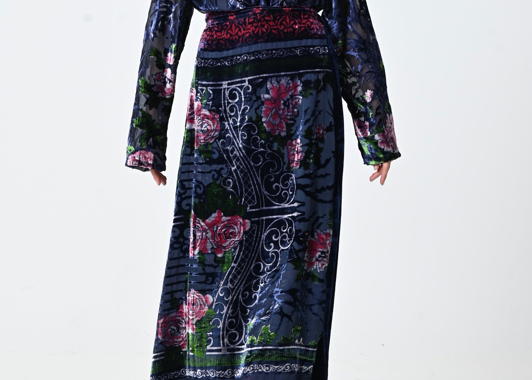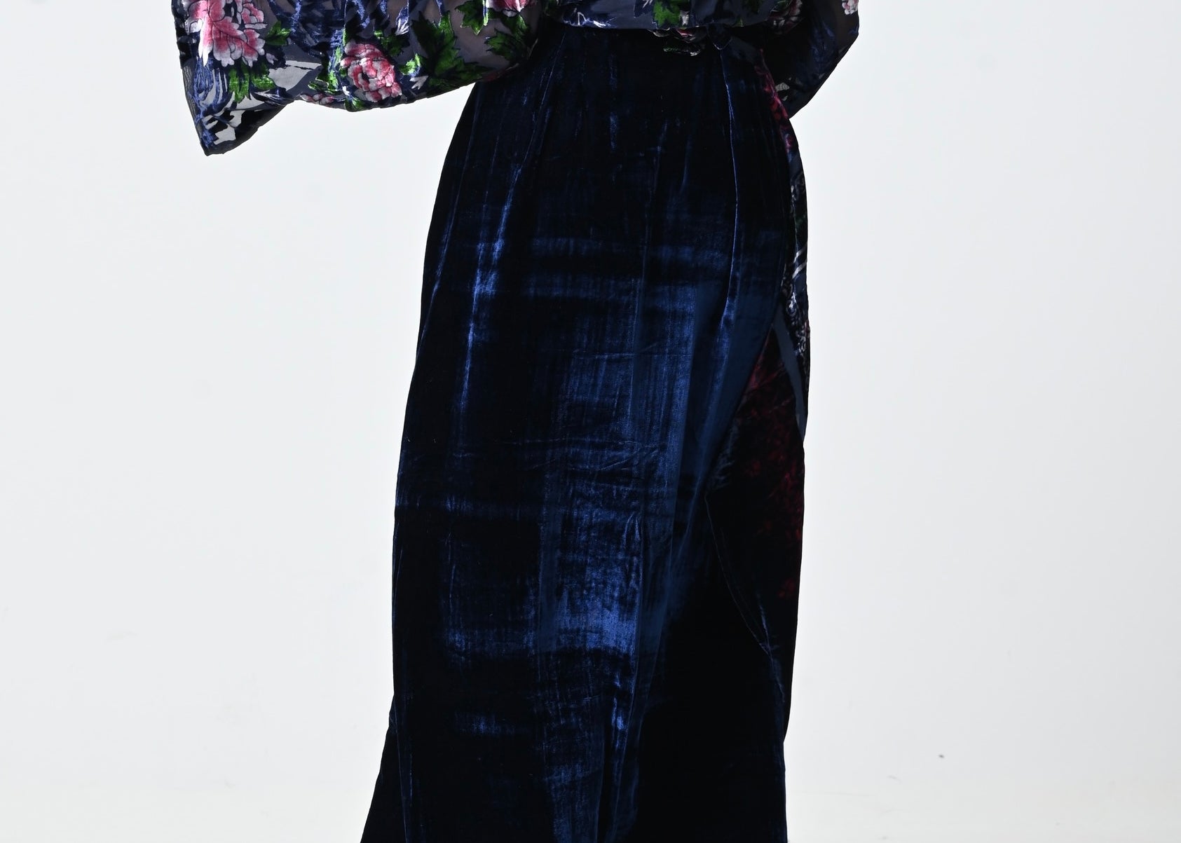 Blue Velvet Wrap Skirt Set