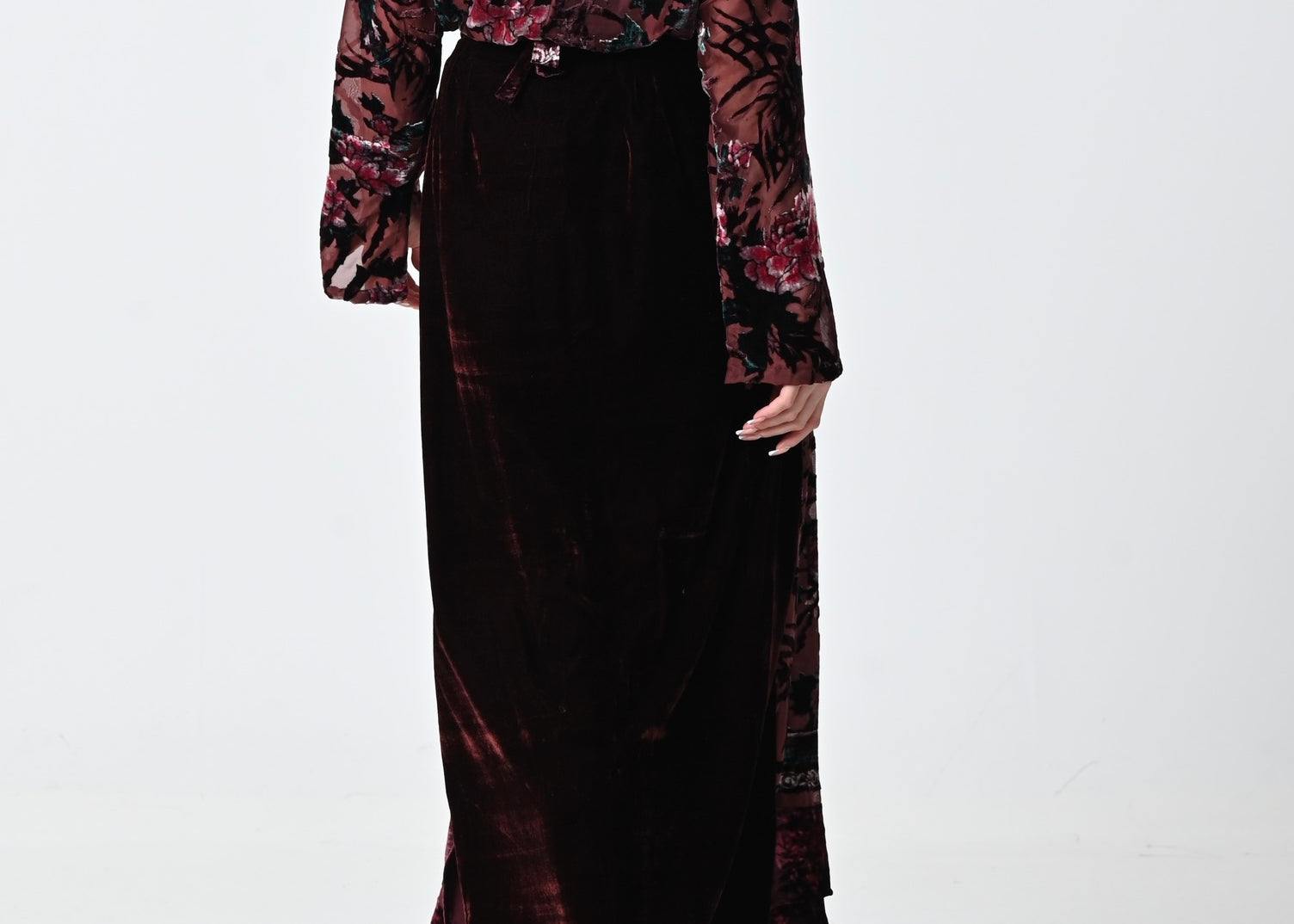 - تنوره: شيفون و مخمل حرير لف مناسبه إلى قياس 16 إنجليزي.