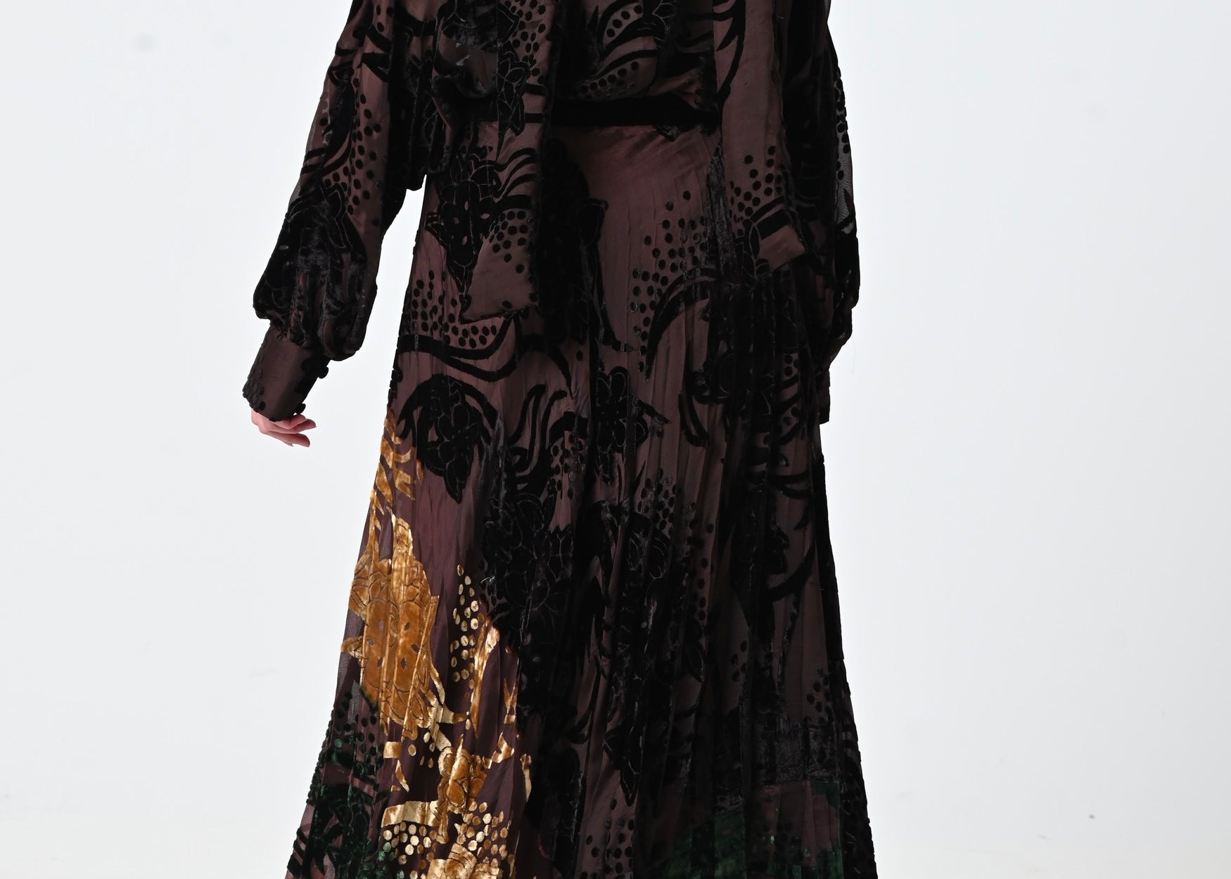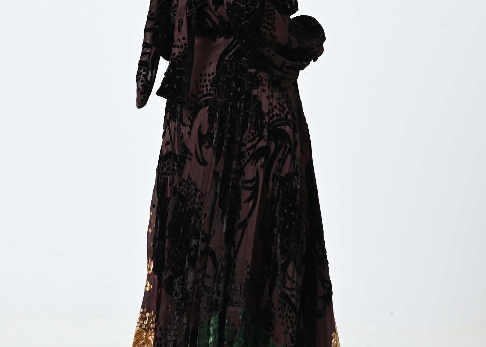 Brown Velvet Chiffon Skirt Set
