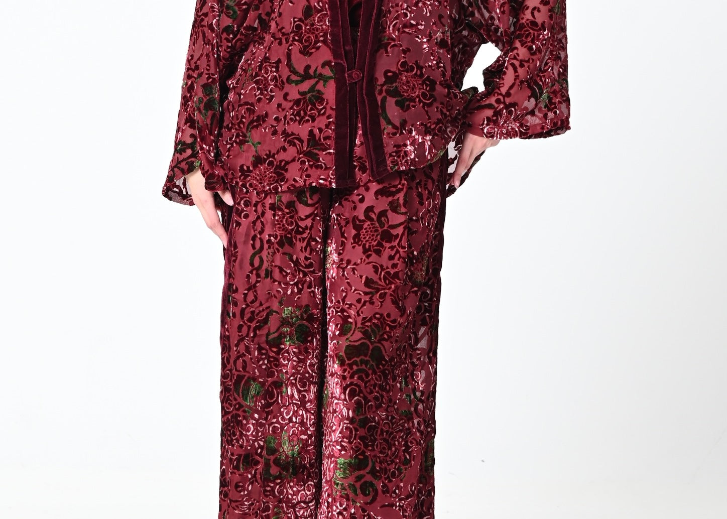 Chiffon Velvet Jacket Set