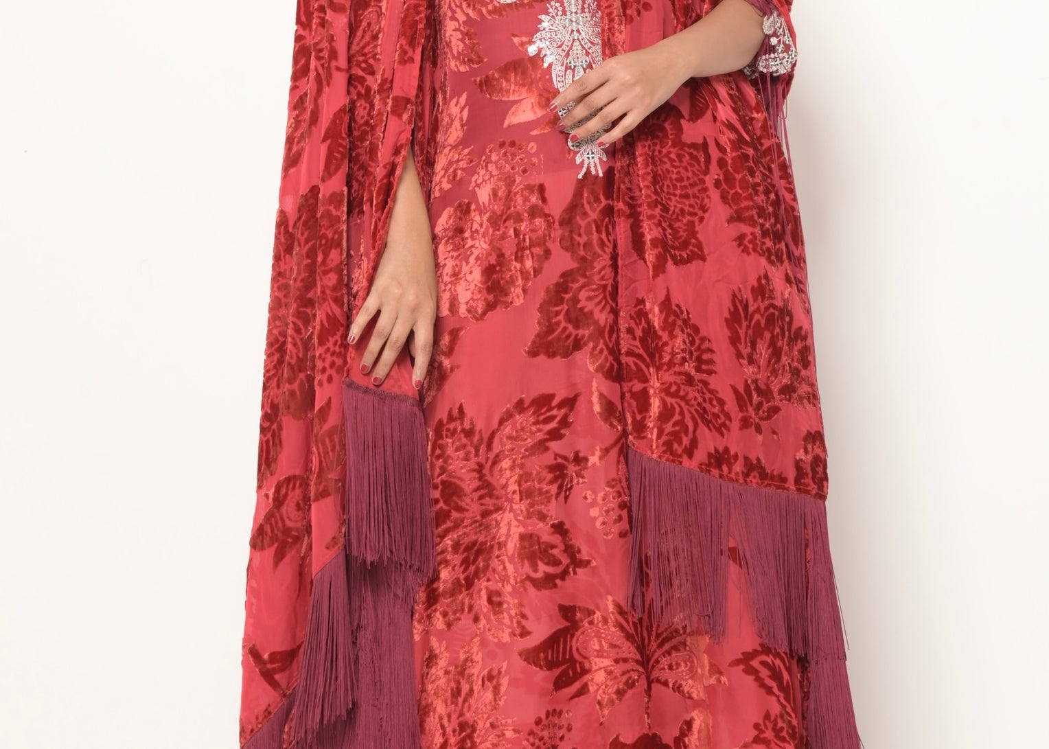 - شلاح مزين بالترتر بالصدر واطراف الاكمام ، القماش كريب شيفون مع نقشة المخمل .
