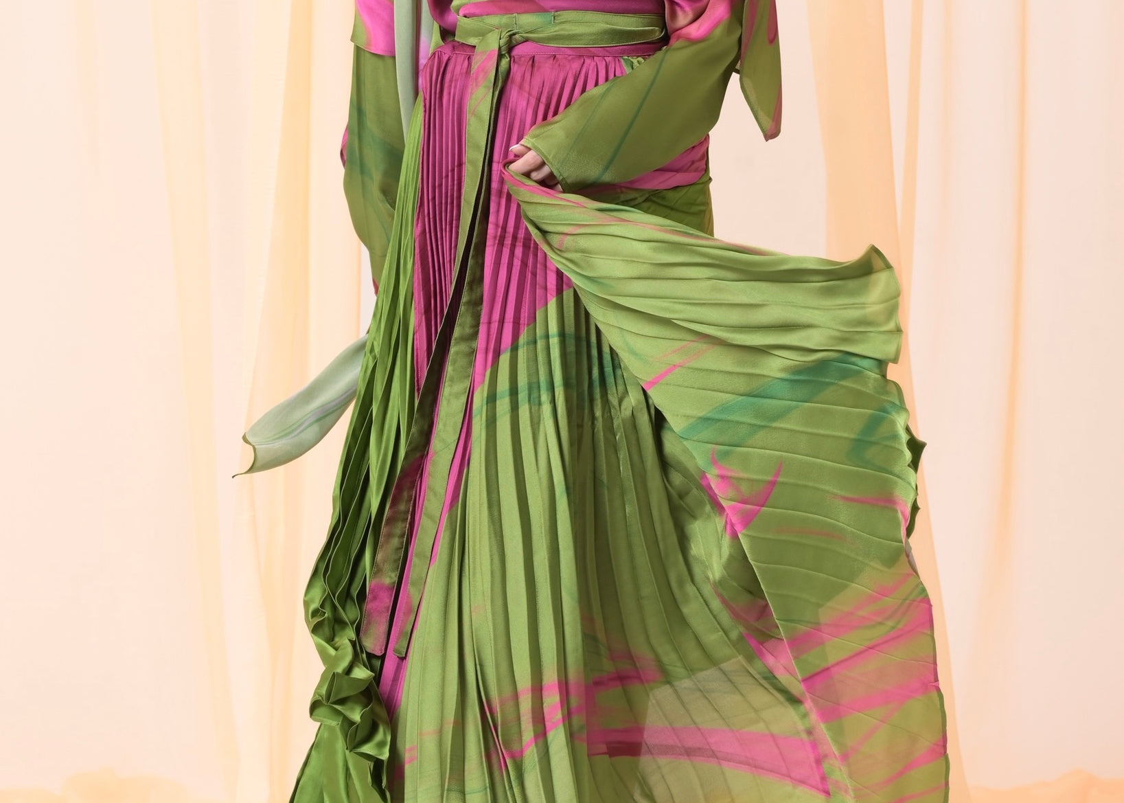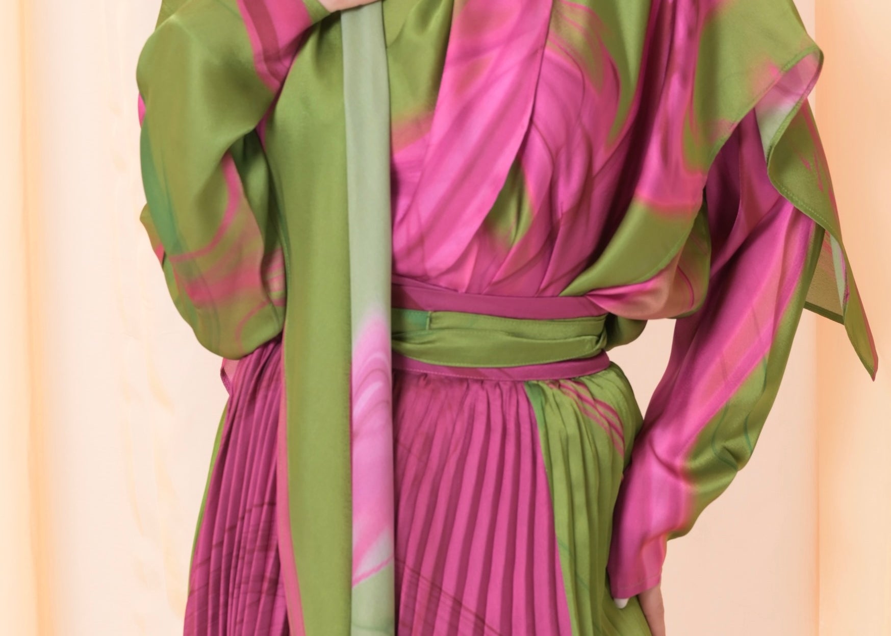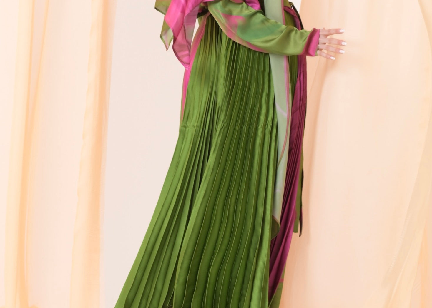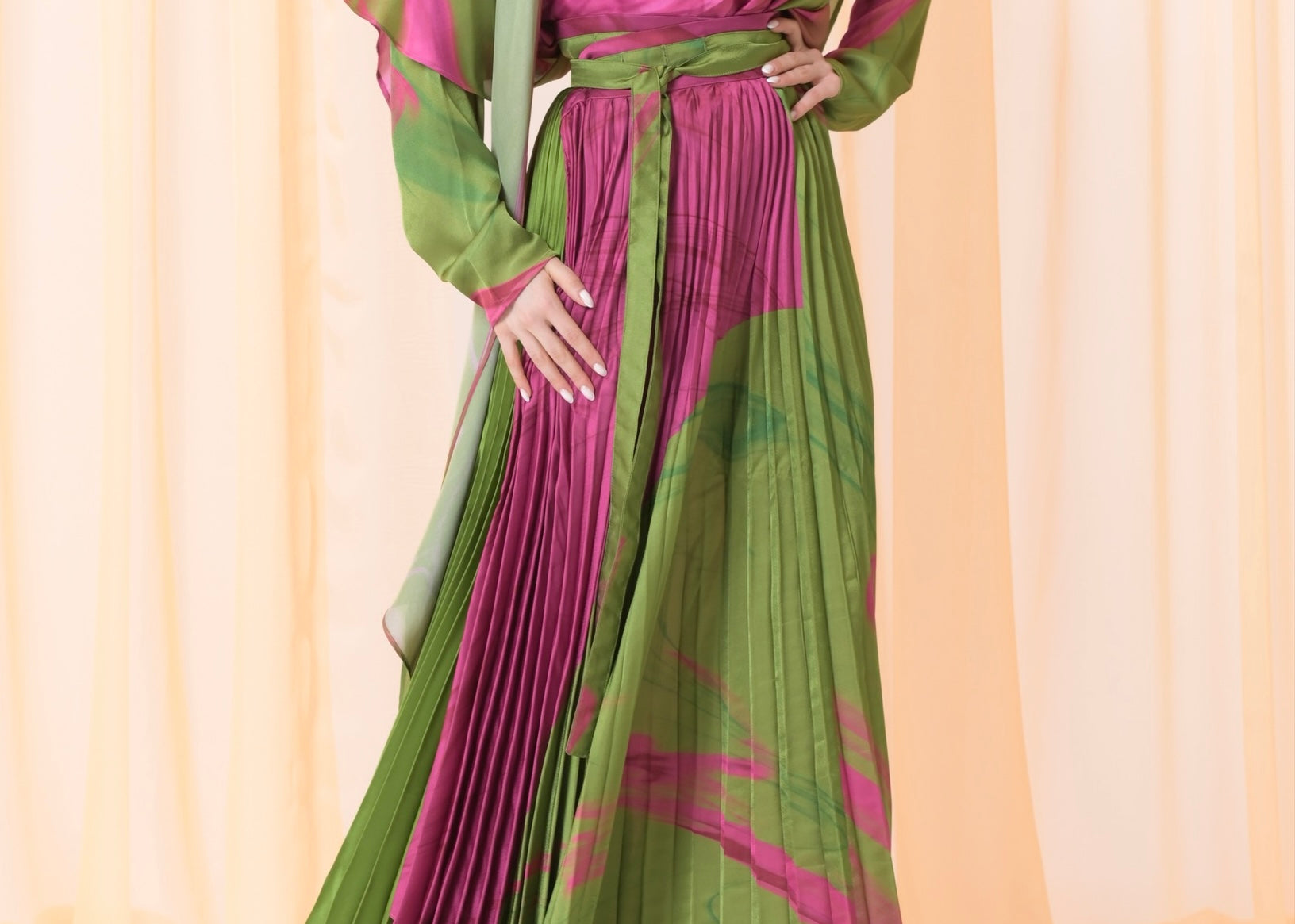 - من قماش الحرير قميص بقصات مختلفه و تنوره بليسيه لف .
