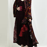 - كيمونو من قماش الشيفون والمخمل الحرير بنقشه مميزه ، وفستان بقصه واسعه من قماش المخمل.