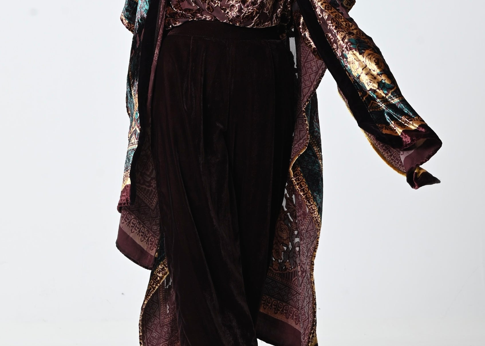 - نوع القطعة: قميص من قماش الشيفون و المخمل بنقشه مميزه