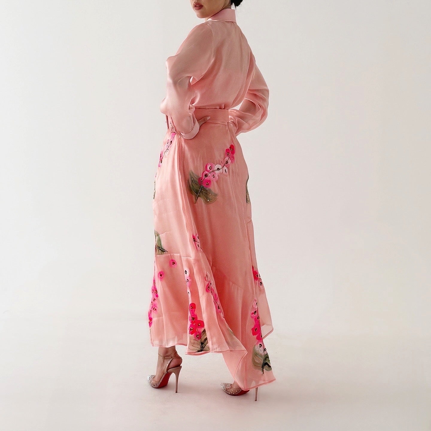 - بدله من قميص بقماش الاورجنزا الحرير ، و تنوره مرسومه يدوياً برسم وشغل يد مميز وحزام .