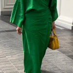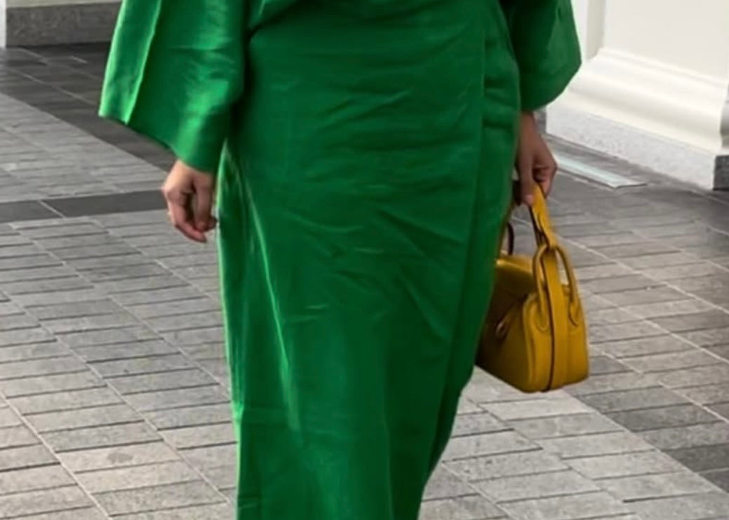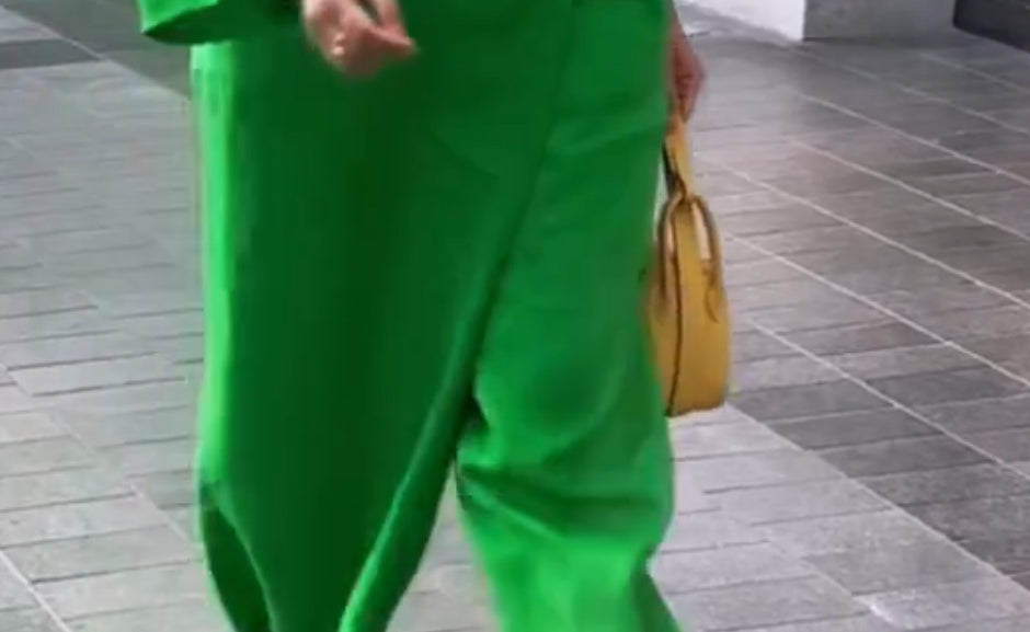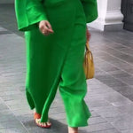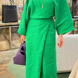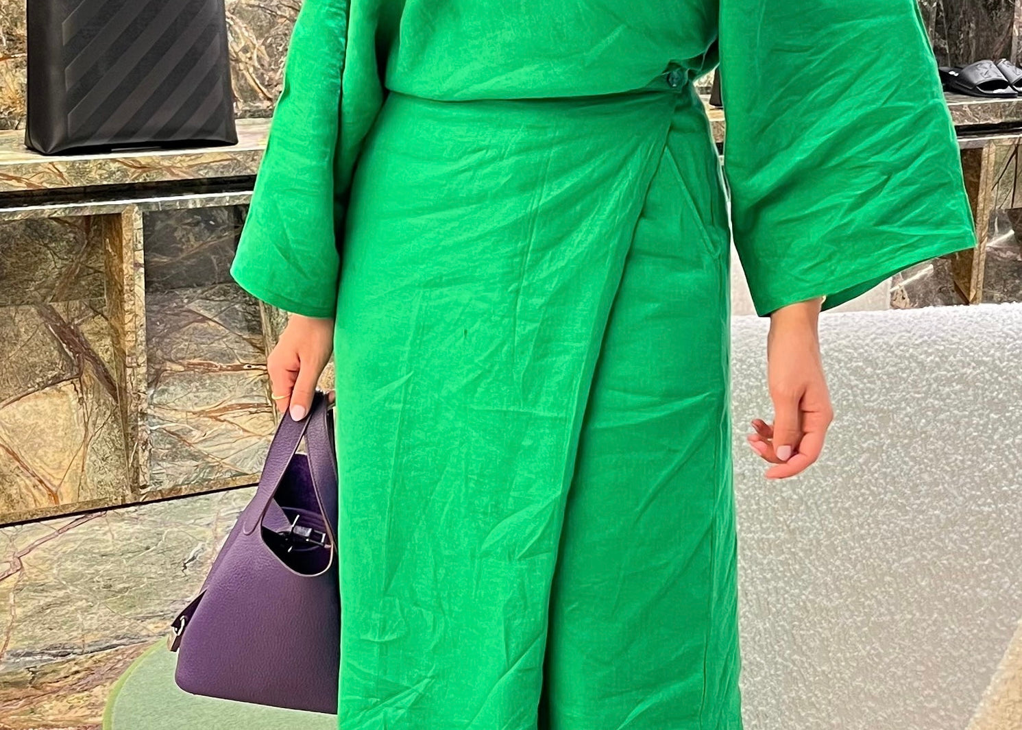 - جاكيت لف وبنطلون بقصة تنوره من قماش اللنن .
