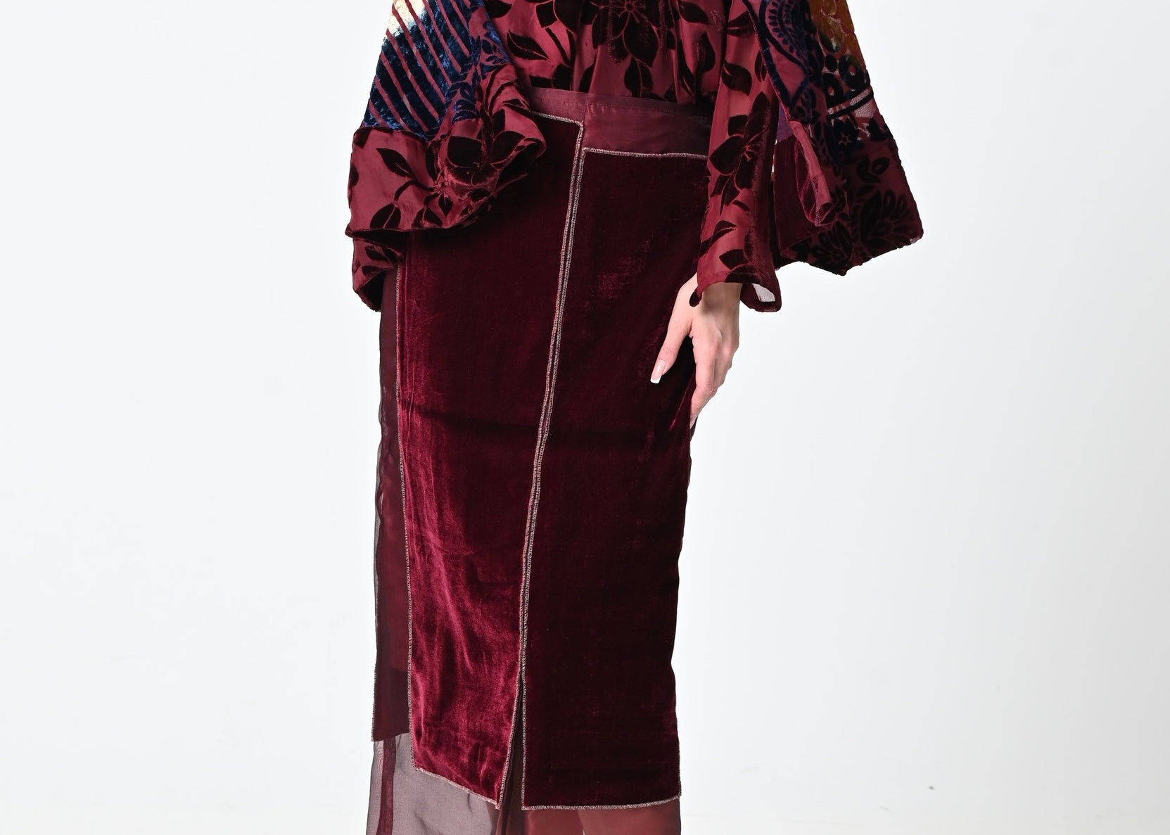 Maroon Organza Skirt Set