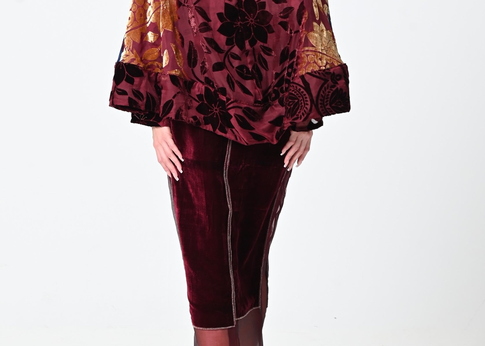 - قميص تنوره وشال من المخمل.