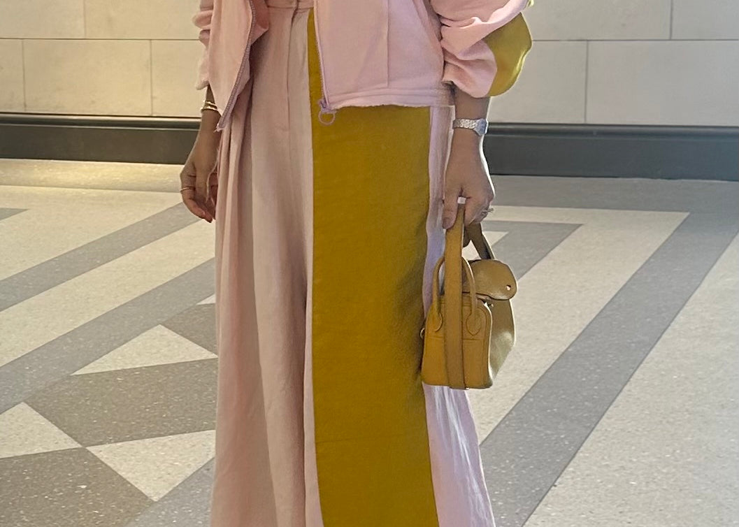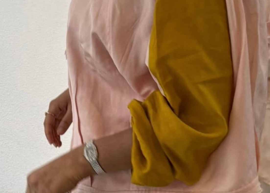 - جاكيت وشروال بقصه واسعه من قماش اللنن الحرير .