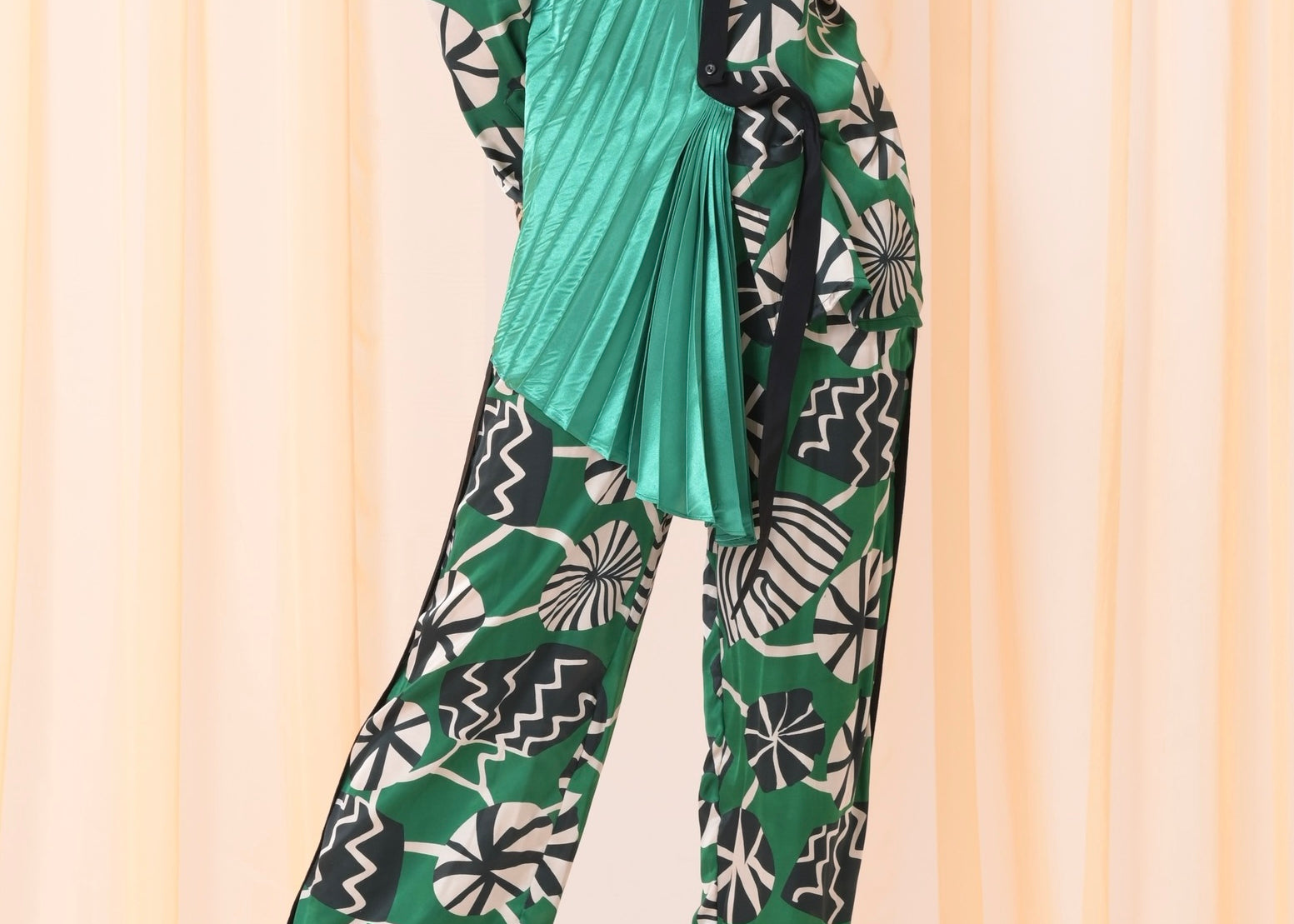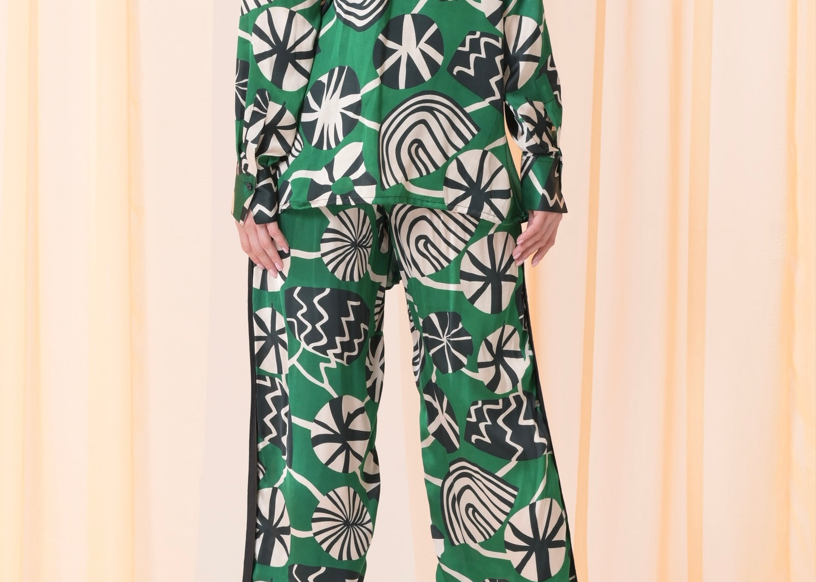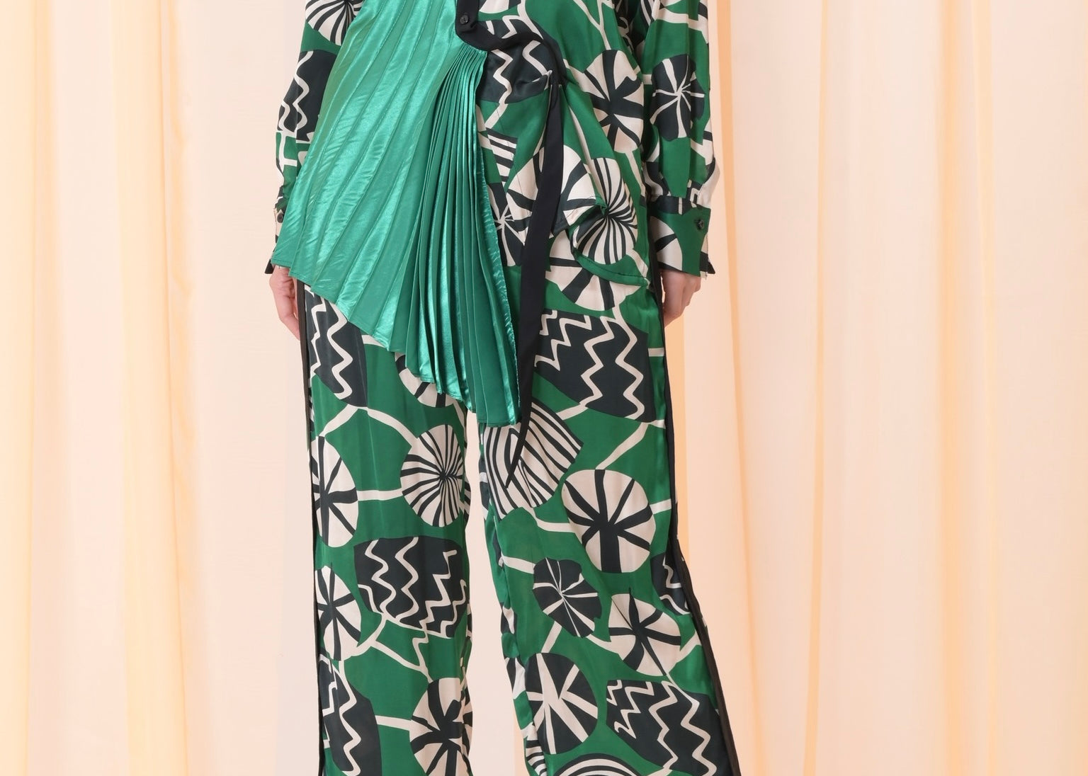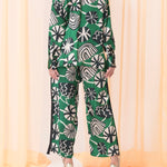 Green silk pants set