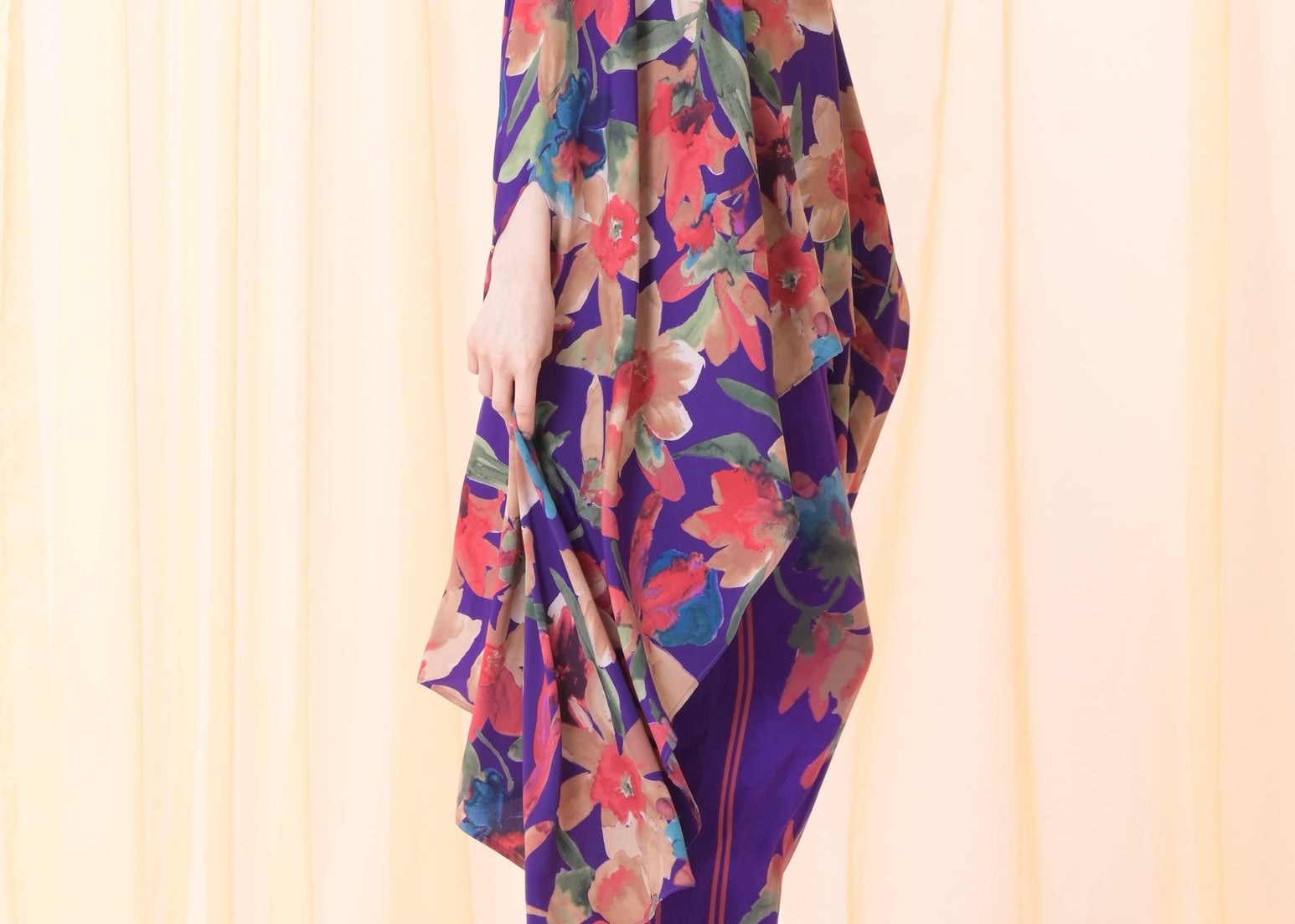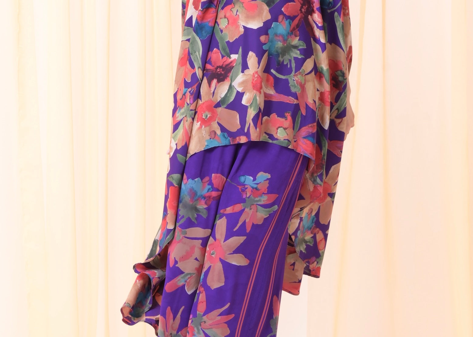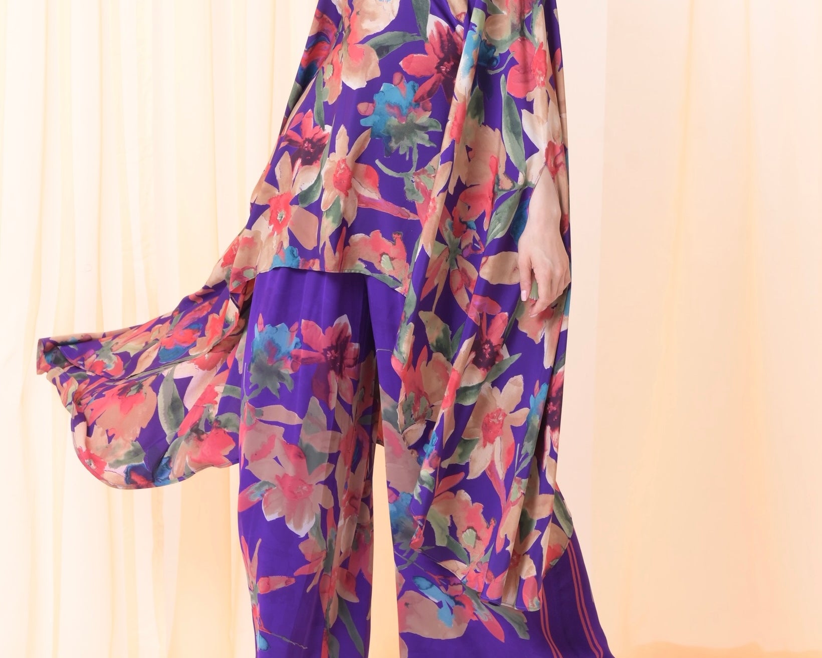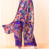 Silk floral purple pants set
